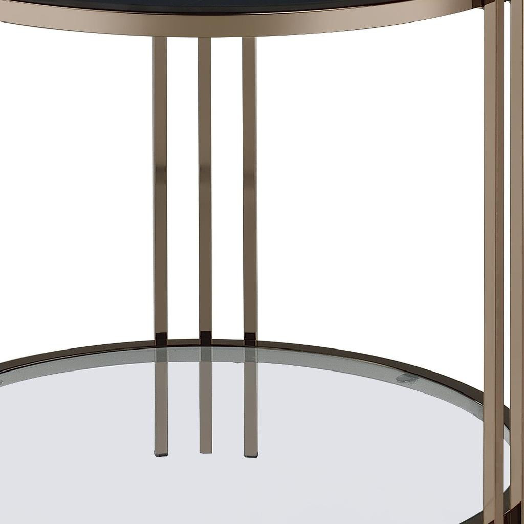stone metal round end table, metal round end table shelf, 24" black champagne stone, champagne stone metal round end, end table shelf |