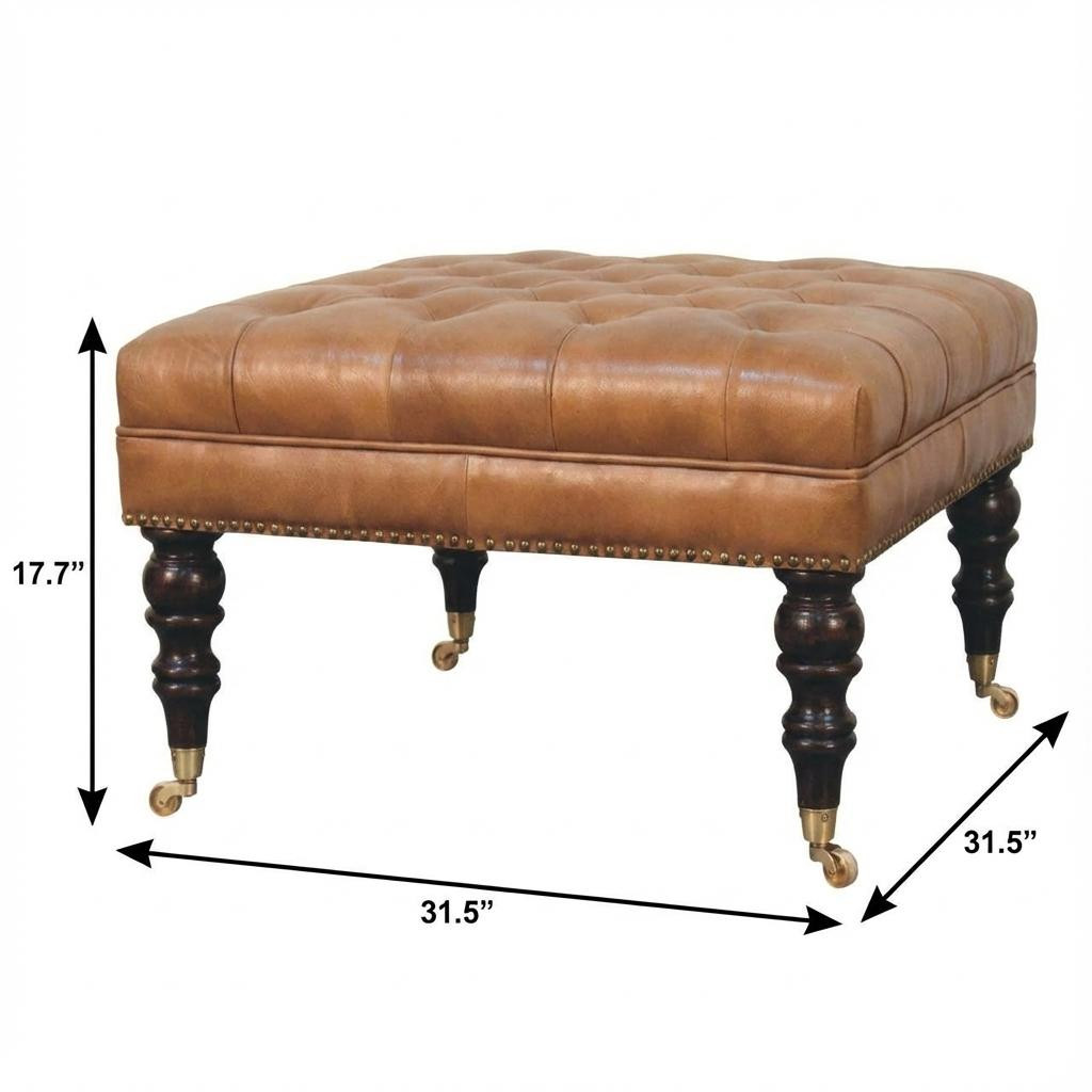 Optimize your space and add some charm to your room with the 32-inch brown leather footstool. This footstool is a treasure at the end of the day as an ideal place to rest your feet and legs and can also be used for extra seating when needed in a pinch. A brown monotone coloration gives this solid wood and upholstery ottoman a fresh and updated look. Expertly upholstered with padding in a soft solid color leather, this ottoman is as comfortable as it is good looking. Easy to blend into most any room, a ottoman is a way to add a good looking accent to your space that can also be practical and useful. 17.70-inch h x 31.50-inch w x 31.50-inch d.