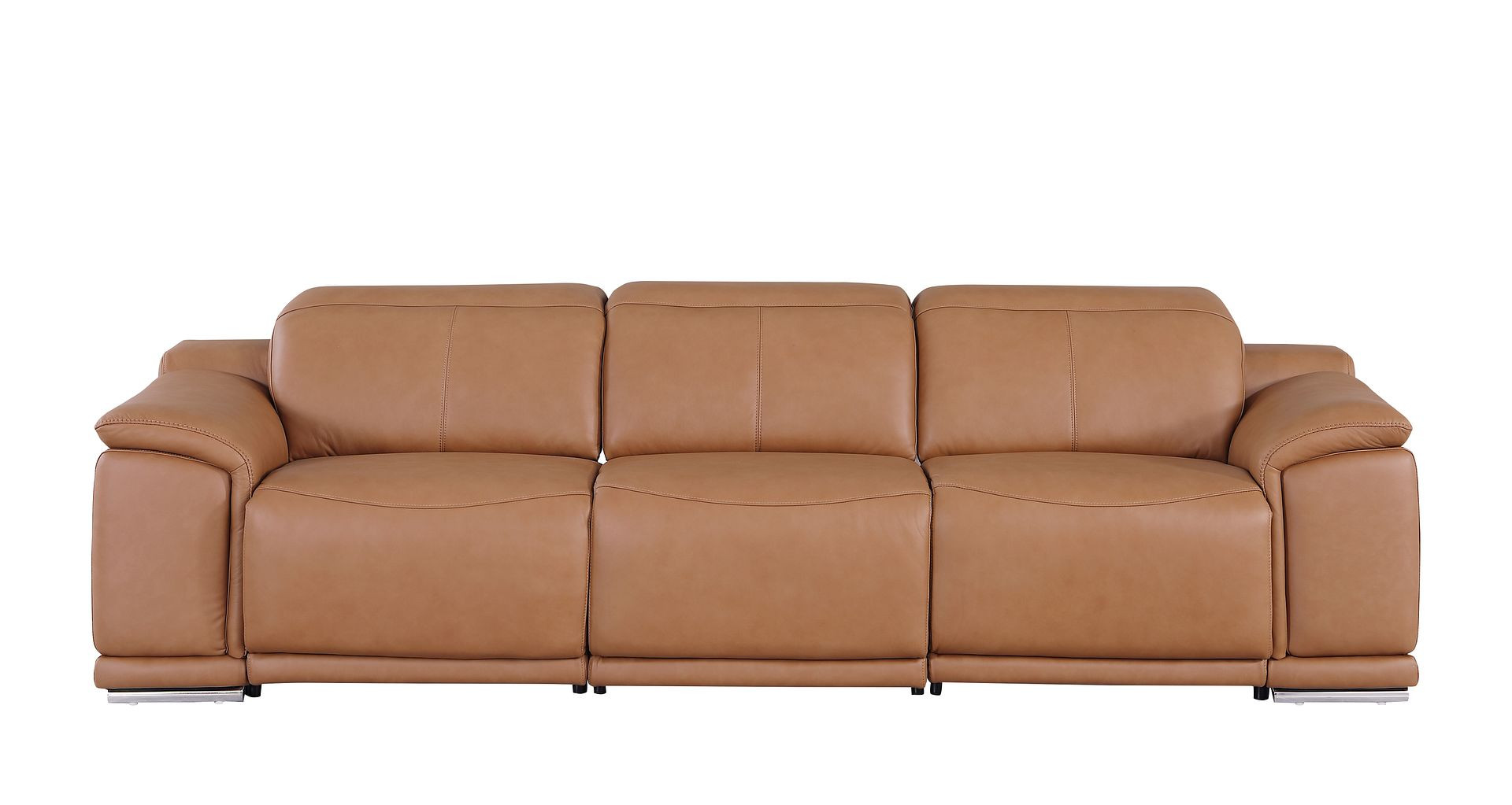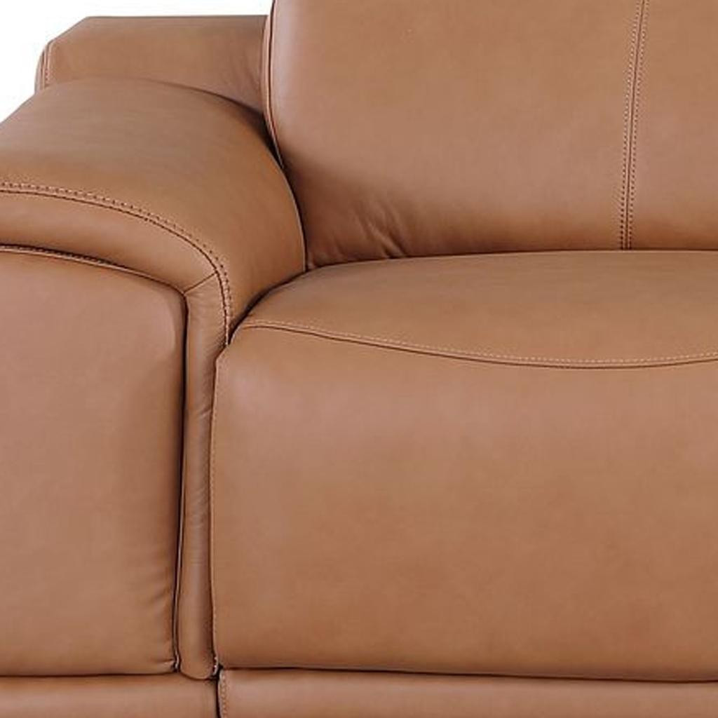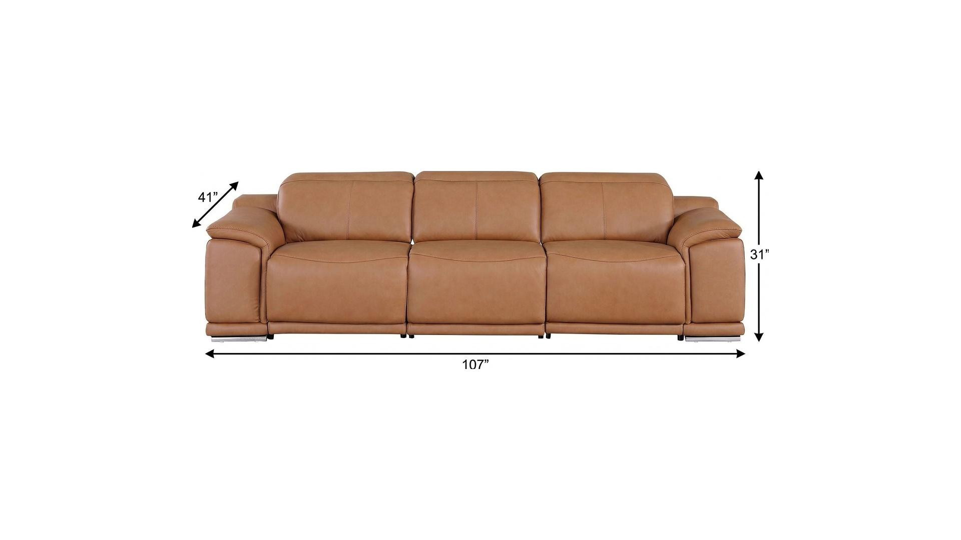 An interior designer's dream, this buttery soft high grade leather 107-inch chestnut italian leather reclining metal usb sofa will bring just the right touch to your space. The premium leather used makes your lounging luxuriously comfortable and adds an elegant appeal to your space. Solid colors give you lots of decorative options and are easy to work into your decor scheme. Pocket spring construction gives this piece strong support and makes it comfortable to sit even for long periods of time. Rolled arms offer a comfy place to rest. Silver stainless steel legs effortlessly elevate the room and add a touch of contemporary design. A great showpiece for your room, this sofa is a must have. 31.00-inch h x 107.00-inch w x 41.00-inch d.