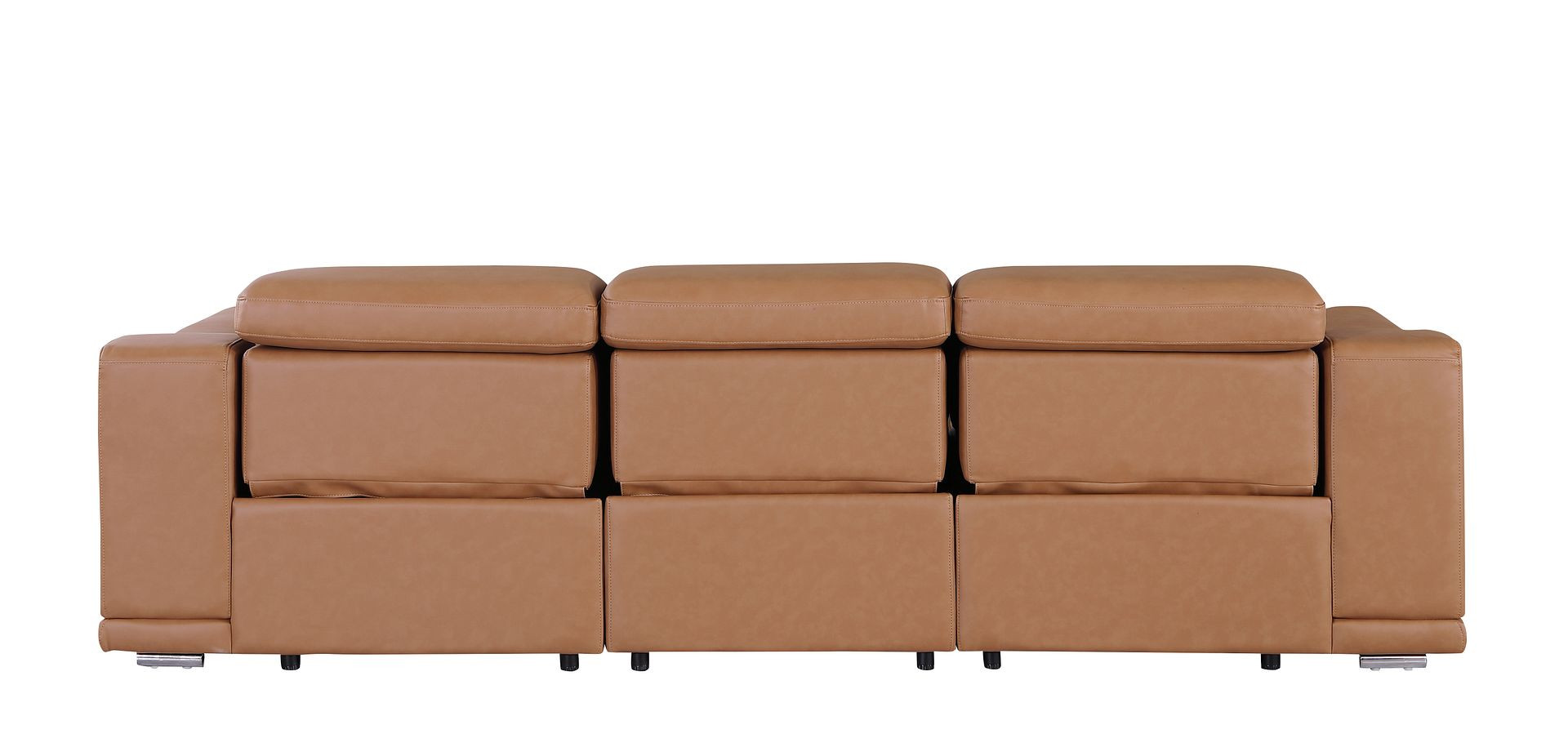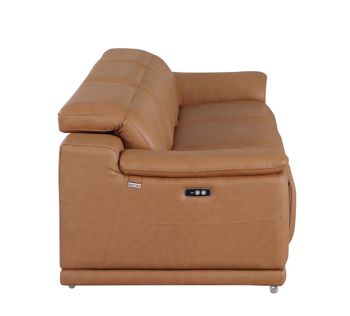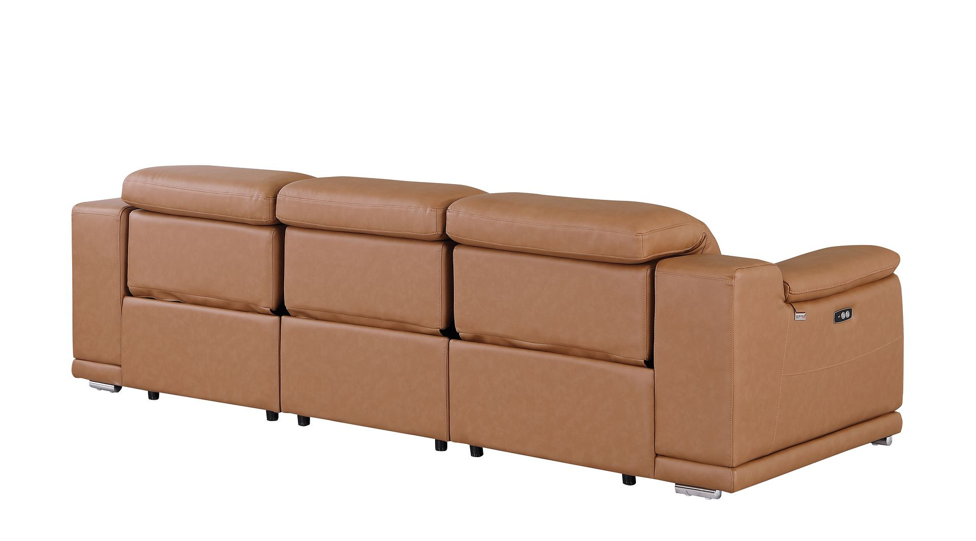 An interior designer's dream, this buttery soft high grade leather 107-inch chestnut italian leather reclining metal usb sofa will bring just the right touch to your space. The premium leather used makes your lounging luxuriously comfortable and adds an elegant appeal to your space. Solid colors give you lots of decorative options and are easy to work into your decor scheme. Pocket spring construction gives this piece strong support and makes it comfortable to sit even for long periods of time. Rolled arms offer a comfy place to rest. Silver stainless steel legs effortlessly elevate the room and add a touch of contemporary design. A great showpiece for your room, this sofa is a must have. 31.00-inch h x 107.00-inch w x 41.00-inch d.