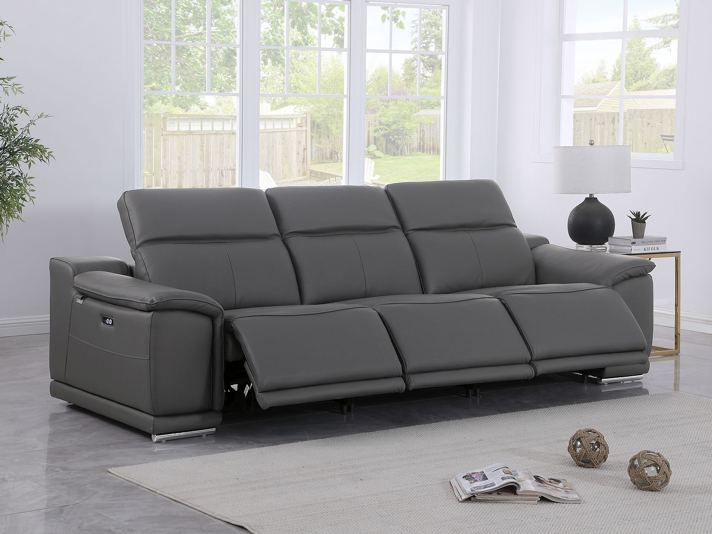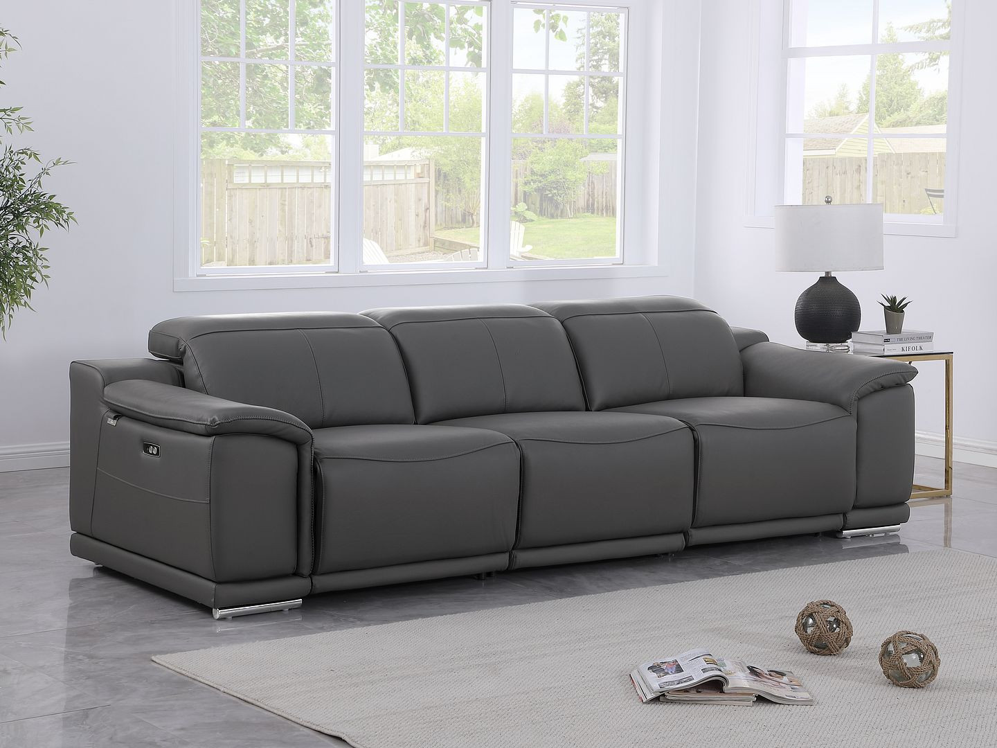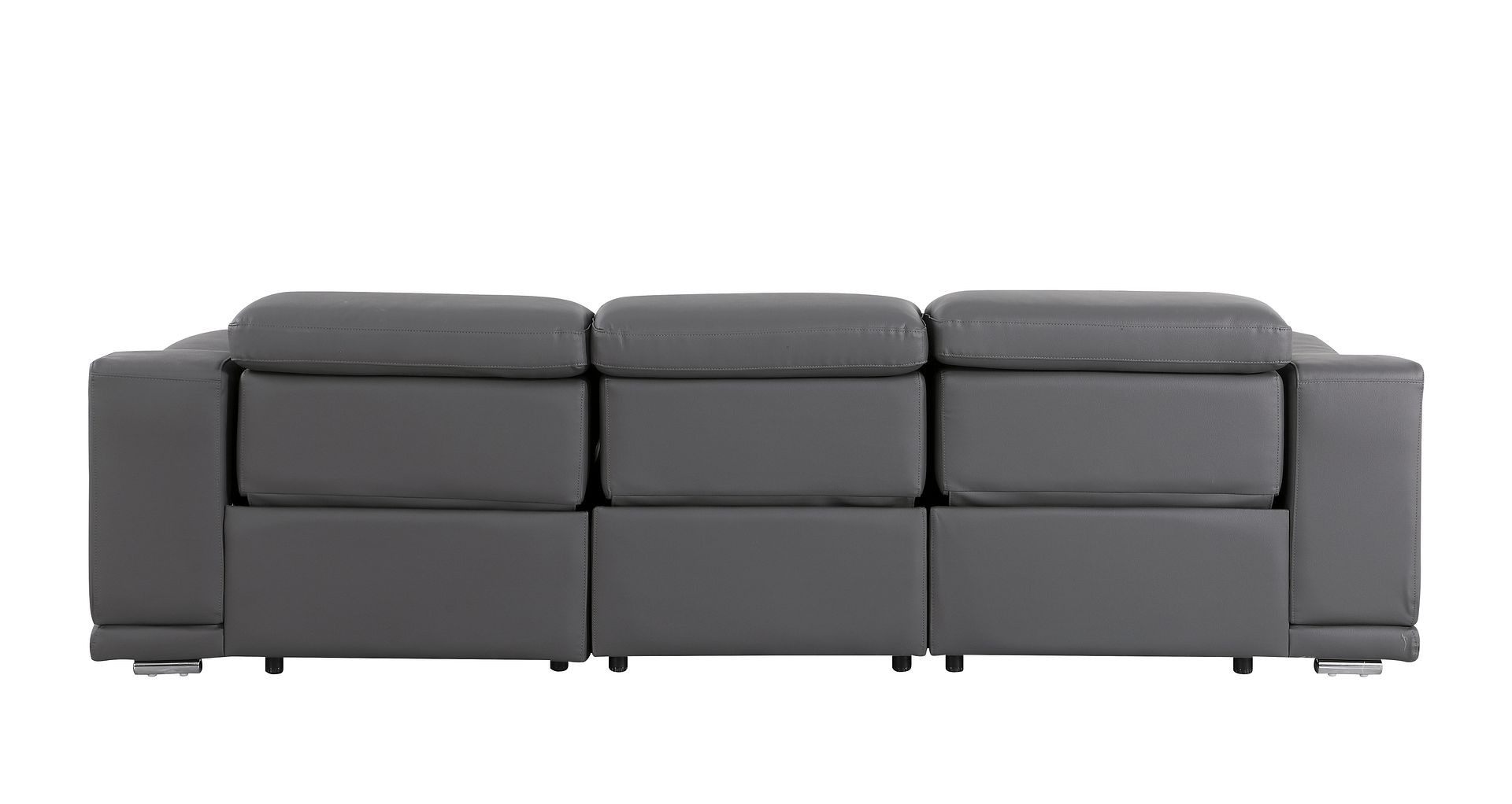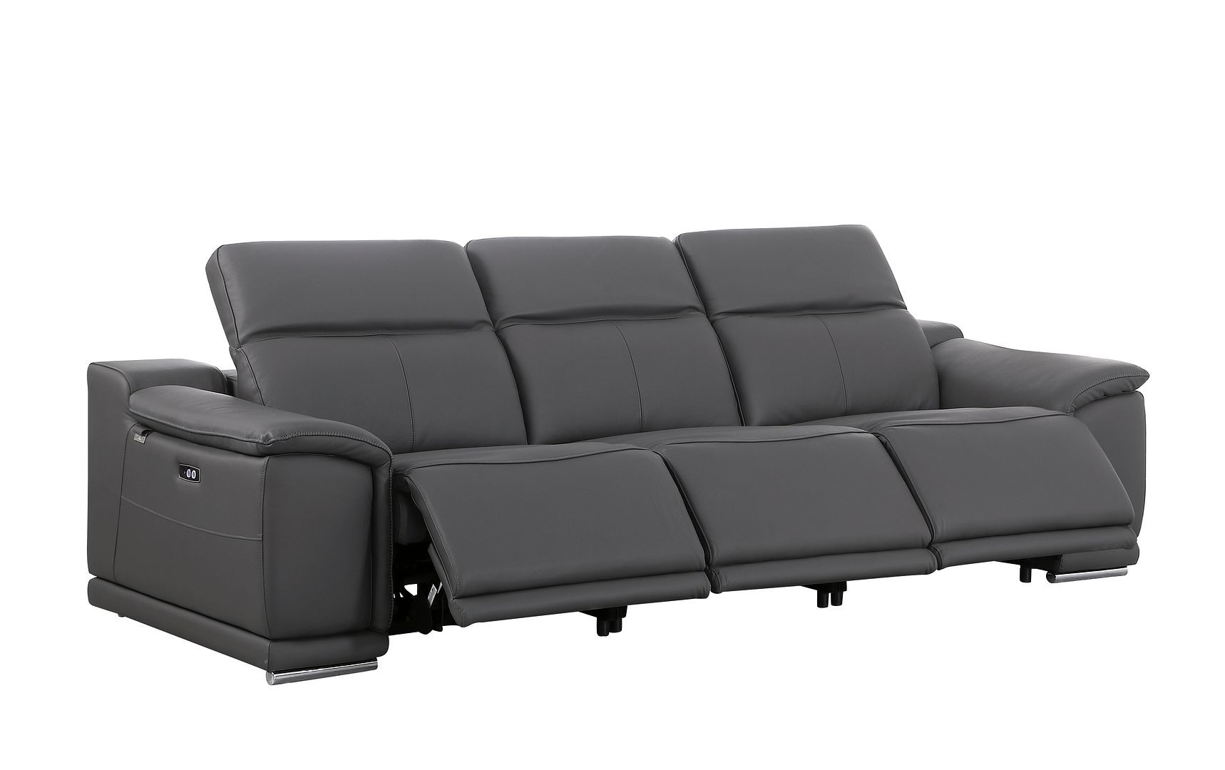 Made of the highest quality, supple leather, this 107-inch dark gray italian leather reclining metal usb sofa will be the star of your space. The high grade premium leather used makes your lounging luxuriously comfortable and adds an elegant appeal to your space. Solid colors give you lots of decorative options and are easy to work into your decor scheme. Pocket spring construction gives this piece strong support and makes it comfortable to sit even for long periods of time. Rolled arms offer a comfy place to rest. Silver stainless steel legs effortlessly elevate the room and add a touch of contemporary design. A great showpiece for your room, this sofa is a must have. 31.00-inch h x 107.00-inch w x 41.00-inch d.