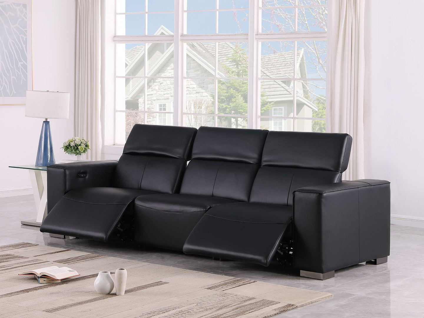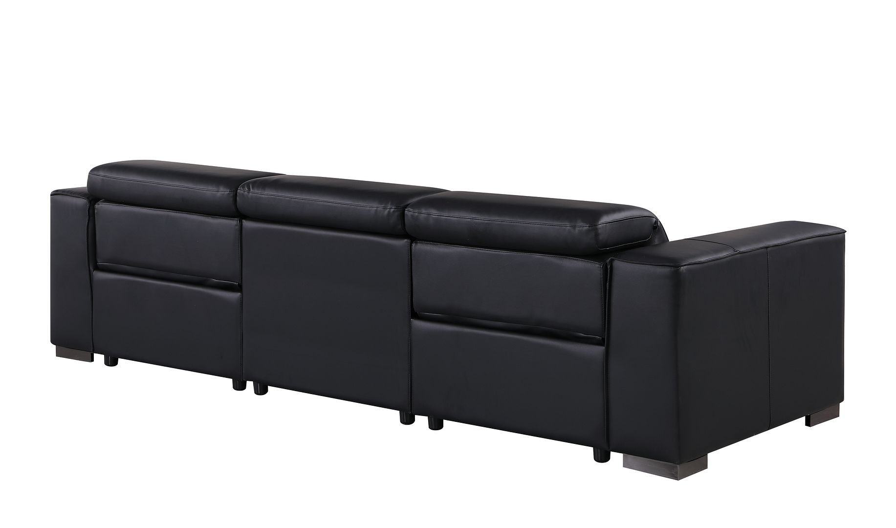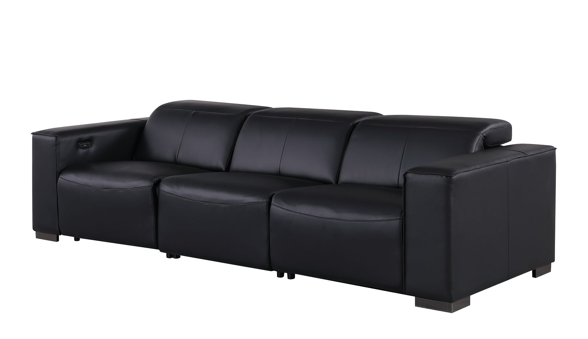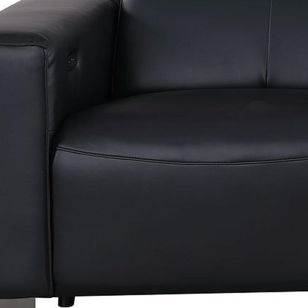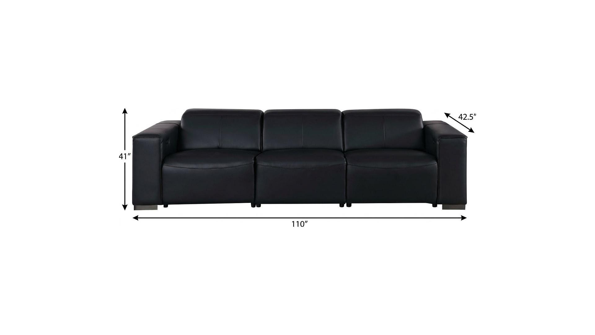 An interior designer's dream, this buttery soft high grade leather 110-inch black top grain leather reclining metal usb sofa will bring just the right touch to your space. The premium leather used makes your lounging luxuriously comfortable and adds an elegant appeal to your space. Solid colors give you lots of decorative options and are easy to work into your decor scheme. Pocket spring construction gives this piece strong support and makes it comfortable to sit even for long periods of time. Square arms offer a comfy place to rest. Brown stainless steel legs effortlessly elevate the room and add a touch of contemporary design. Built to last, this sofa will be a great centerpiece for your room. 41.00-inch h x 110.00-inch w x 42.50-inch d.