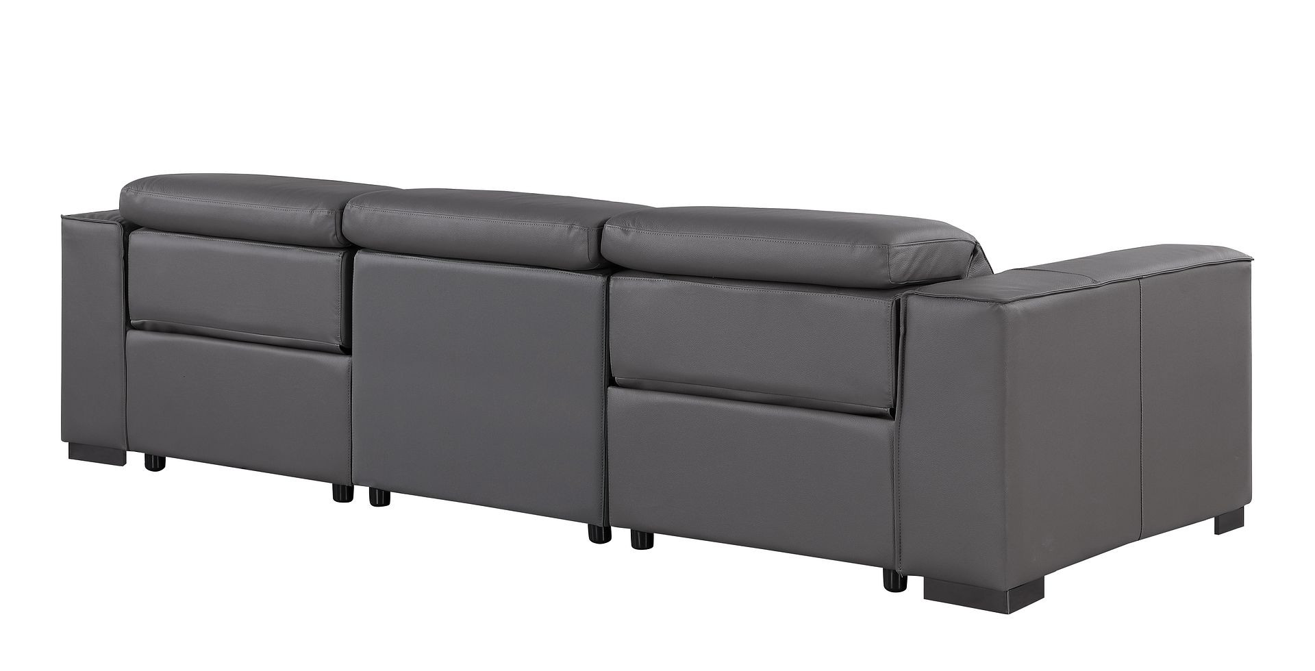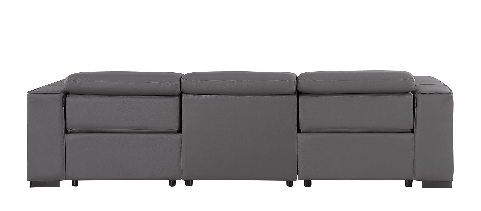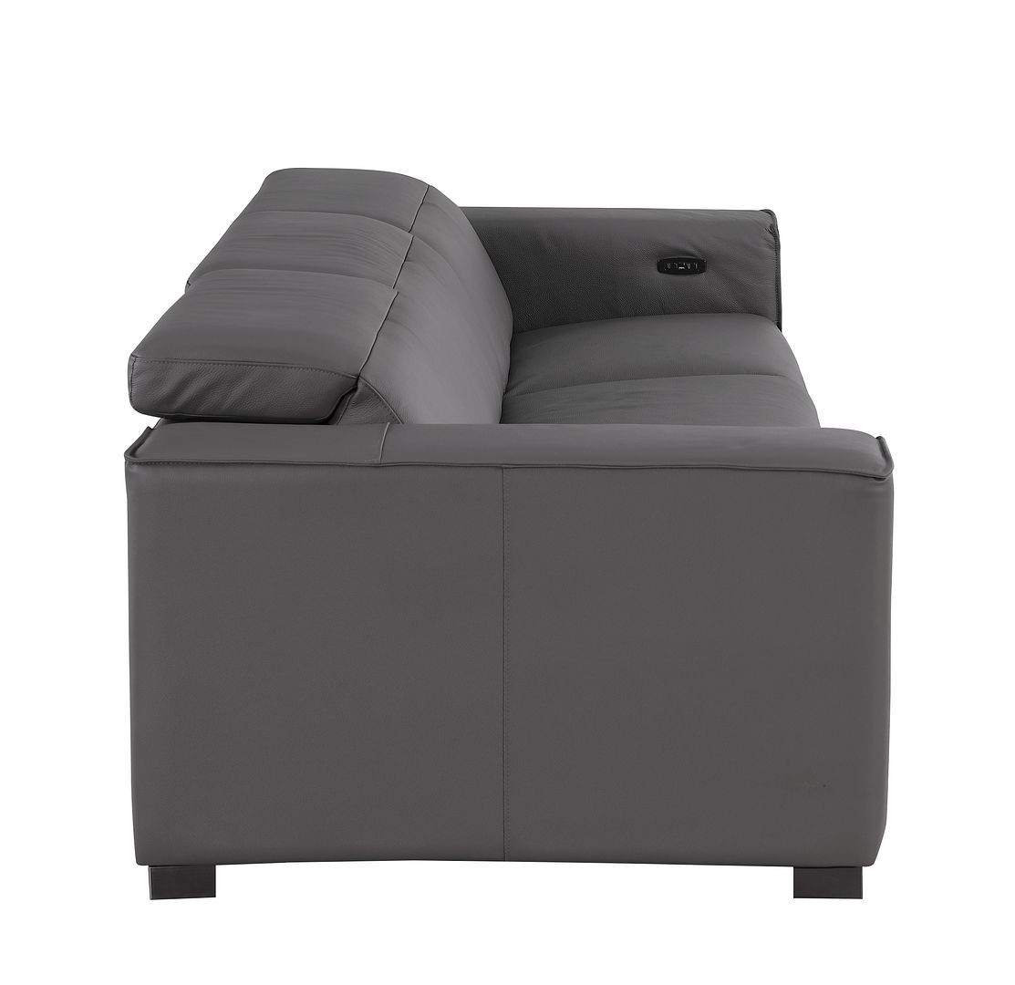 Made of the highest quality, supple leather, this 110-inch dark gray top grain leather reclining metal usb sofa will be the star of your space. The high grade premium leather used makes your lounging luxuriously comfortable and adds an elegant appeal to your space. Solid colors give you lots of decorative options and are easy to work into your decor scheme. Pocket spring construction gives this piece strong support and makes it comfortable to sit even for long periods of time. Square arms offer a comfy place to rest. Brown stainless steel legs effortlessly elevate the room and add a touch of contemporary design. A great showpiece for your room, this sofa is a must have. 41.00-inch h x 110.00-inch w x 42.50-inch d.