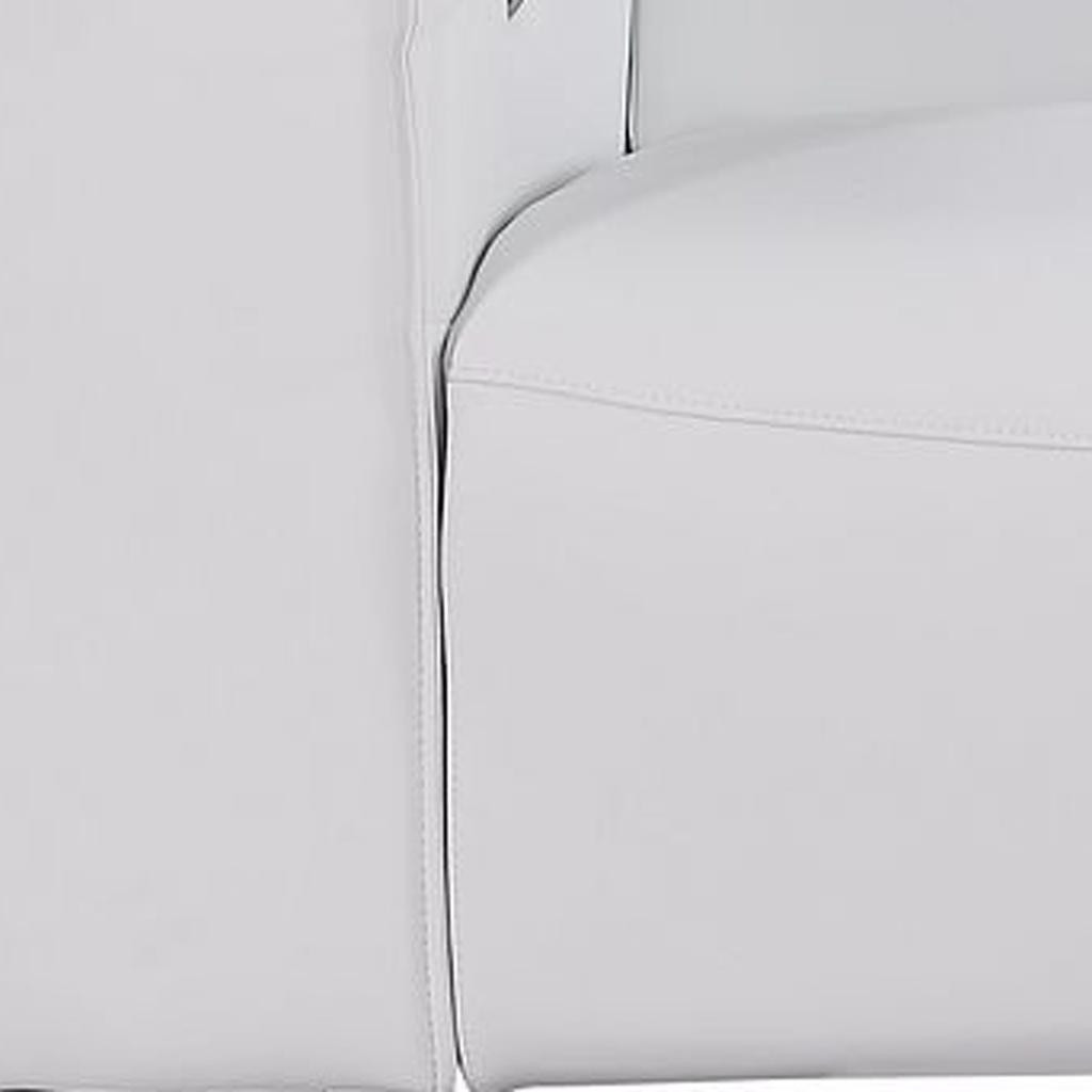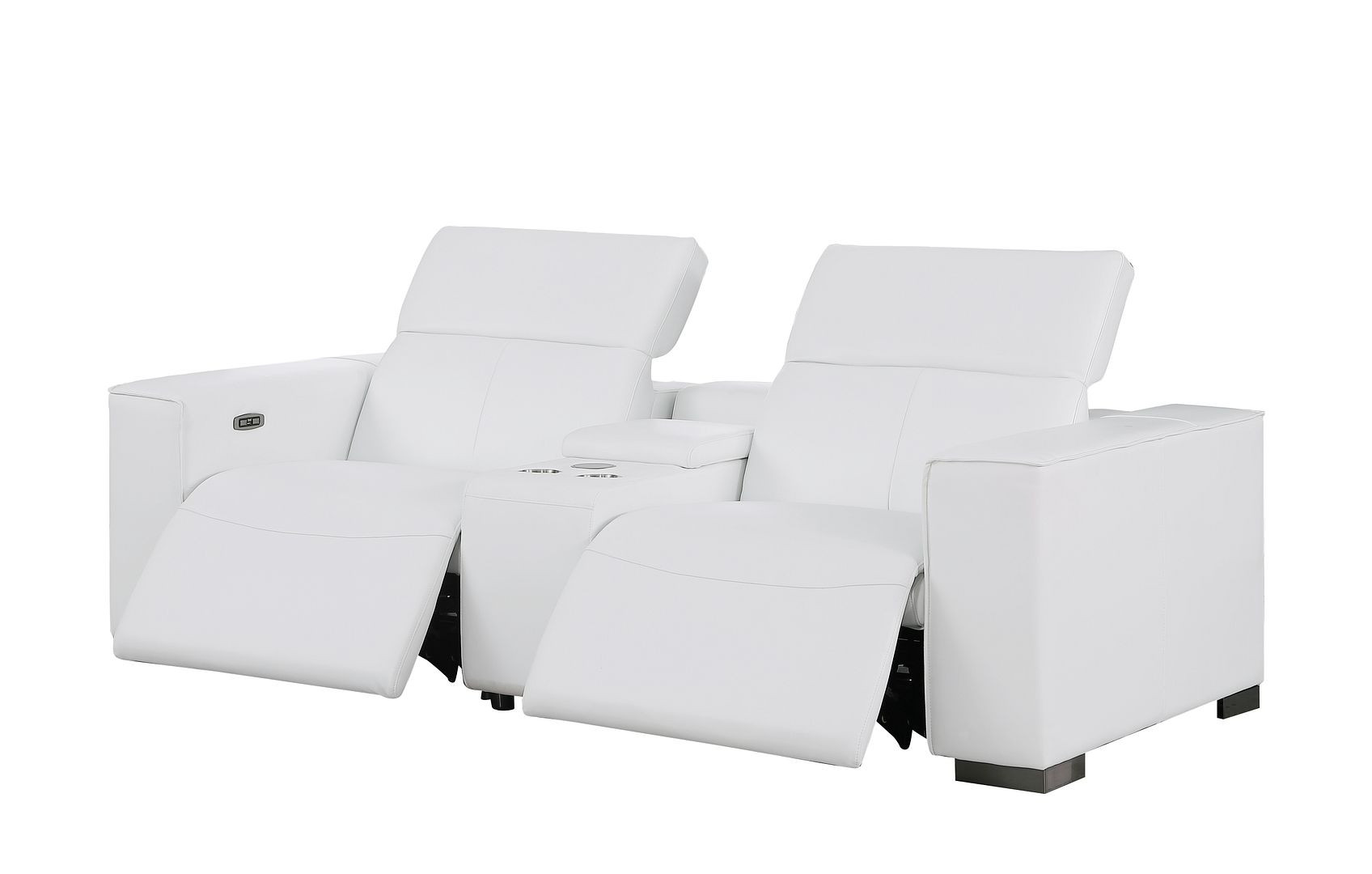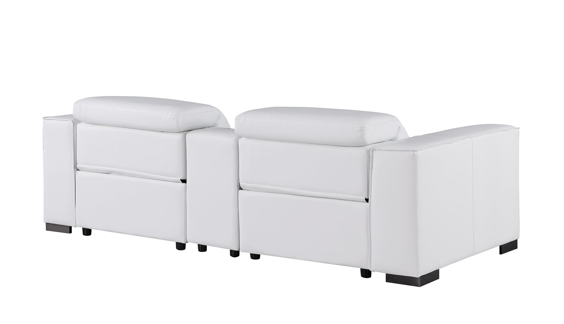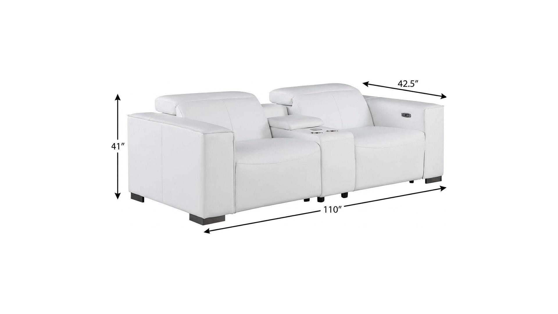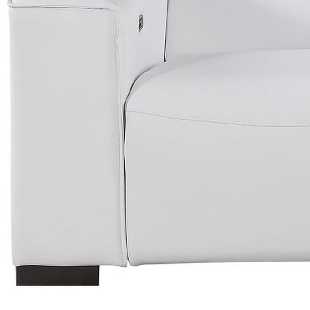 Superior construction from fabulously soft and high grade leather gives this 110-inch white top grain leather reclining metal usb sofa a leg up on the competition. The premium leather used makes your lounging luxuriously comfortable and adds an elegant appeal to your space. Solid colors give you lots of decorative options and are easy to work into your decor scheme. Pocket spring construction gives this piece strong support and makes it comfortable to sit even for long periods of time. Square arms offer a comfy place to rest. Brown stainless steel legs effortlessly elevate the room and add a touch of contemporary design. A great showpiece for your room, this sofa is a must have. 41.00-inch h x 110.00-inch w x 42.50-inch d.