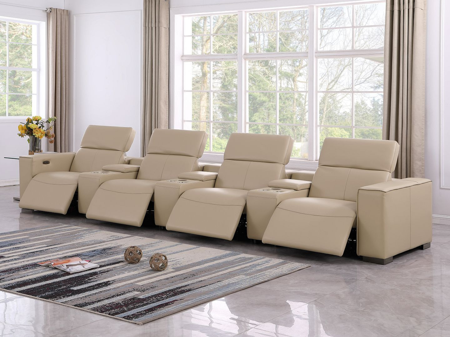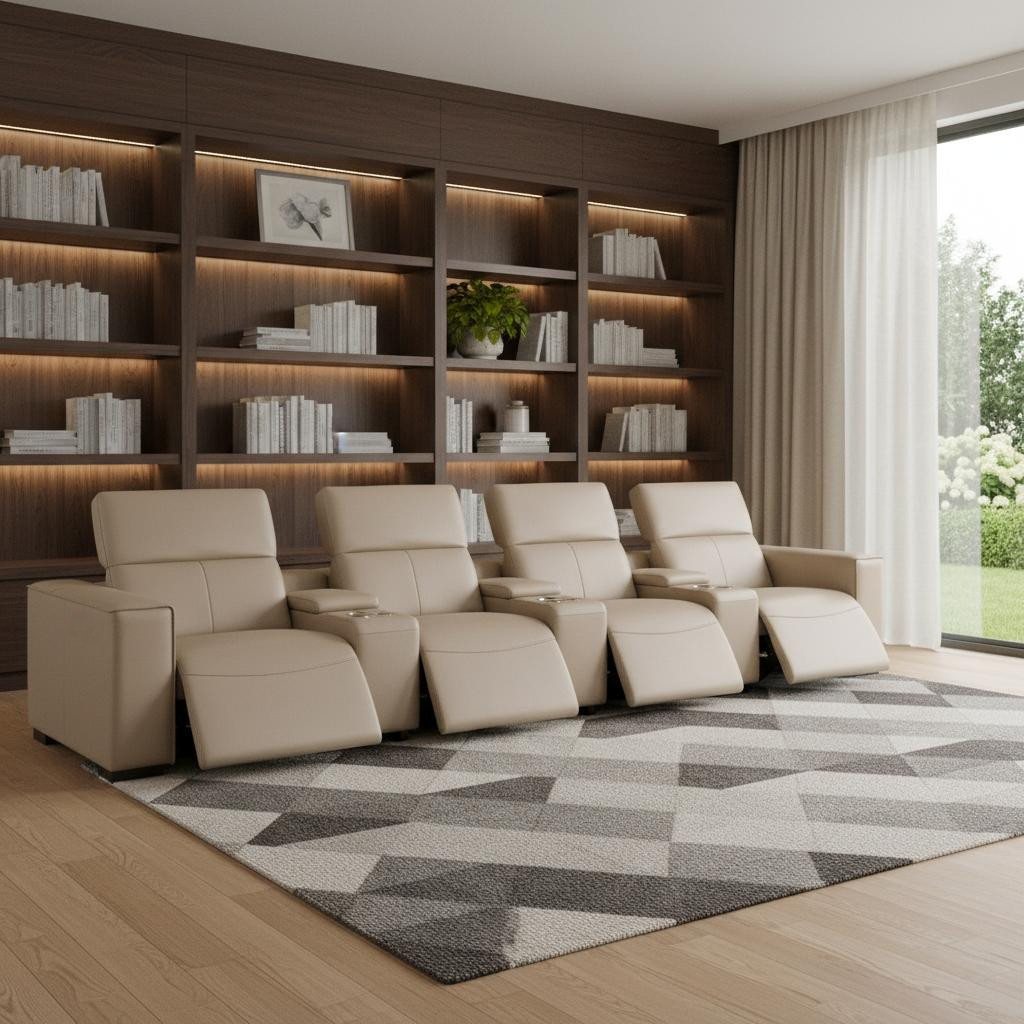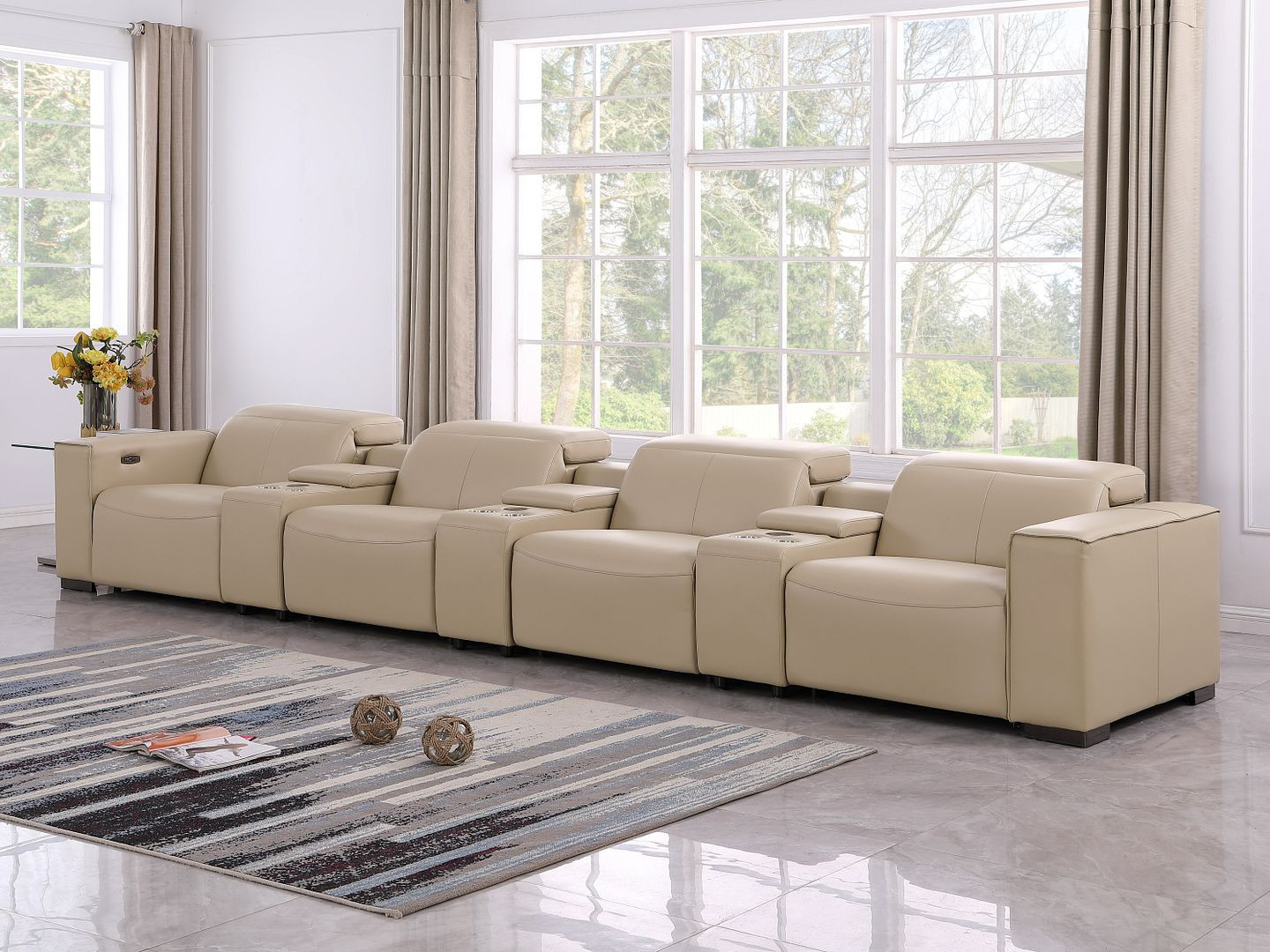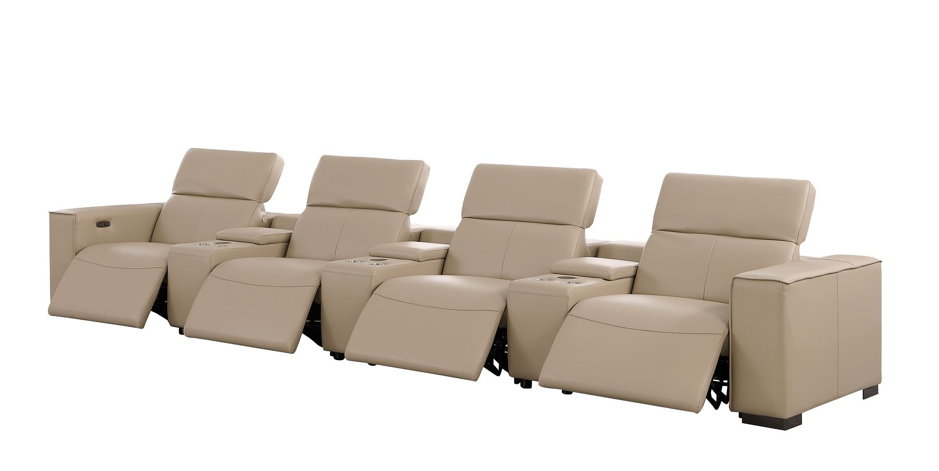 Genuine leather power reclining sofa; Luxury leather sofa with 4 recliners; Power reclining sofa with USB ports; Leather sofa with wireless phone chargers; Reclining sofa with lumbar support; Sofa with power headrests and storage consoles; Modern genuine leather home theater sofa; Brazilian wood frame leather sofa; Durable luxury reclining leather couch; Contemporary genuine leather sofa; Premium leather power recliner sofa; Comfortable leather sofa for living room |