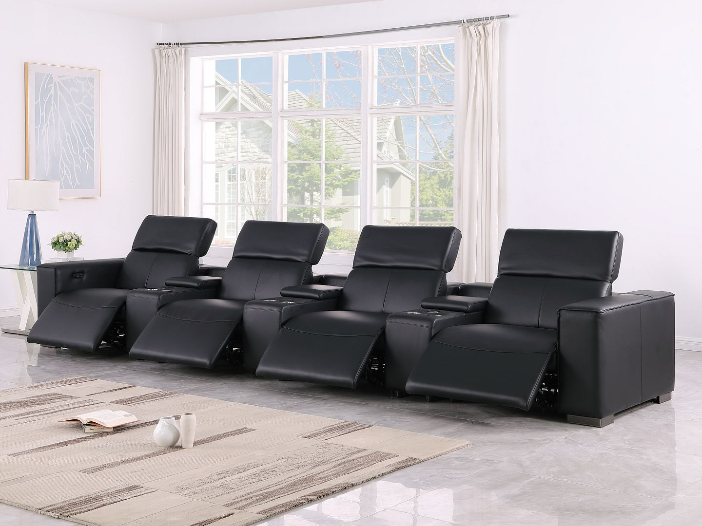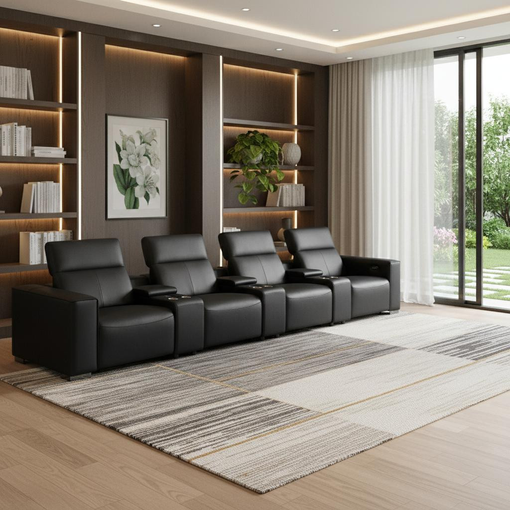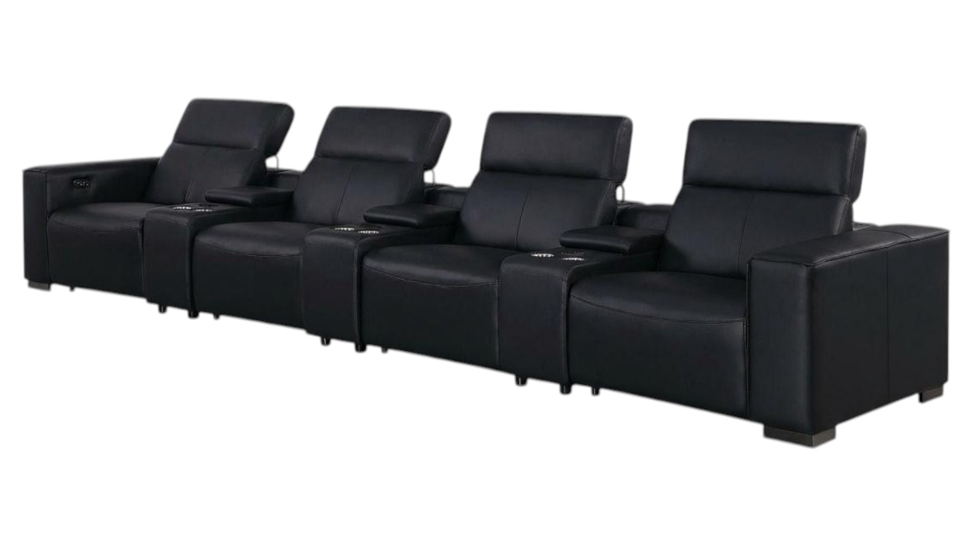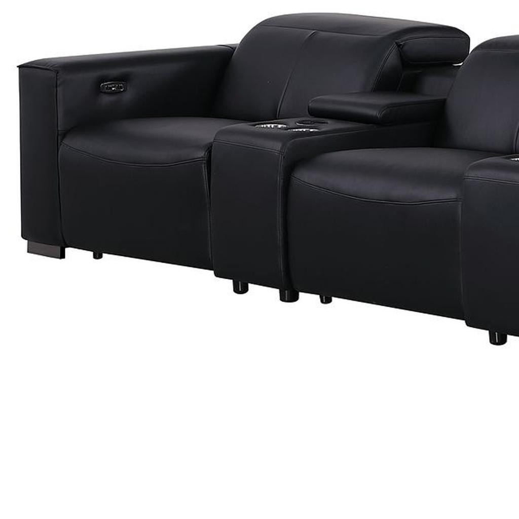 Genuine leather power reclining sofa; Luxury leather sofa with 4 recliners; Power reclining sofa with USB ports; Leather sofa with wireless phone chargers; Reclining sofa with lumbar support; Sofa with power headrests and storage consoles; Modern genuine leather home theater sofa; Brazilian wood frame leather sofa; Durable luxury reclining leather couch; Contemporary genuine leather sofa; Premium leather power recliner sofa; Comfortable leather sofa for living room |