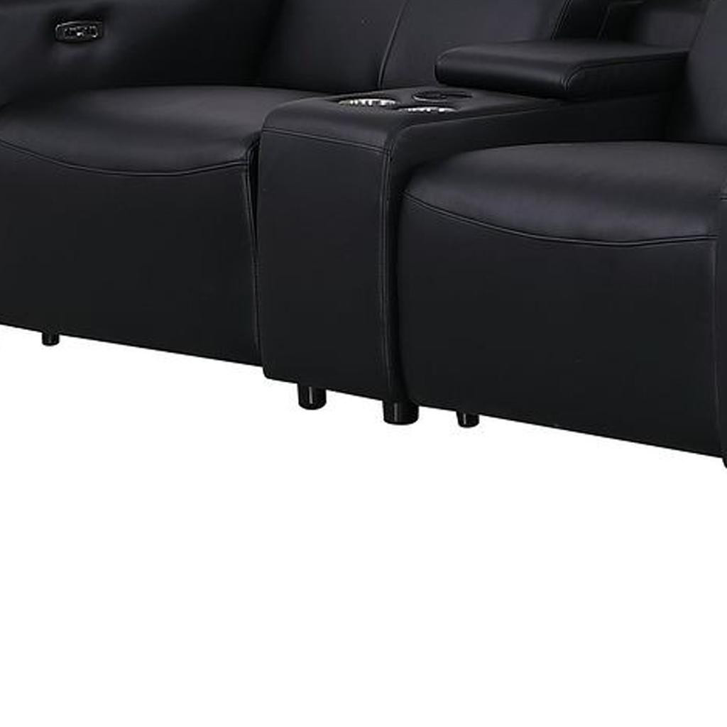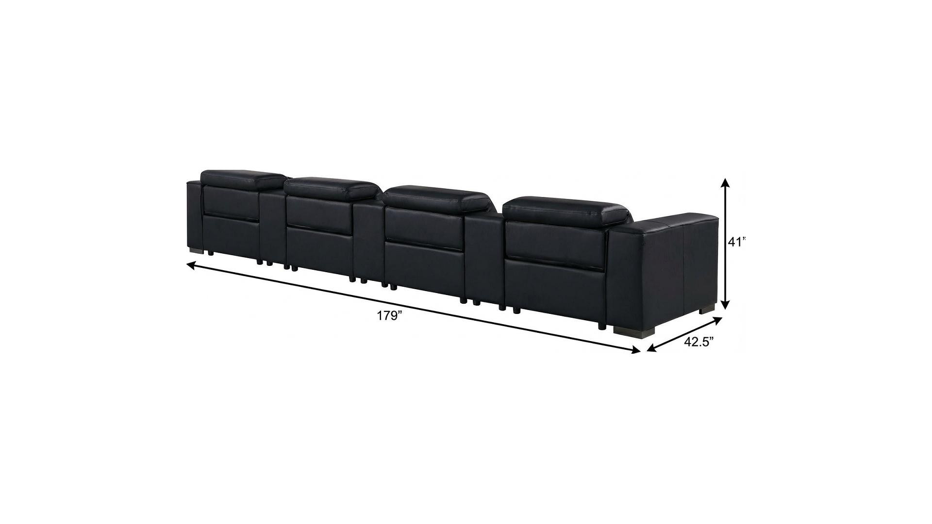An interior designer's dream, this buttery soft high grade leather 179-inch black top grain leather reclining metal usb sofa will bring just the right touch to your space. The premium leather used makes your lounging luxuriously comfortable and adds an elegant appeal to your space. Solid colors give you lots of decorative options and are easy to work into your decor scheme. Pocket spring construction gives this piece strong support and makes it comfortable to sit even for long periods of time. Square arms offer a comfy place to rest. Brown stainless steel legs effortlessly elevate the room and add a touch of contemporary design. Built to last, this sofa will be a great centerpiece for your room. 41.00-inch h x 179.00-inch w x 42.50-inch d.