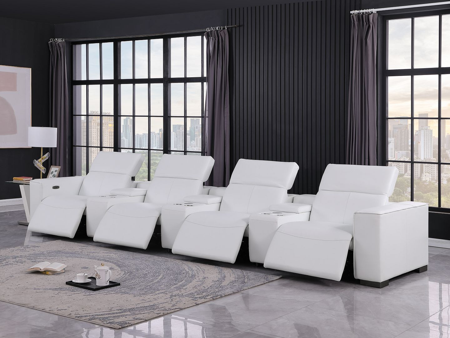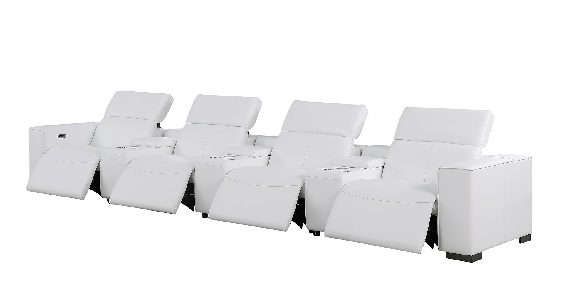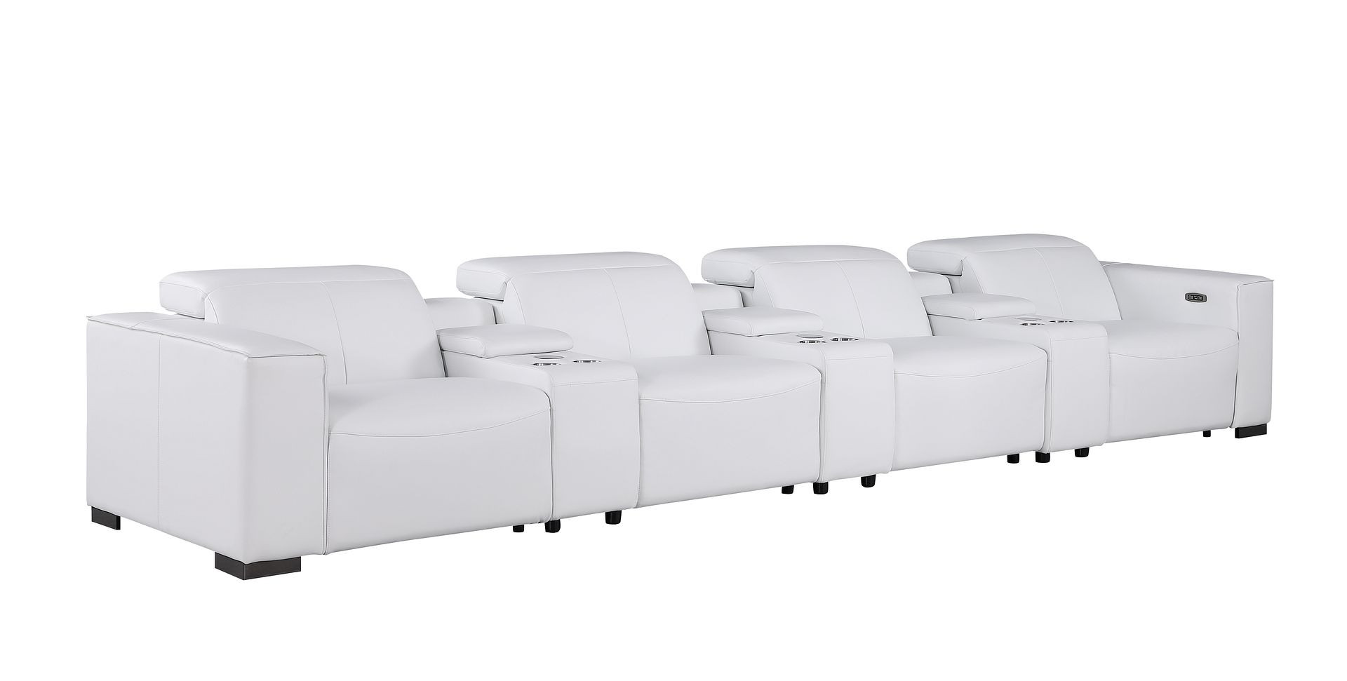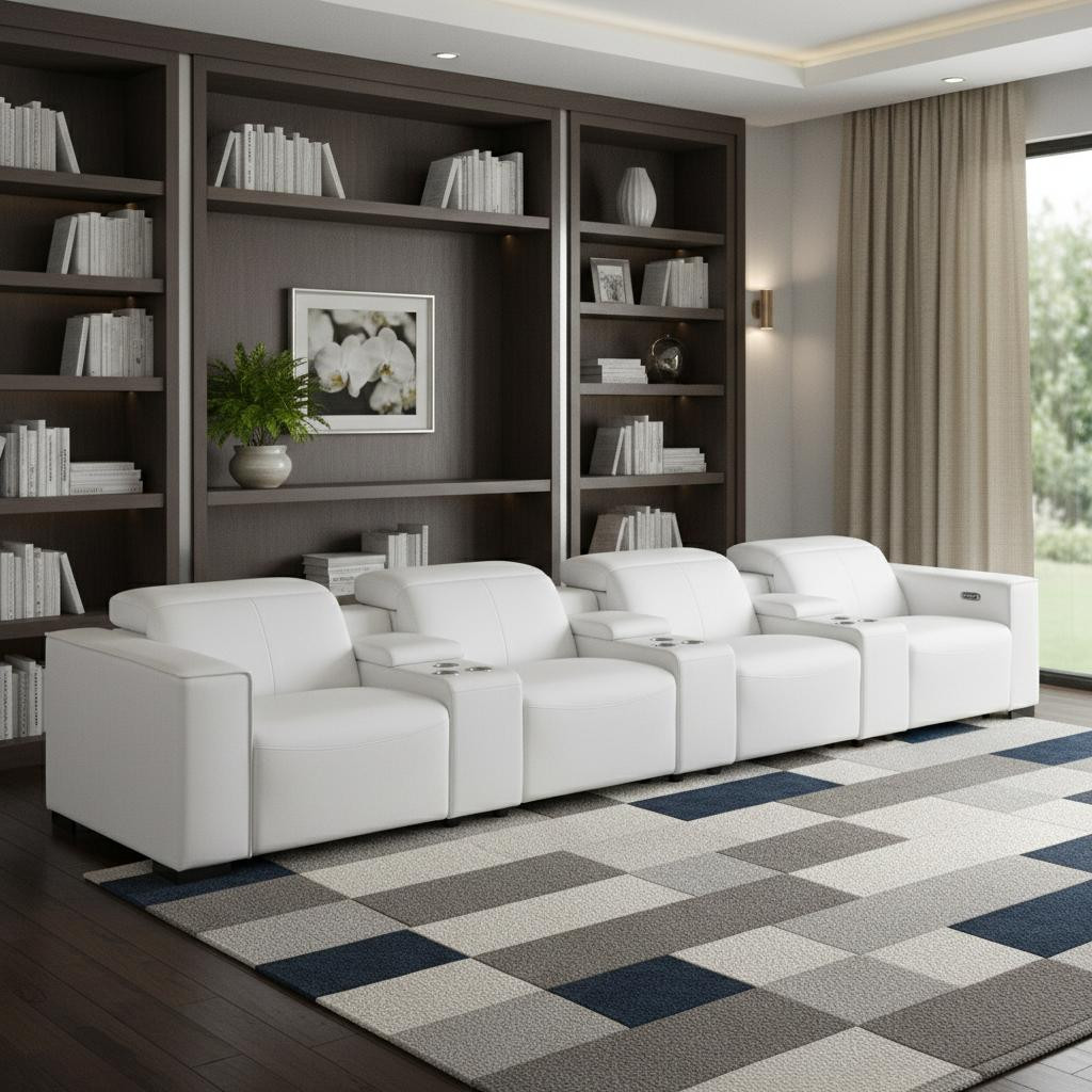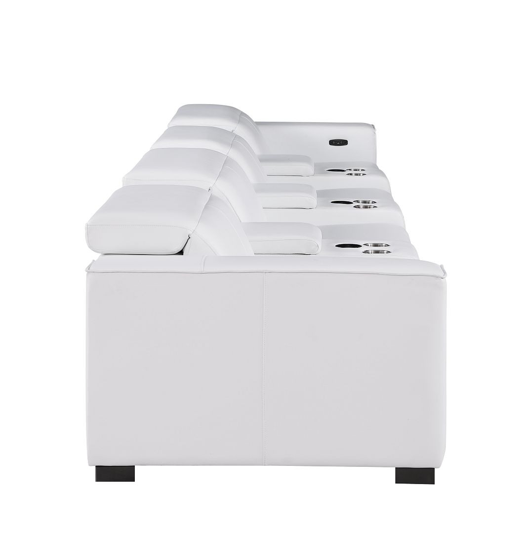 Genuine leather power reclining sofa; Luxury leather sofa with 4 recliners; Power reclining sofa with USB ports; Leather sofa with wireless phone chargers; Reclining sofa with lumbar support; Sofa with power headrests and storage consoles; Modern genuine leather home theater sofa; Brazilian wood frame leather sofa; Durable luxury reclining leather couch; Contemporary genuine leather sofa; Premium leather power recliner sofa; Comfortable leather sofa for living room |