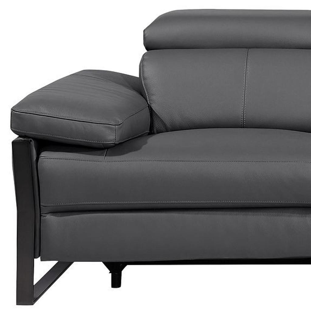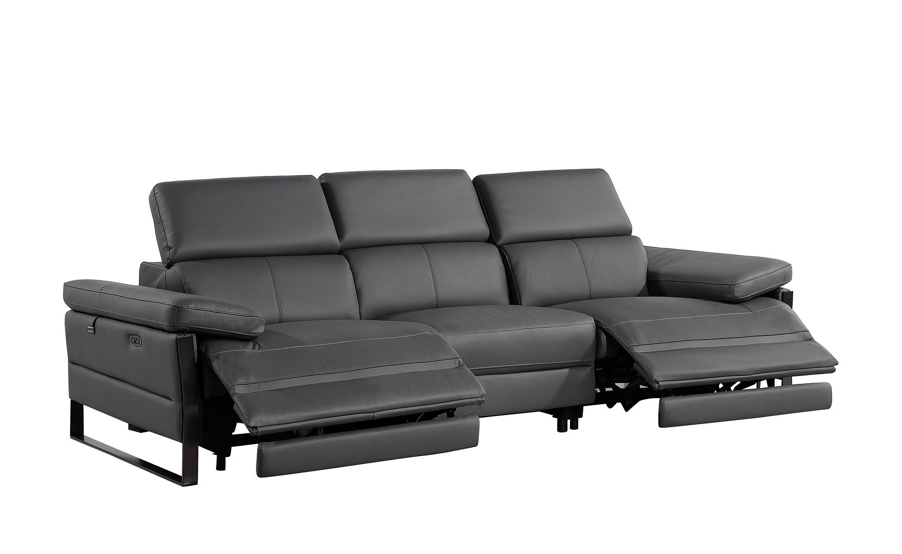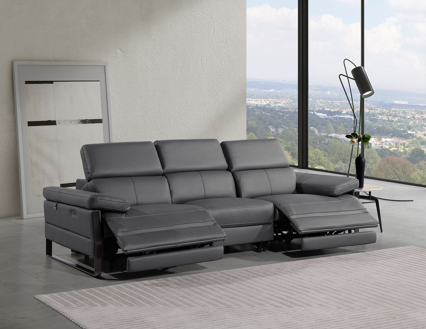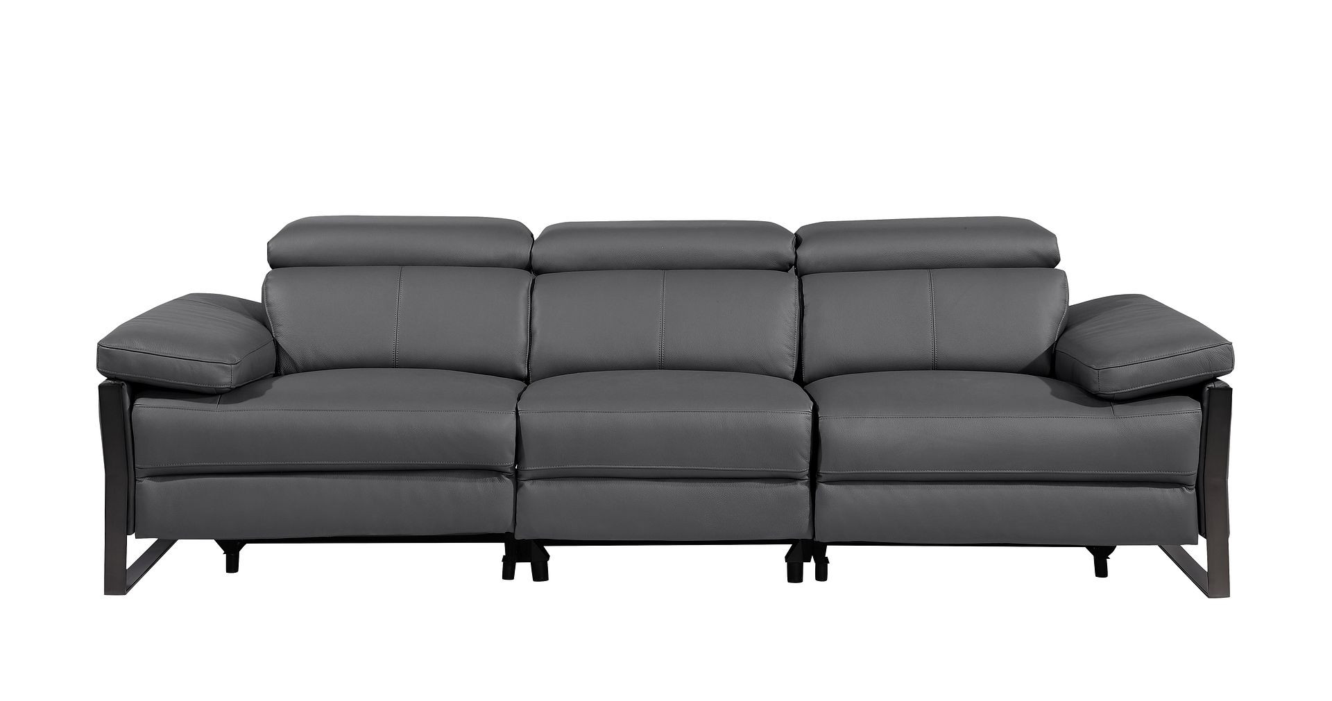 Superior construction from fabulously soft and high grade leather gives this 103-inch dark gray top grain leather reclining metal usb sofa a leg up on the competition. The premium leather used makes your lounging luxuriously comfortable and adds an elegant appeal to your space. Solid colors give you lots of decorative options and are easy to work into your decor scheme. Pocket spring construction gives this piece strong support and makes it comfortable to sit even for long periods of time. Rolled arms offer a comfy place to rest. Black stainless steel legs effortlessly elevate the room and add a touch of contemporary design. Built to last, this sofa will be a great centerpiece for your room. 31.00-inch h x 104.00-inch w x 43.00-inch d.