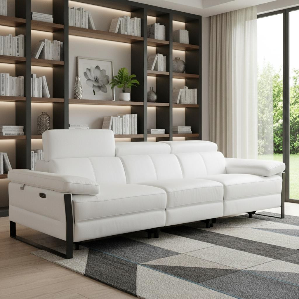 1246 DivanItalia WHITE Modular Power Triple Reclining Sofa with Power Reclining Headrests – Top Grain Italian Leather