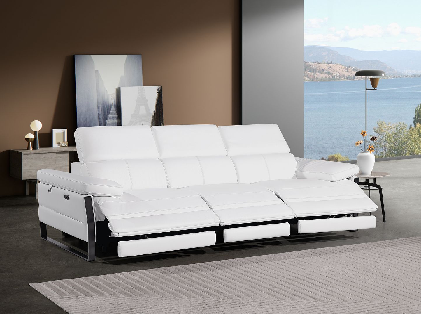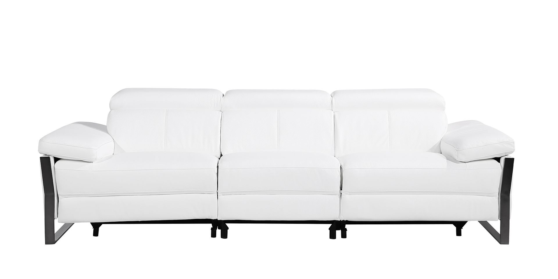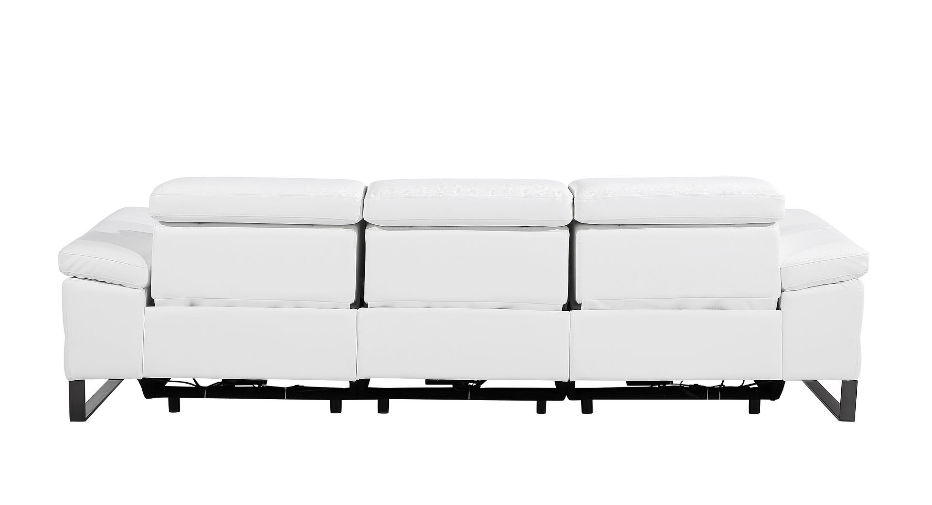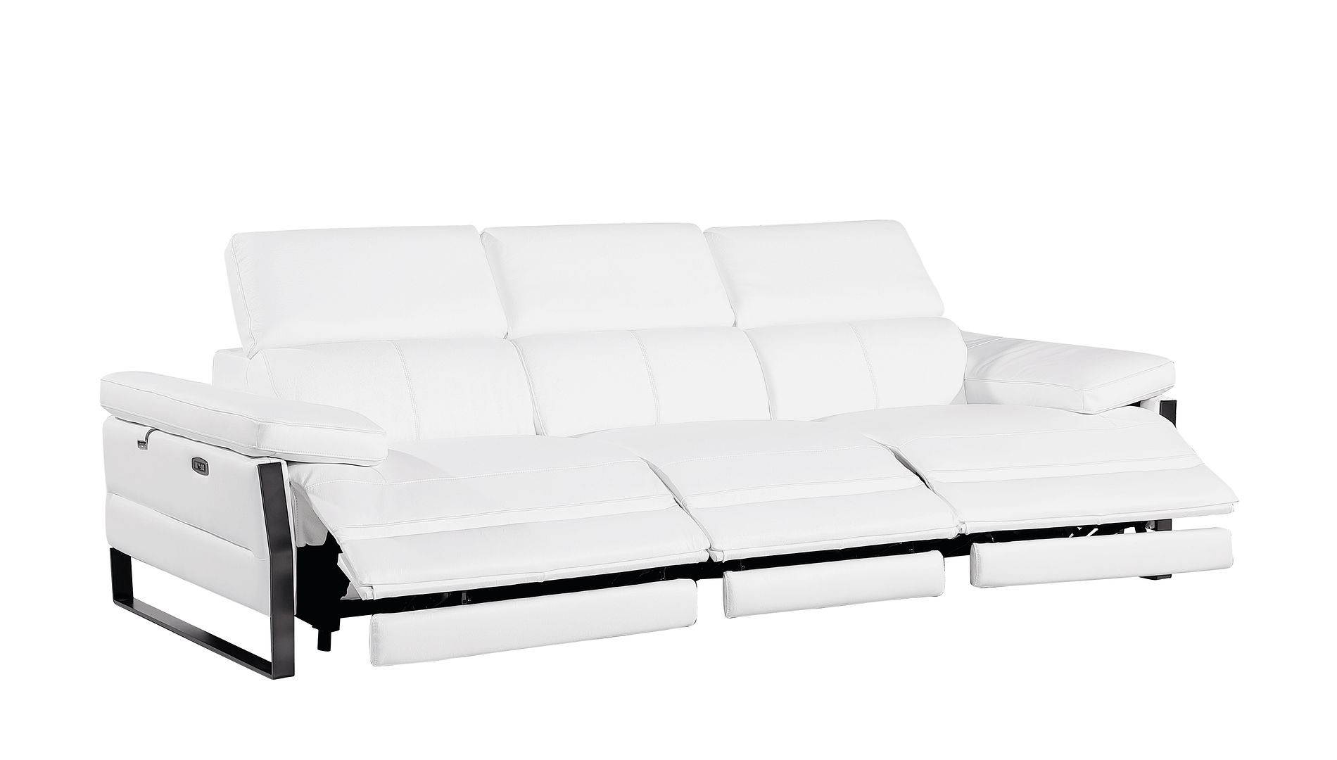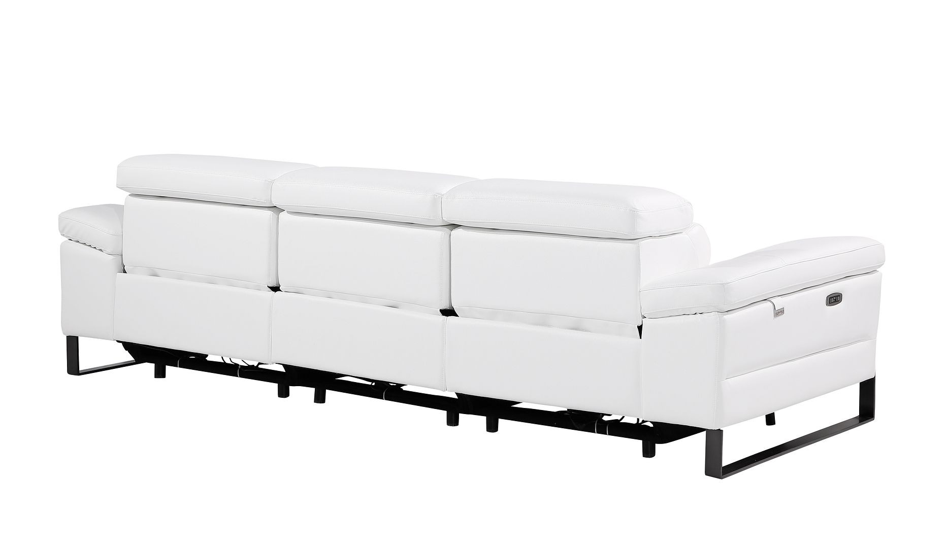 103" White Top Grain Leather Reclining Metal USB Sofa