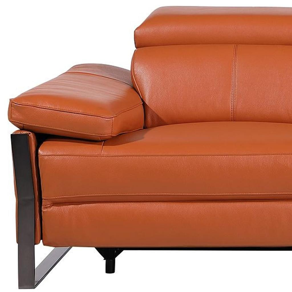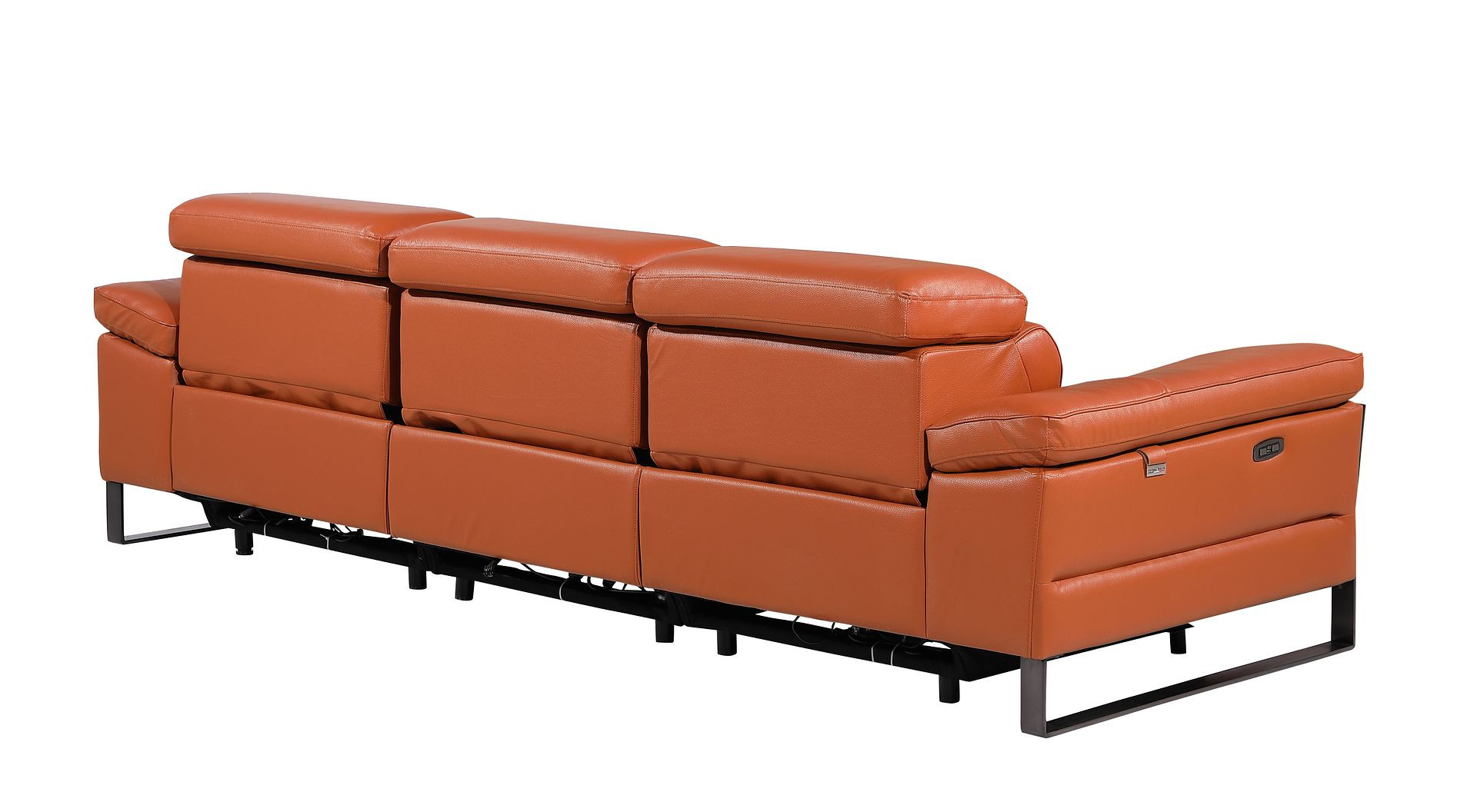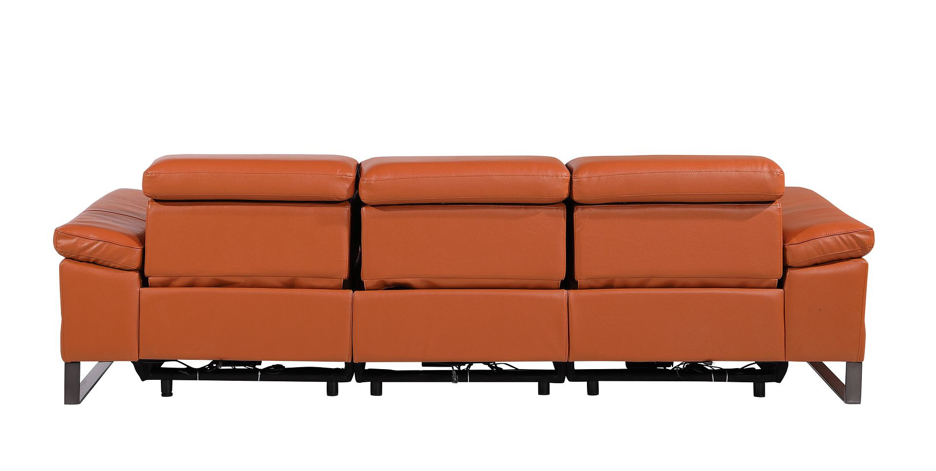 Made of the highest quality, supple leather, this 103-inch camel top grain leather reclining metal usb sofa will be the star of your space. The high grade premium leather used makes your lounging luxuriously comfortable and adds an elegant appeal to your space. Solid colors give you lots of decorative options and are easy to work into your decor scheme. Pocket spring construction gives this piece strong support and makes it comfortable to sit even for long periods of time. Rolled arms offer a comfy place to rest. Black stainless steel legs effortlessly elevate the room and add a touch of contemporary design. A great showpiece for your room, this sofa is a must have. 31.00-inch h x 104.00-inch w x 43.00-inch d.