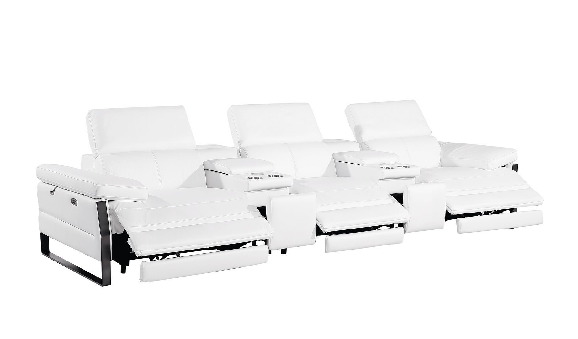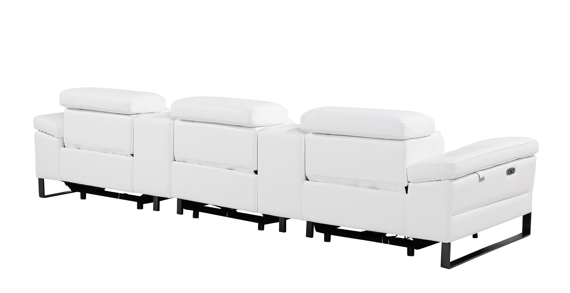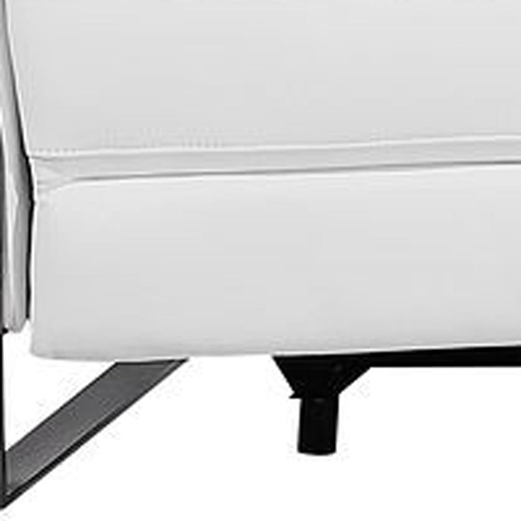 An interior designer's dream, this buttery soft high grade leather 129-inch white top grain leather reclining metal usb sofa will bring just the right touch to your space. The premium leather used makes your lounging luxuriously comfortable and adds an elegant appeal to your space. Solid colors give you lots of decorative options and are easy to work into your decor scheme. Pocket spring construction gives this piece strong support and makes it comfortable to sit even for long periods of time. Rolled arms offer a comfy place to rest. Black stainless steel legs effortlessly elevate the room and add a touch of contemporary design. A great showpiece for your room, this sofa is a must have. 31.00-inch h x 130.00-inch w x 43.00-inch d.