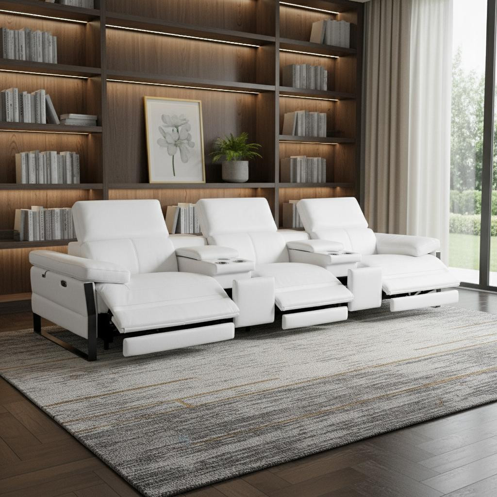 top grain italian leather console sofa; premium italian leather reclining sofa; italian leather sofa with power recliners; italian leather sofa with power headrests; lumbar support italian leather sofa; italian leather sofa with USB charging ports; italian leather sofa with wireless charging; italian leather sofa with power outlets; italian leather sofa with storage drawers; italian leather sofa with hidden storage; italian leather sofa with cup holders; luxury italian leather console sofa; solid brazilian wood frame italian sofa; ergonomic italian leather power recliner sofa; modern italian leather home theater sofa; high-end italian leather sofa with consoles |