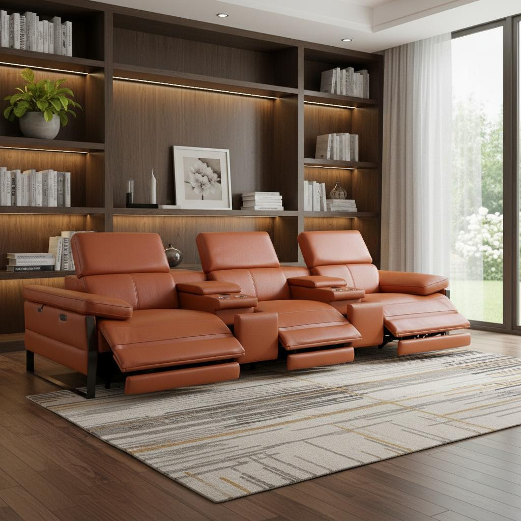 top grain italian leather console sofa; premium italian leather reclining sofa; italian leather sofa with power recliners; italian leather sofa with power headrests; lumbar support italian leather sofa; italian leather sofa with USB charging ports; italian leather sofa with wireless charging; italian leather sofa with power outlets; italian leather sofa with storage drawers; italian leather sofa with hidden storage; italian leather sofa with cup holders; luxury italian leather console sofa; solid brazilian wood frame italian sofa; ergonomic italian leather power recliner sofa; modern italian leather home theater sofa; high-end italian leather sofa with consoles |