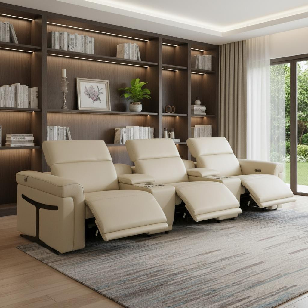 leather power reclining sofa, Italian leather reclining sofa, top grain leather sofa with recliners, 3 seat power recliner sofa, sofa with console storage, sofa with USB ports and wireless charging, luxury Italian leather sofa, modern reclining sofa, jet black leg sofa, sofa with lumbar support, home theater leather sofa, contemporary reclining sofa |