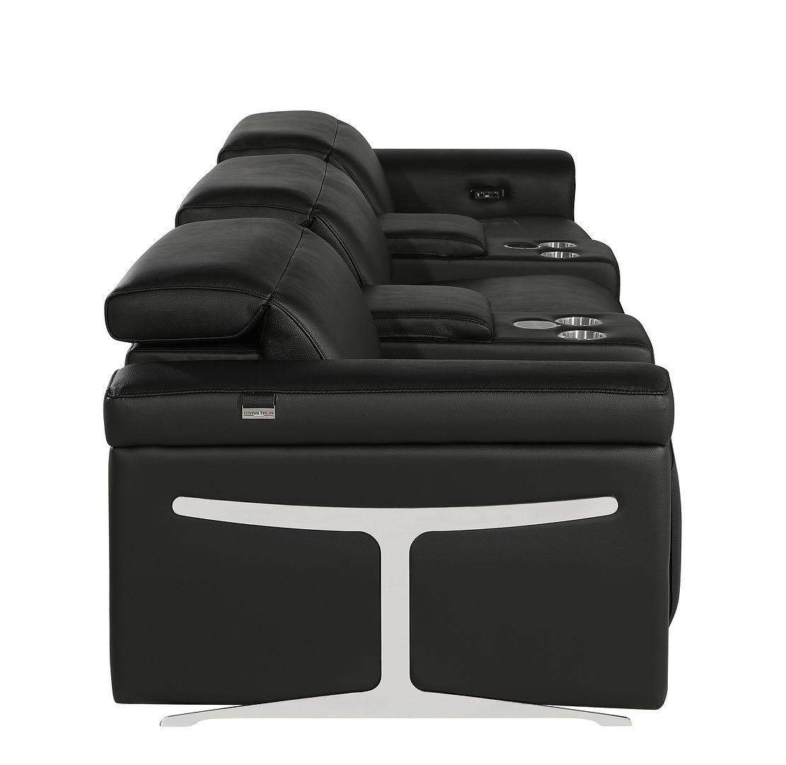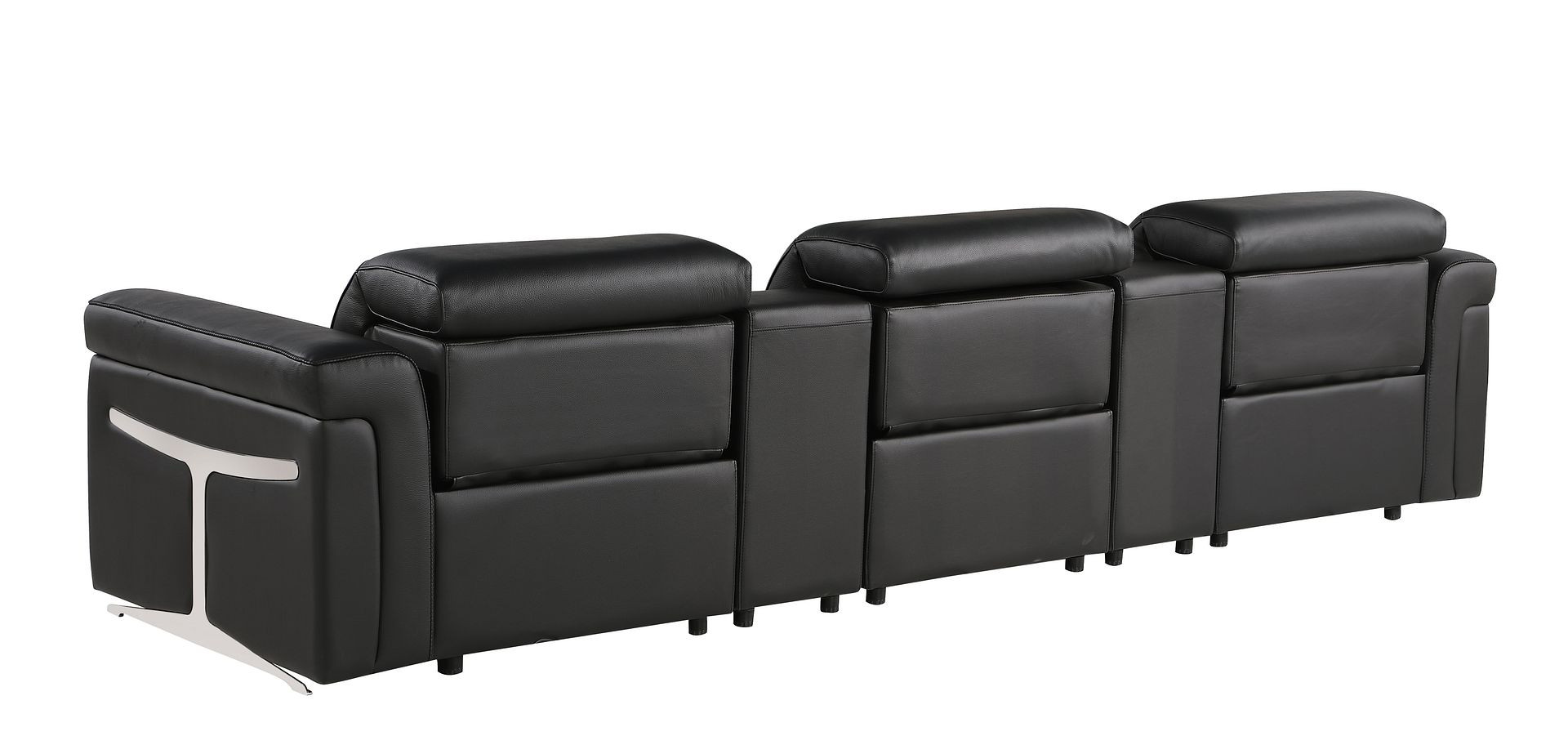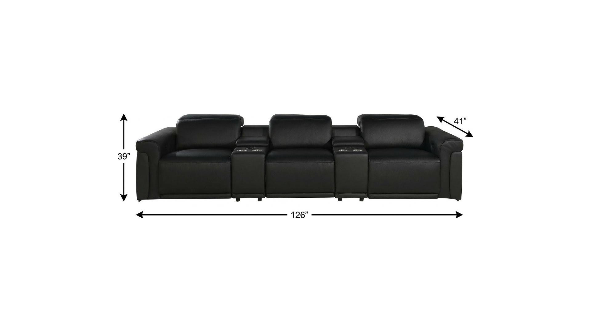 Superior construction from fabulously soft and high grade leather gives this 126-inch black top grain leather reclining metal usb sofa a leg up on the competition. The premium leather used makes your lounging luxuriously comfortable and adds an elegant appeal to your space. Solid colors give you lots of decorative options and are easy to work into your decor scheme. Pocket spring construction gives this piece strong support and makes it comfortable to sit even for long periods of time. Rolled arms offer a comfy place to rest. Black stainless steel legs effortlessly elevate the room and add a touch of contemporary design. Built to last, this sofa will be a great centerpiece for your room. 39.00-inch h x 126.00-inch w x 41.00-inch d.