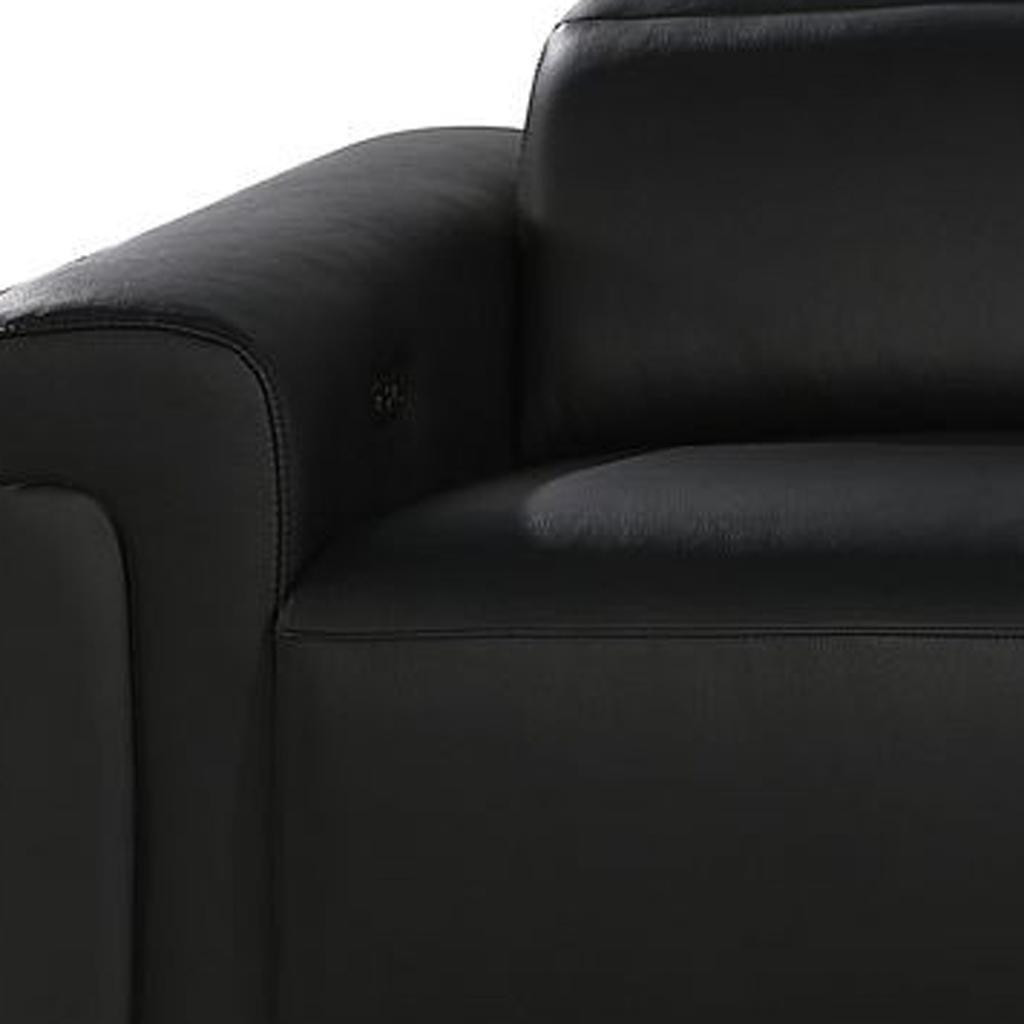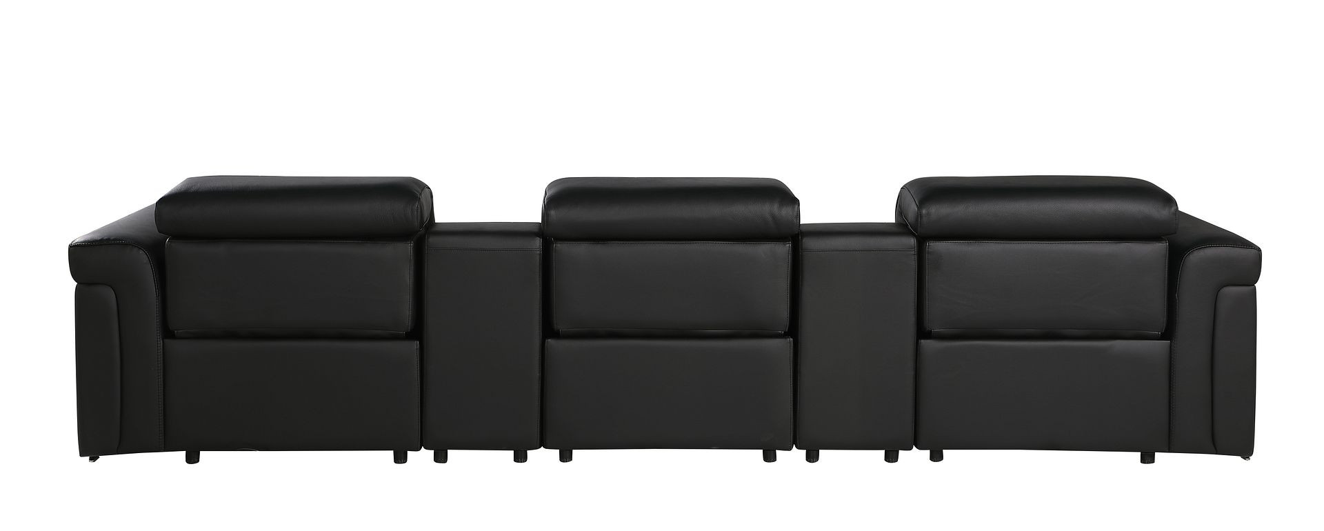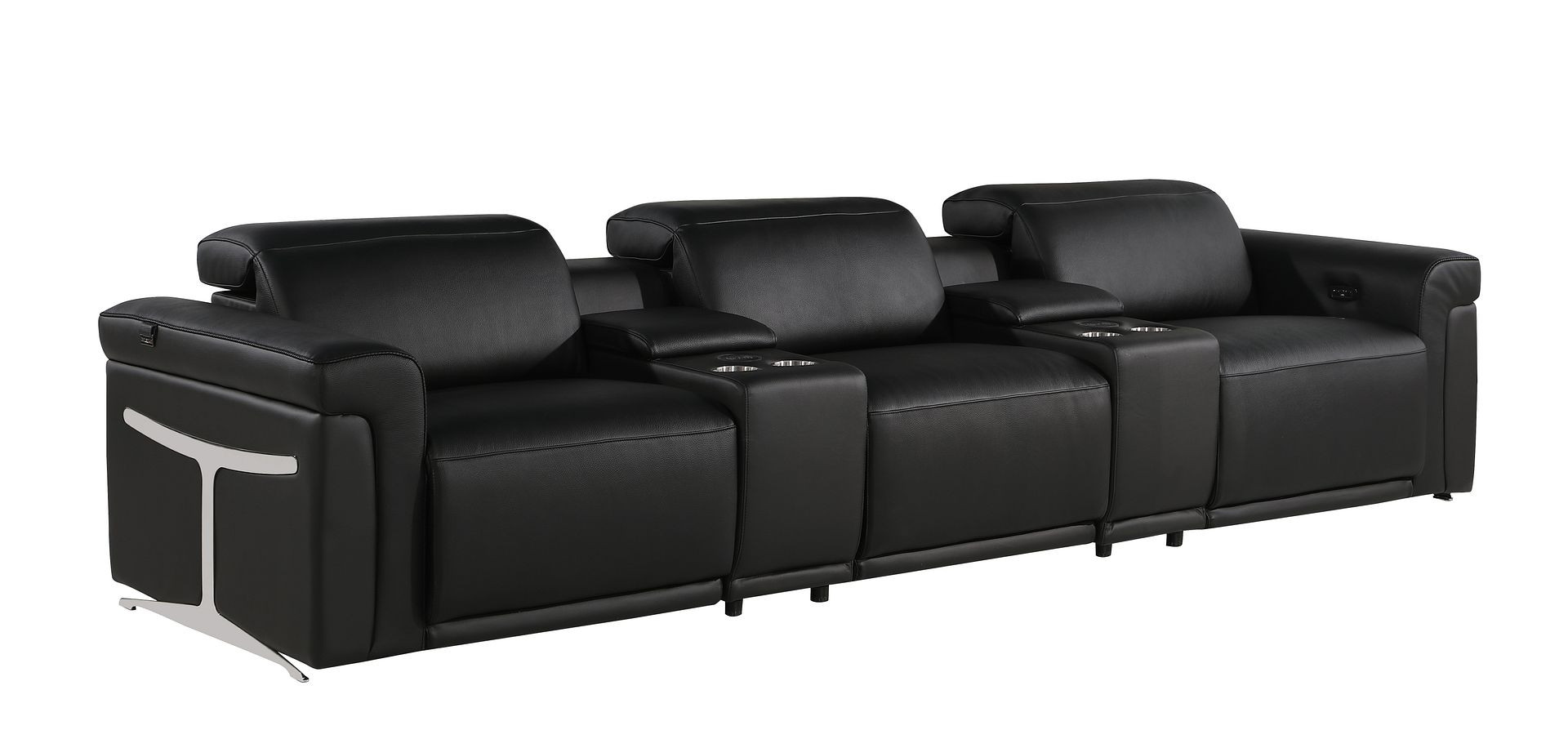 Superior construction from fabulously soft and high grade leather gives this 126-inch black top grain leather reclining metal usb sofa a leg up on the competition. The premium leather used makes your lounging luxuriously comfortable and adds an elegant appeal to your space. Solid colors give you lots of decorative options and are easy to work into your decor scheme. Pocket spring construction gives this piece strong support and makes it comfortable to sit even for long periods of time. Rolled arms offer a comfy place to rest. Black stainless steel legs effortlessly elevate the room and add a touch of contemporary design. Built to last, this sofa will be a great centerpiece for your room. 39.00-inch h x 126.00-inch w x 41.00-inch d.