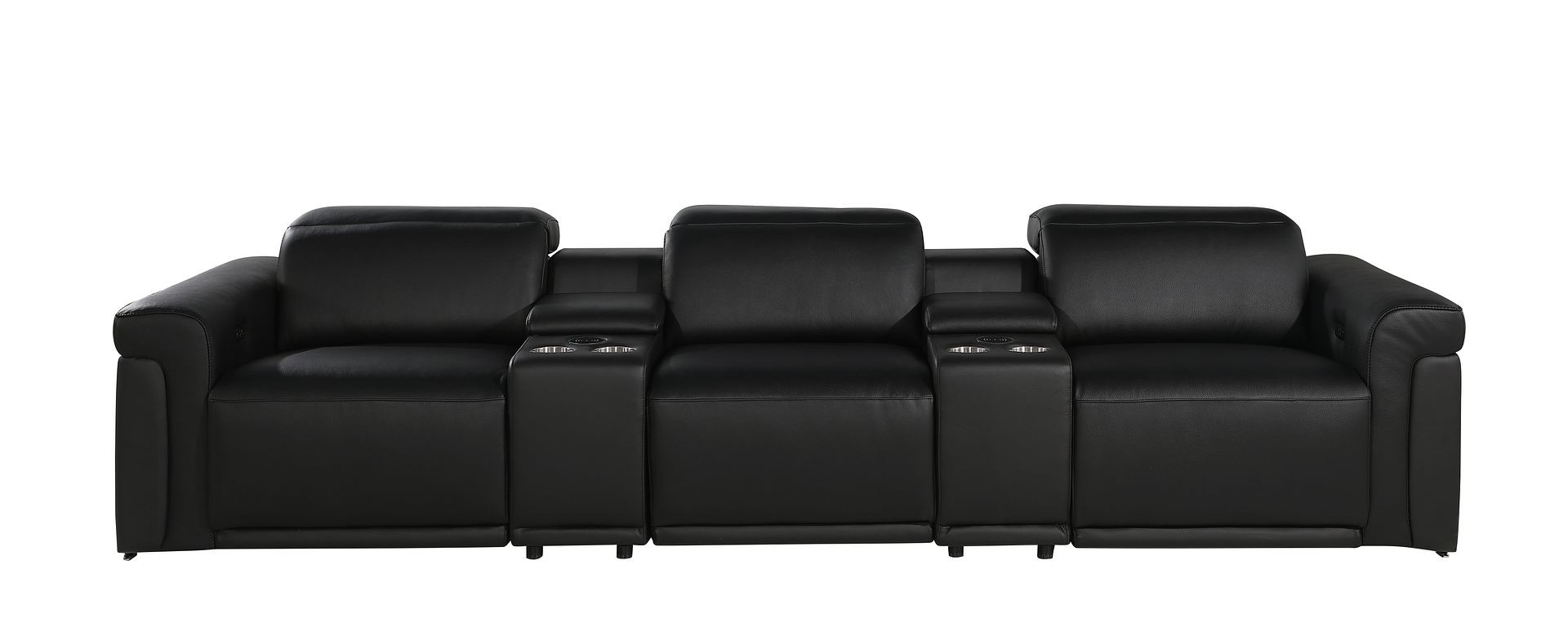 leather power reclining sofa, Italian leather reclining sofa, top grain leather sofa with recliners, 3 seat power recliner sofa, sofa with console storage, sofa with USB ports and wireless charging, luxury Italian leather sofa, modern reclining sofa, Chrome leg sofa, sofa with lumbar support, home theater leather sofa, contemporary reclining sofa |