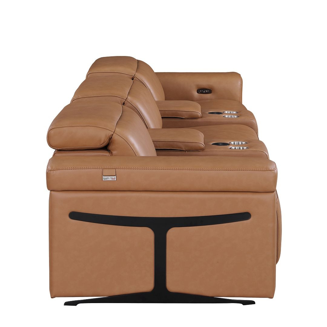 leather power reclining sofa, Italian leather reclining sofa, top grain leather sofa with recliners, 3 seat power recliner sofa, sofa with console storage, sofa with USB ports and wireless charging, luxury Italian leather sofa, modern reclining sofa, jet black leg sofa, sofa with lumbar support, home theater leather sofa, contemporary reclining sofa |