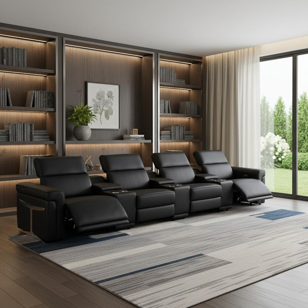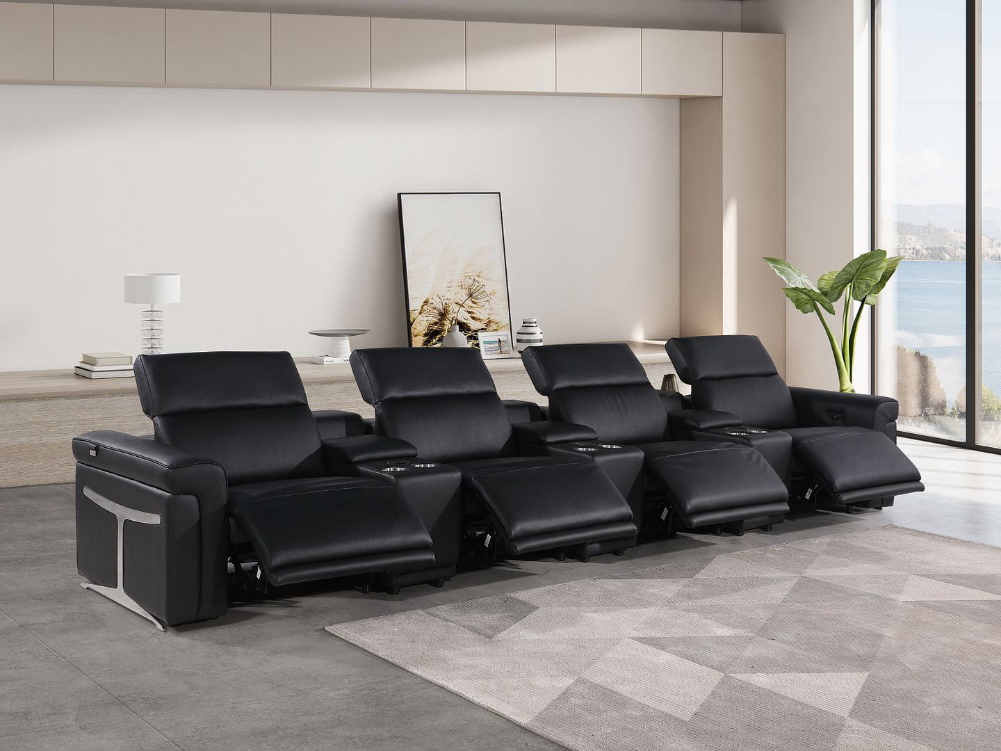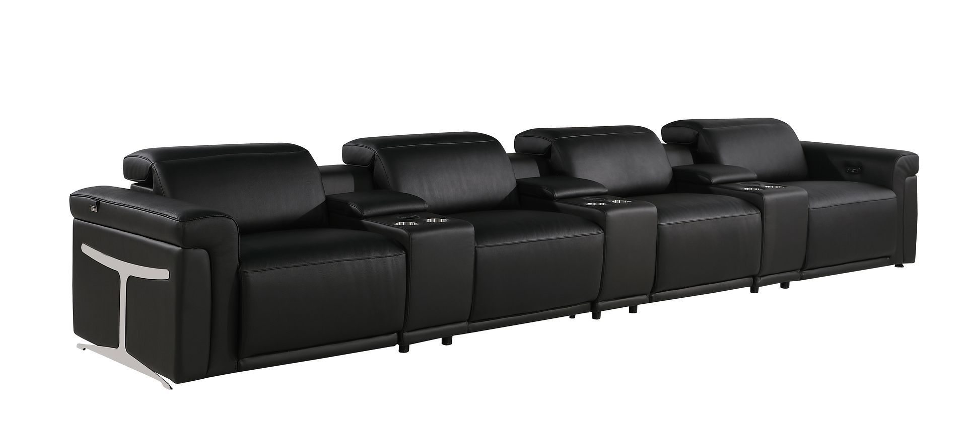 7-piece modular sofa, Italian leather sectional, top grain leather reclining sofa, modular sofa with 4 recliners, Italian leather sofa with USB ports, leather modular sectional, sofa with wireless charging and storage, modular power reclining sofa set, modern leather home theater seating, luxury leather sectional, Chrome leg leather sofa, Italian leather modular living room sofa |