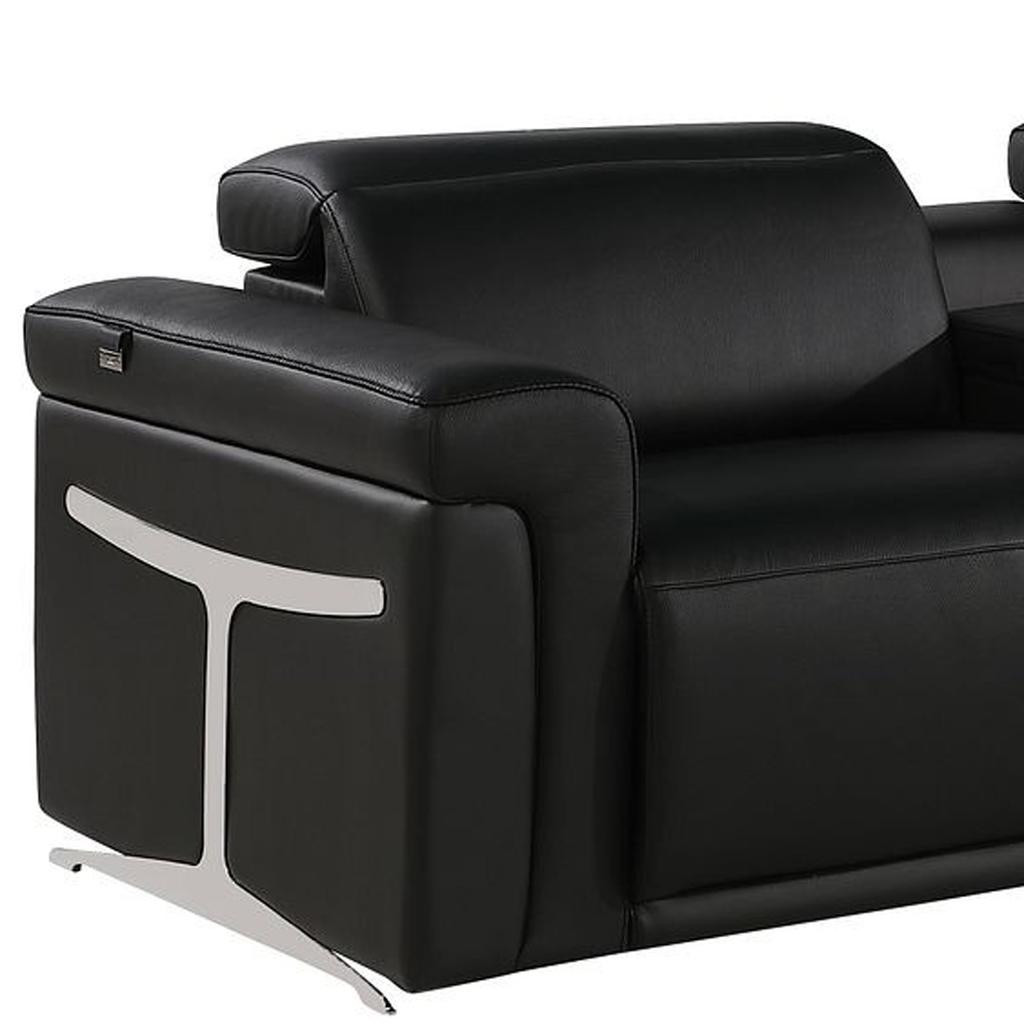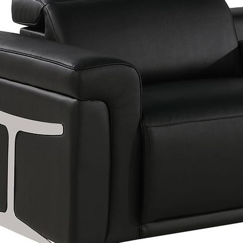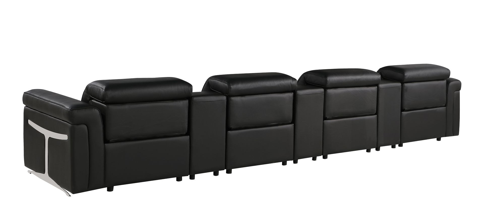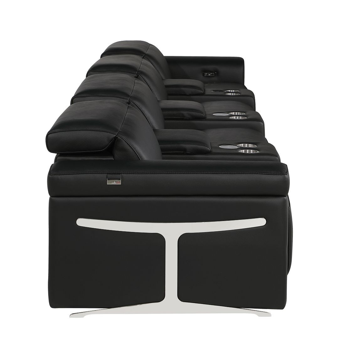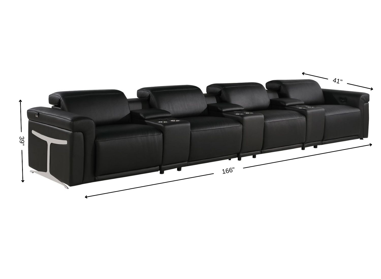 An interior designer's dream, this buttery soft high grade leather 166-inch black top grain leather reclining metal usb sofa will bring just the right touch to your space. The premium leather used makes your lounging luxuriously comfortable and adds an elegant appeal to your space. Solid colors give you lots of decorative options and are easy to work into your decor scheme. Pocket spring construction gives this piece strong support and makes it comfortable to sit even for long periods of time. Rolled arms offer a comfy place to rest. Black stainless steel legs effortlessly elevate the room and add a touch of contemporary design. A great showpiece for your room, this sofa is a must have. 39.00-inch h x 166.00-inch w x 41.00-inch d.