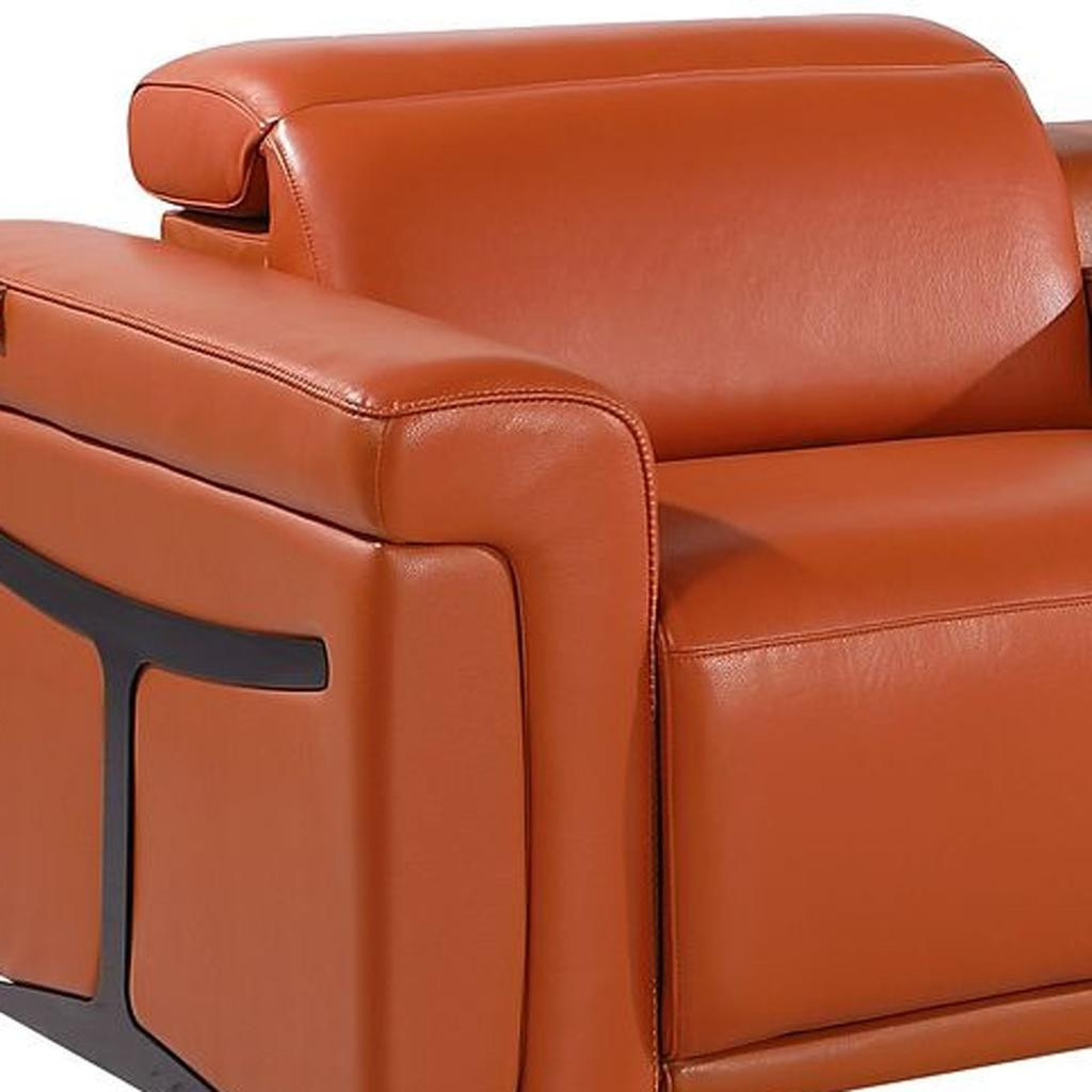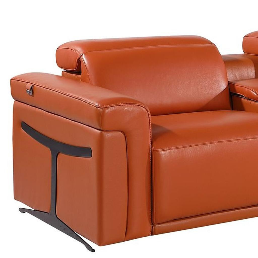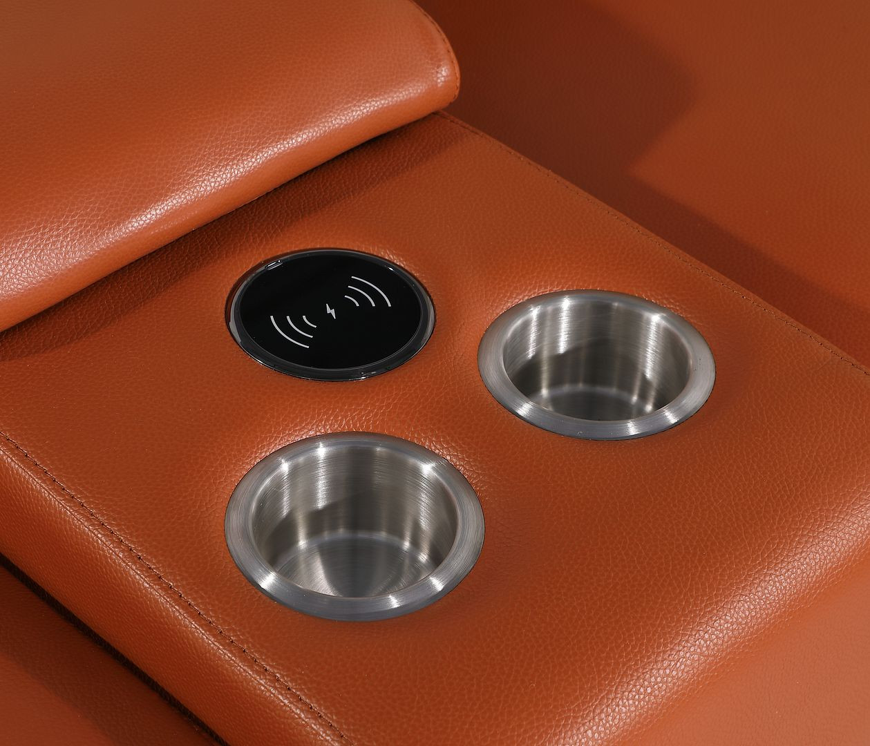An interior designer's dream, this buttery soft high grade leather 166-inch camel top grain leather reclining metal usb sofa will bring just the right touch to your space. The premium leather used makes your lounging luxuriously comfortable and adds an elegant appeal to your space. Solid colors give you lots of decorative options and are easy to work into your decor scheme. Pocket spring construction gives this piece strong support and makes it comfortable to sit even for long periods of time. Rolled arms offer a comfy place to rest. Black stainless steel legs effortlessly elevate the room and add a touch of contemporary design. A great showpiece for your room, this sofa is a must have. 39.00-inch h x 166.00-inch w x 41.00-inch d.
