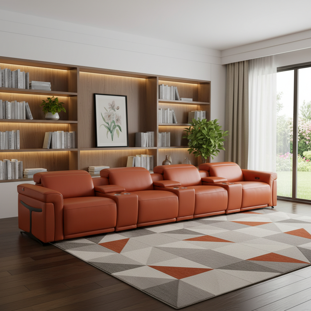 7-piece modular sofa, Italian leather sectional, top grain leather reclining sofa, modular sofa with 4 recliners, Italian leather sofa with USB ports, leather modular sectional, sofa with wireless charging and storage, modular power reclining sofa set, modern leather home theater seating, luxury leather sectional, jet black leg leather sofa, Italian leather modular living room sofa |