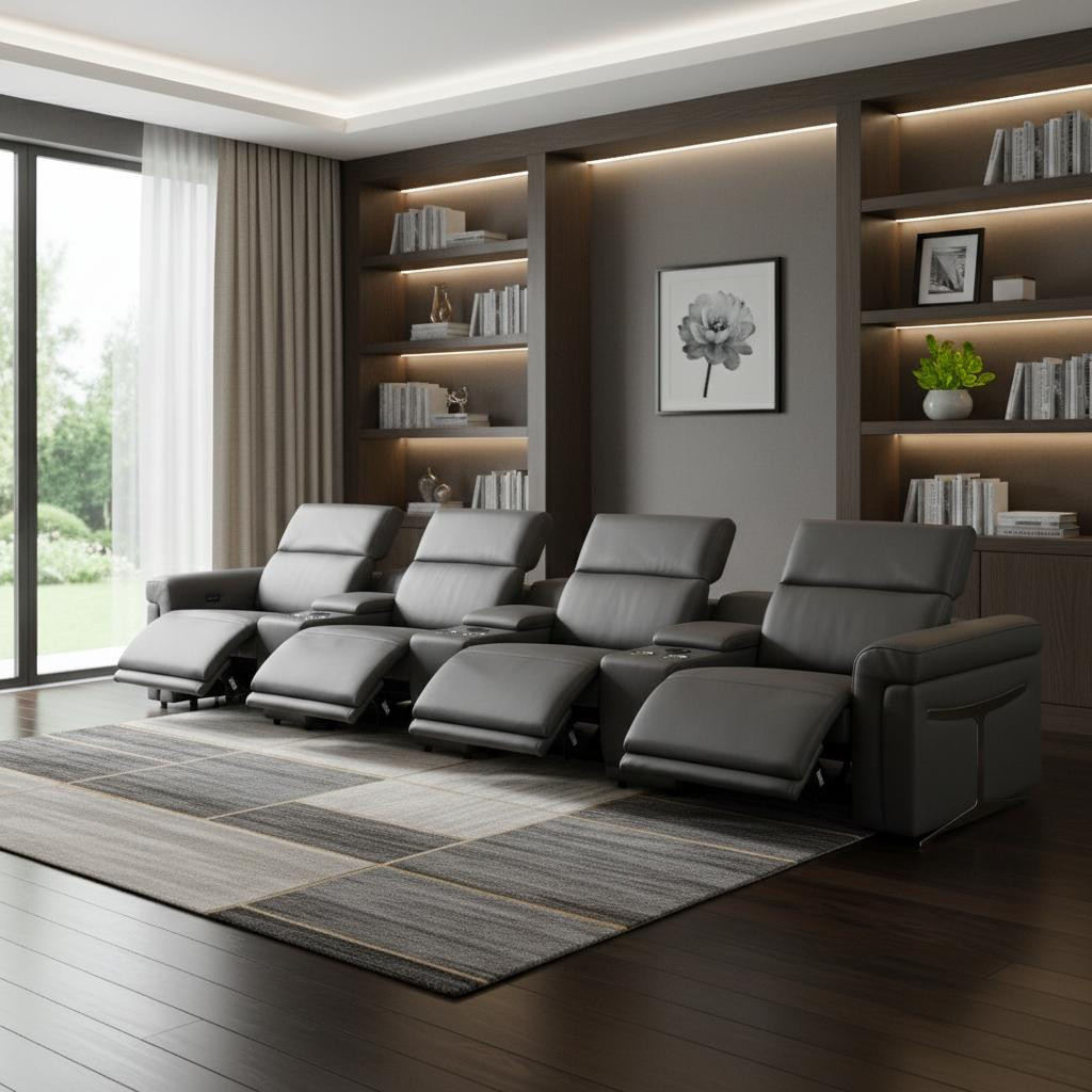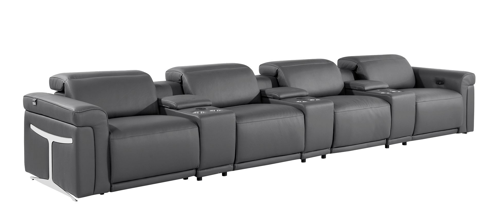 7-piece modular sofa, Italian leather sectional, top grain leather reclining sofa, modular sofa with 4 recliners, Italian leather sofa with USB ports, leather modular sectional, sofa with wireless charging and storage, modular power reclining sofa set, modern leather home theater seating, luxury leather sectional, Chrome leg leather sofa, Italian leather modular living room sofa |