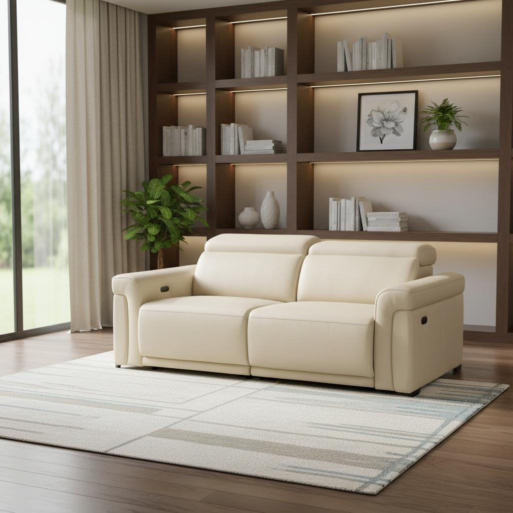 Superior construction from fabulously soft and high grade leather gives this 80-inch beige top grain leather reclining metal usb sofa a leg up on the competition. The premium leather used makes your lounging luxuriously comfortable and adds an elegant appeal to your space. Solid colors give you lots of decorative options and are easy to work into your decor scheme. Pocket spring construction gives this piece strong support and makes it comfortable to sit even for long periods of time. Rolled arms offer a comfy place to rest. Black stainless steel legs effortlessly elevate the room and add a touch of contemporary design. Built to last, this sofa will be a great centerpiece for your room. 39.00-inch h x 80.00-inch w x 41.00-inch d.