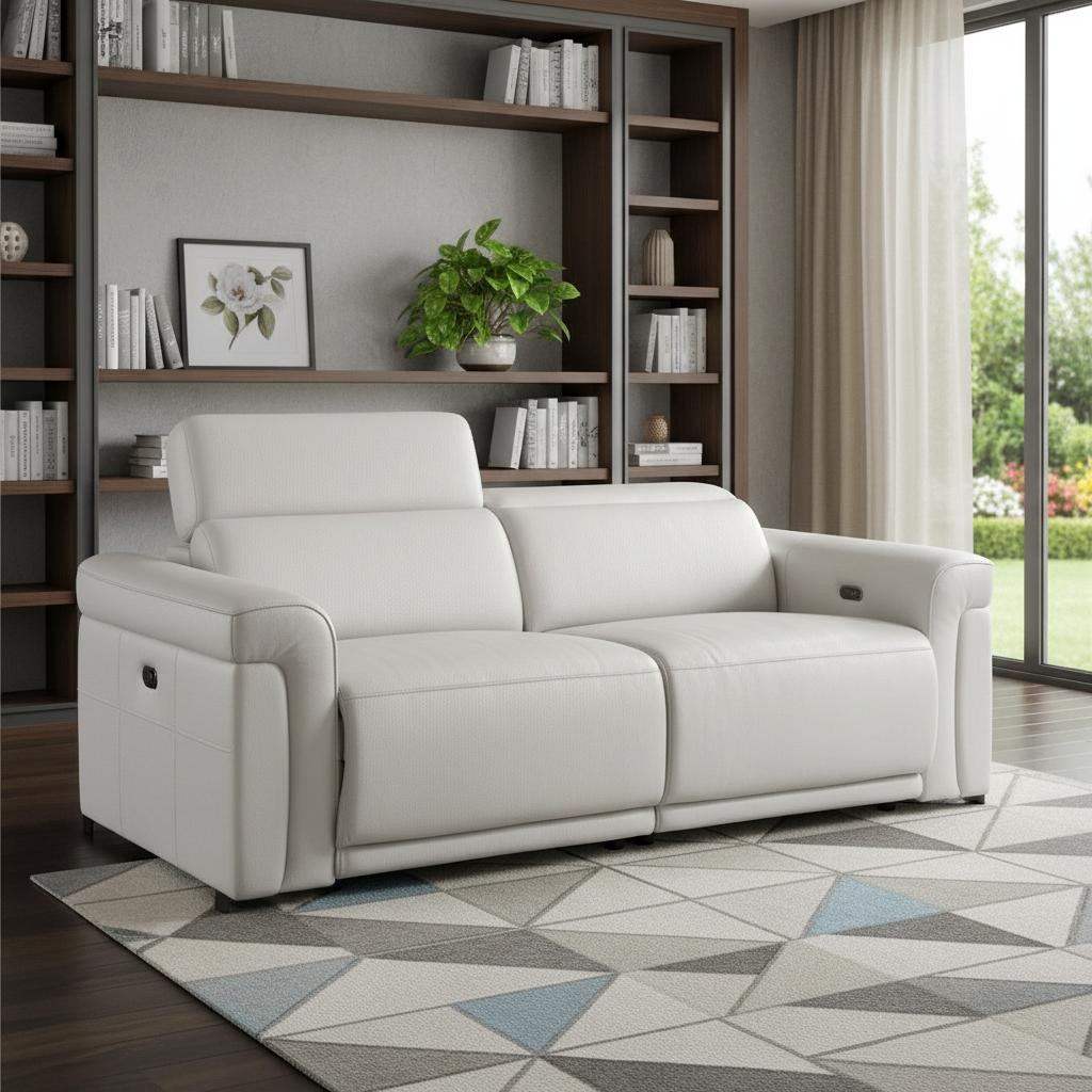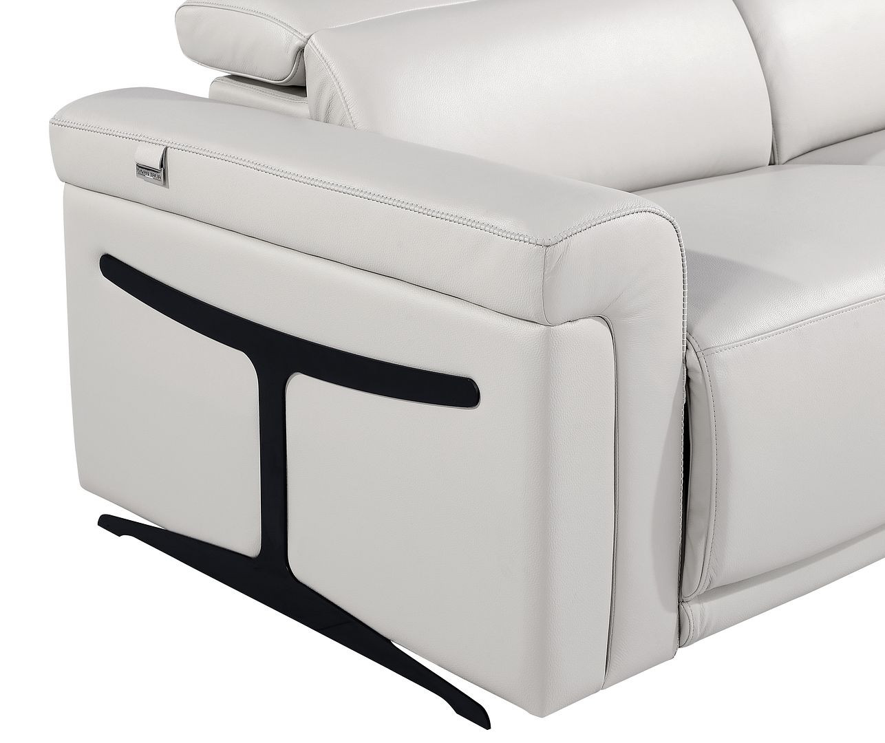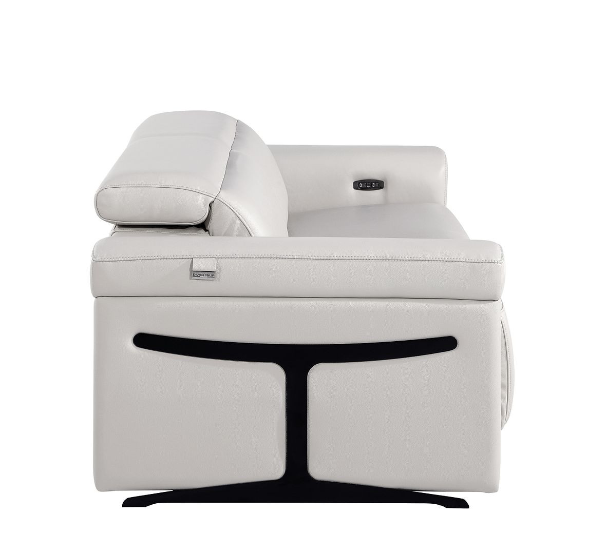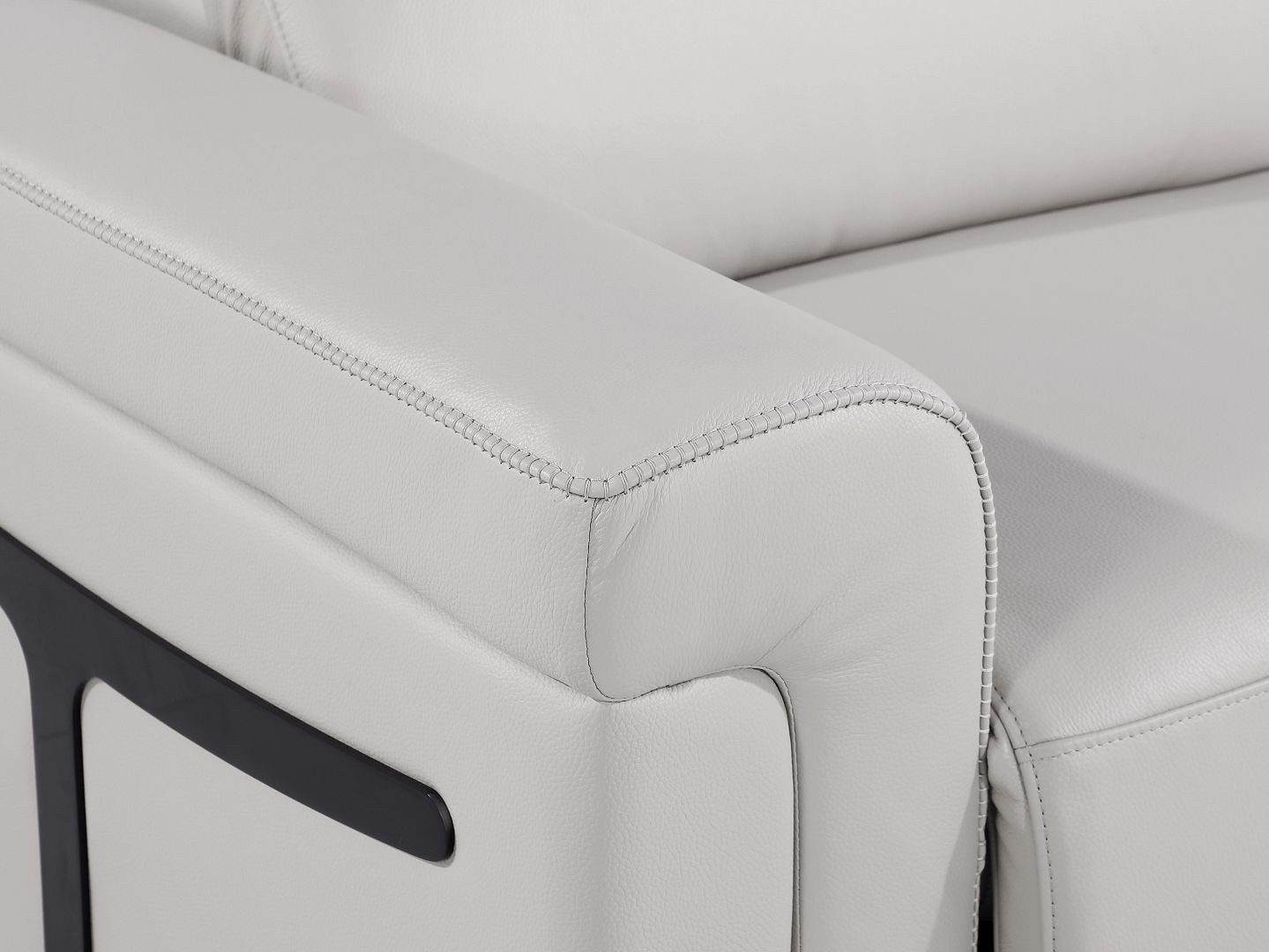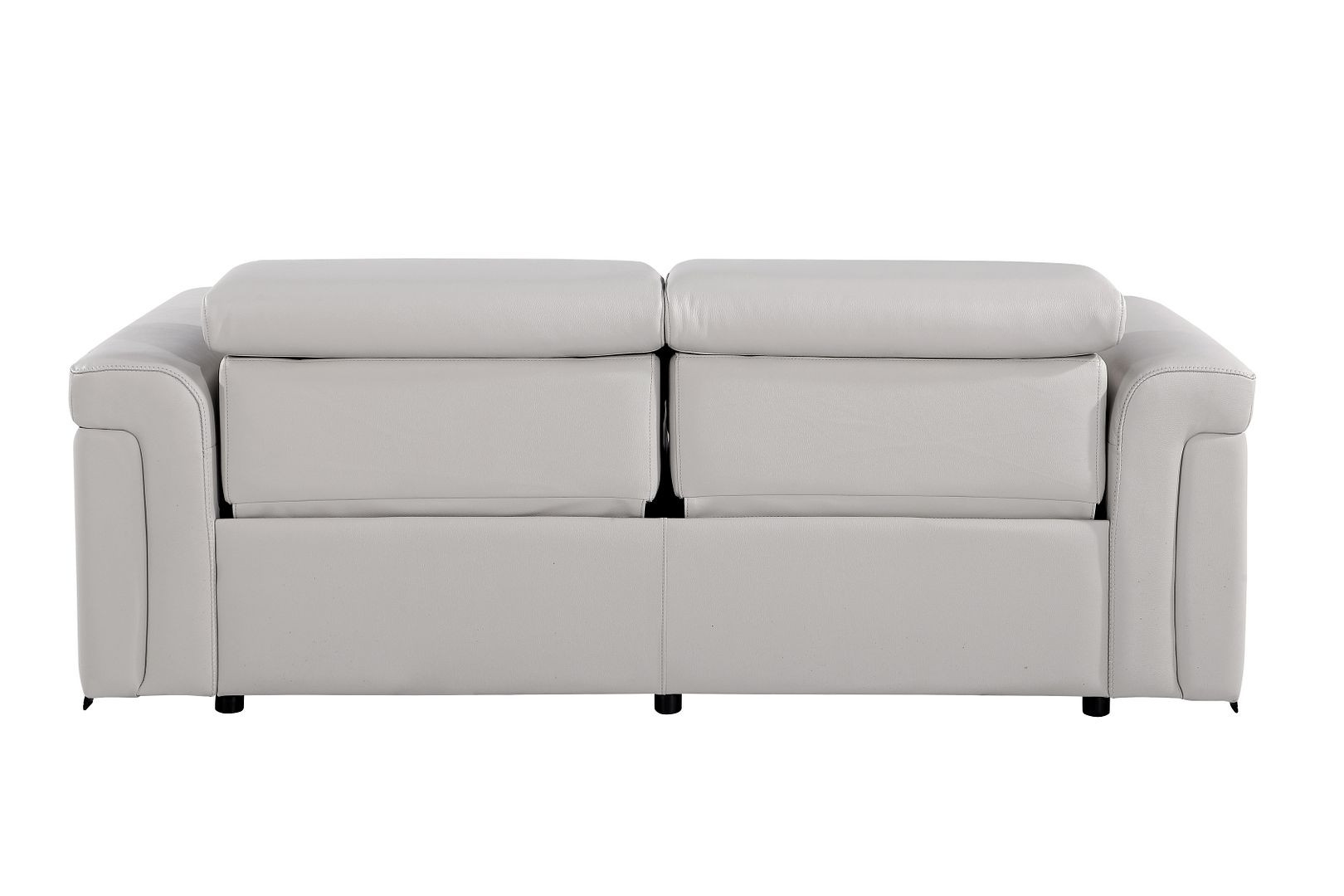 Superior construction from fabulously soft and high grade leather gives this 80-inch light gray top grain leather reclining metal usb sofa a leg up on the competition. The premium leather used makes your lounging luxuriously comfortable and adds an elegant appeal to your space. Solid colors give you lots of decorative options and are easy to work into your decor scheme. Pocket spring construction gives this piece strong support and makes it comfortable to sit even for long periods of time. Rolled arms offer a comfy place to rest. Black stainless steel legs effortlessly elevate the room and add a touch of contemporary design. A great showpiece for your room, this sofa is a must have. 39.00-inch h x 80.00-inch w x 41.00-inch d.