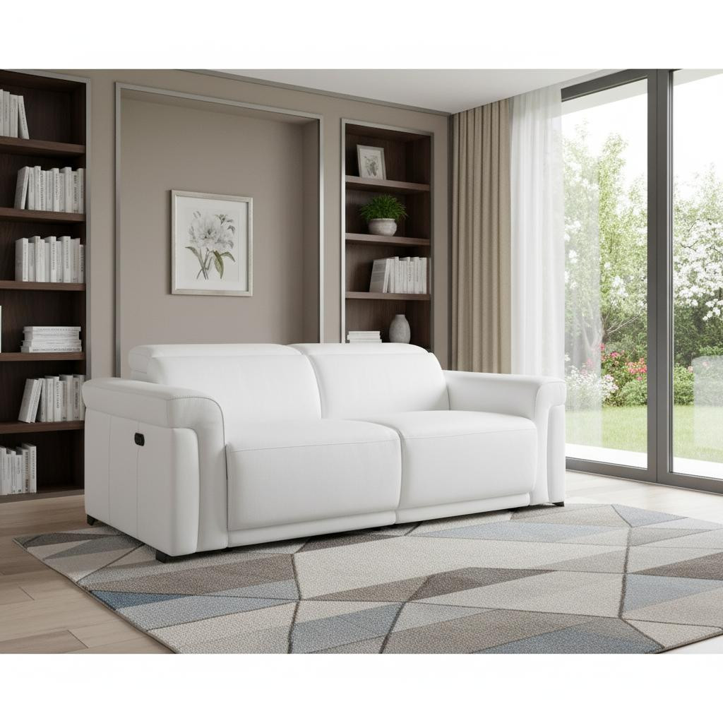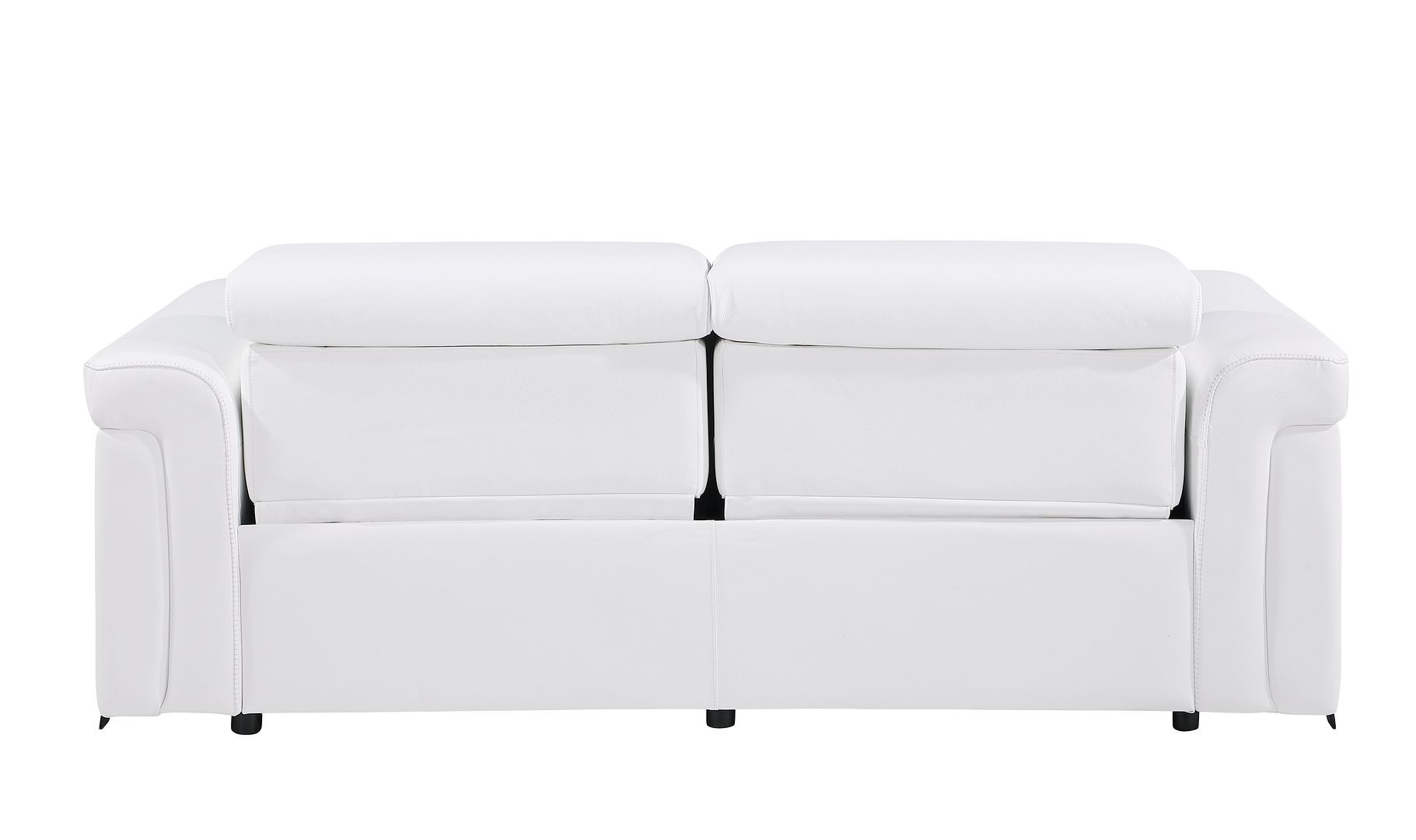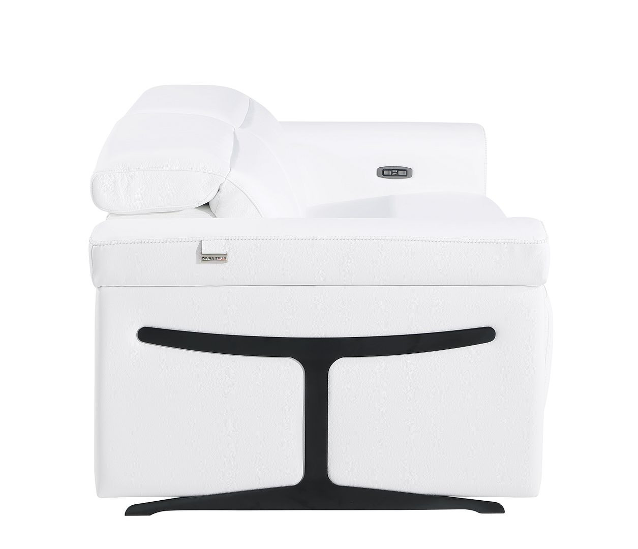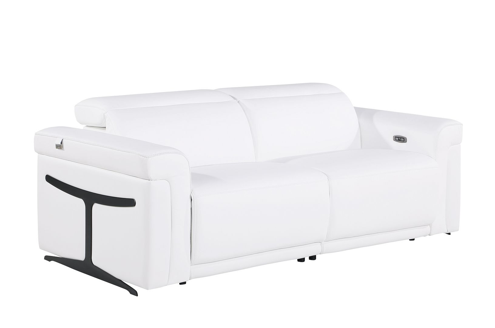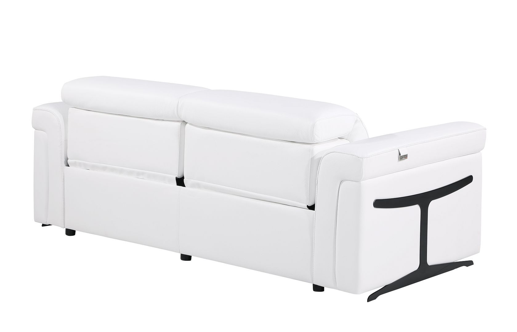 An interior designer's dream, this buttery soft high grade leather 80-inch white top grain leather reclining metal usb sofa will bring just the right touch to your space. The premium leather used makes your lounging luxuriously comfortable and adds an elegant appeal to your space. Solid colors give you lots of decorative options and are easy to work into your decor scheme. Pocket spring construction gives this piece strong support and makes it comfortable to sit even for long periods of time. Rolled arms offer a comfy place to rest. Black stainless steel legs effortlessly elevate the room and add a touch of contemporary design. A great showpiece for your room, this sofa is a must have. 39.00-inch h x 80.00-inch w x 41.00-inch d.
