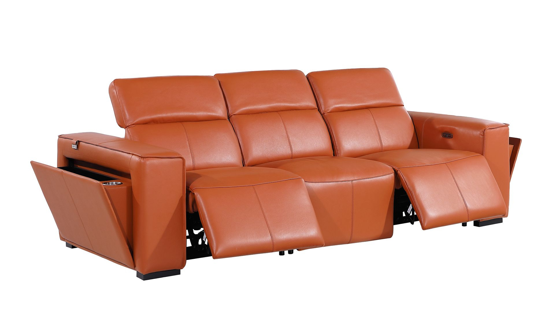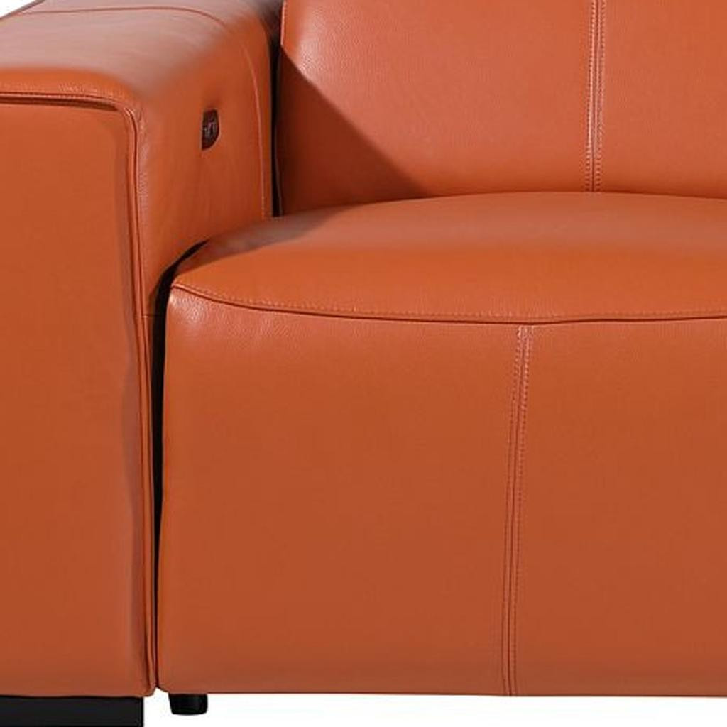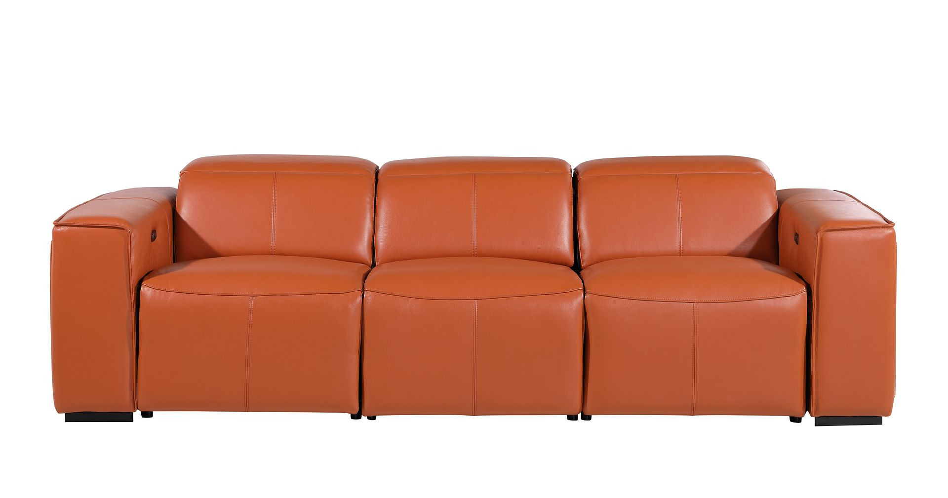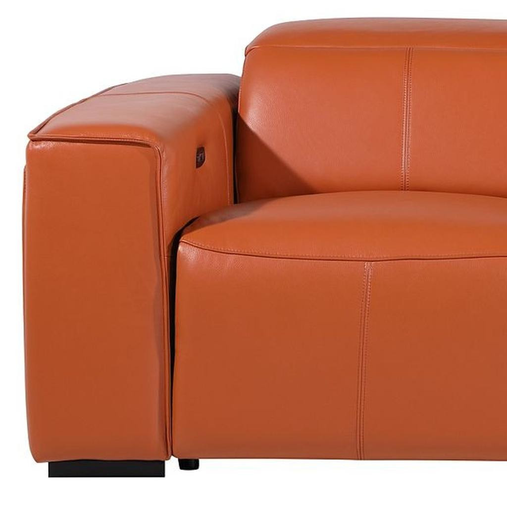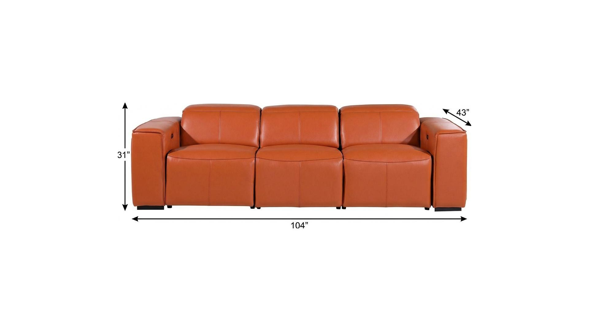 Made of the highest quality, supple leather, this 104-inch camel top grain leather reclining metal usb sofa will be the star of your space. The high grade premium leather used makes your lounging luxuriously comfortable and adds an elegant appeal to your space. Solid colors give you lots of decorative options and are easy to work into your decor scheme. Pocket spring construction gives this piece strong support and makes it comfortable to sit even for long periods of time. Square arms offer a comfy place to rest. Brown stainless steel legs effortlessly elevate the room and add a touch of contemporary design. A great showpiece for your room, this sofa is a must have. 31.00-inch h x 104.00-inch w x 43.00-inch d.
