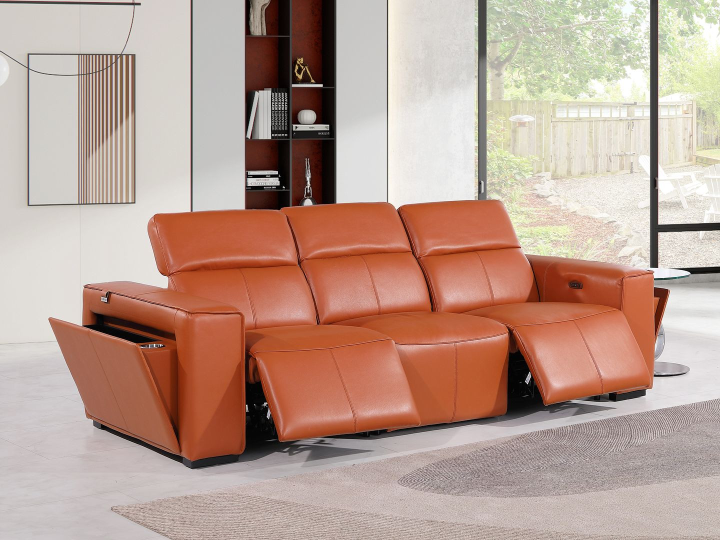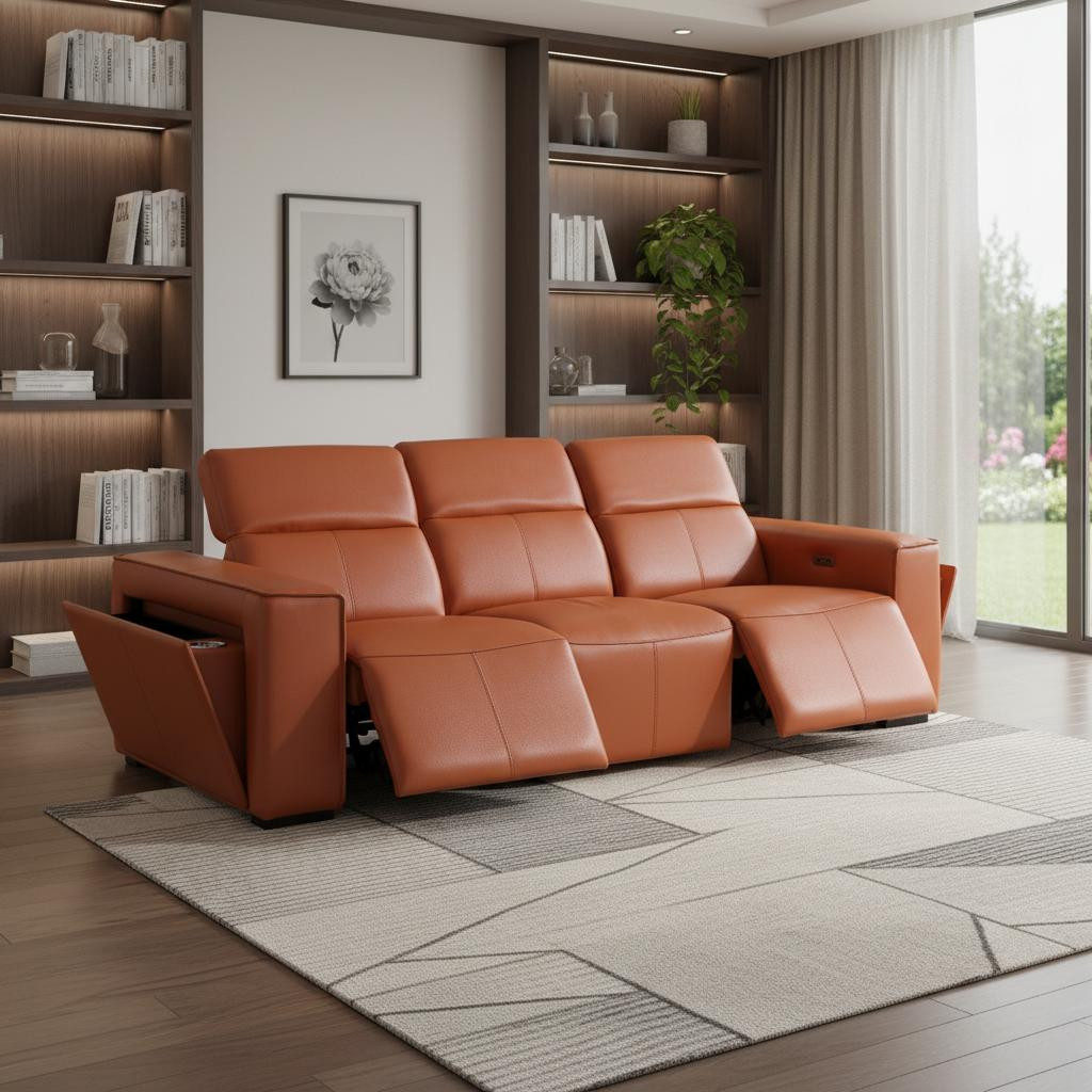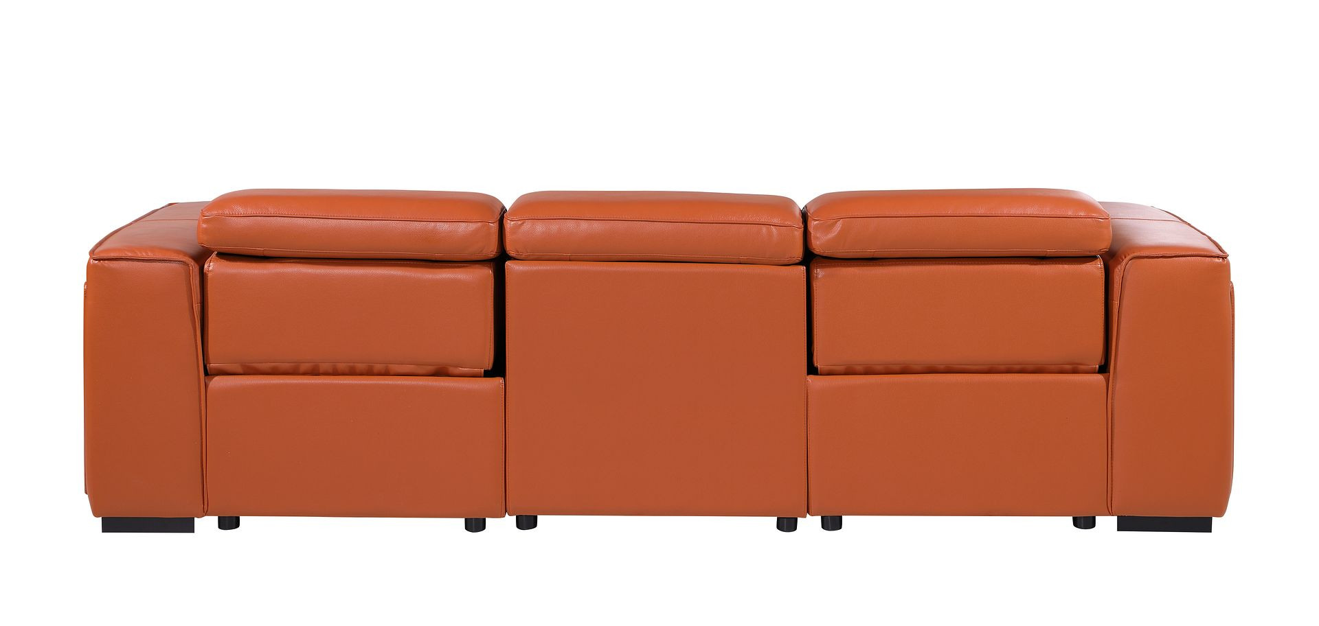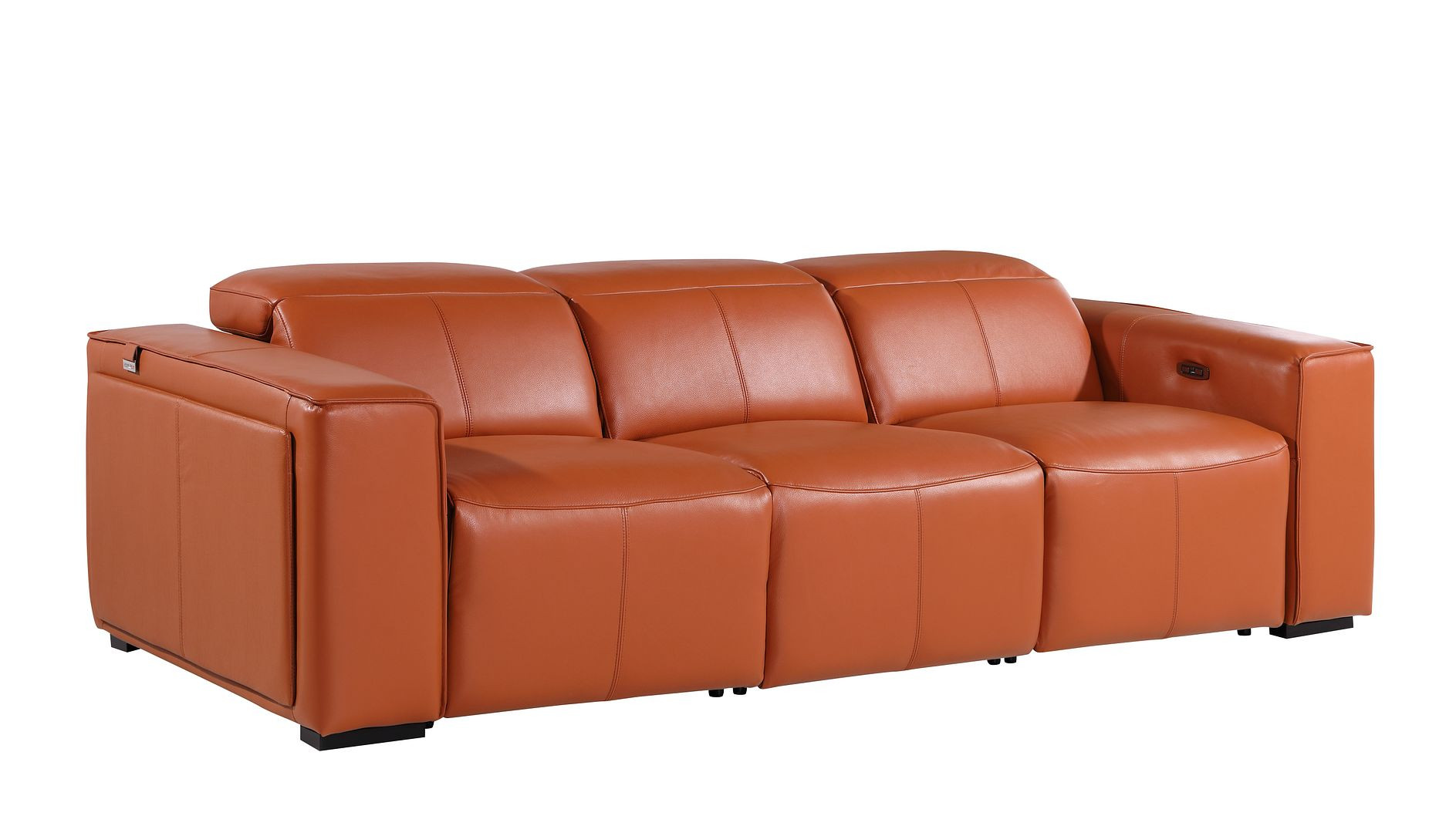 Made of the highest quality, supple leather, this 104-inch camel top grain leather reclining metal usb sofa will be the star of your space. The high grade premium leather used makes your lounging luxuriously comfortable and adds an elegant appeal to your space. Solid colors give you lots of decorative options and are easy to work into your decor scheme. Pocket spring construction gives this piece strong support and makes it comfortable to sit even for long periods of time. Square arms offer a comfy place to rest. Brown stainless steel legs effortlessly elevate the room and add a touch of contemporary design. A great showpiece for your room, this sofa is a must have. 31.00-inch h x 104.00-inch w x 43.00-inch d.