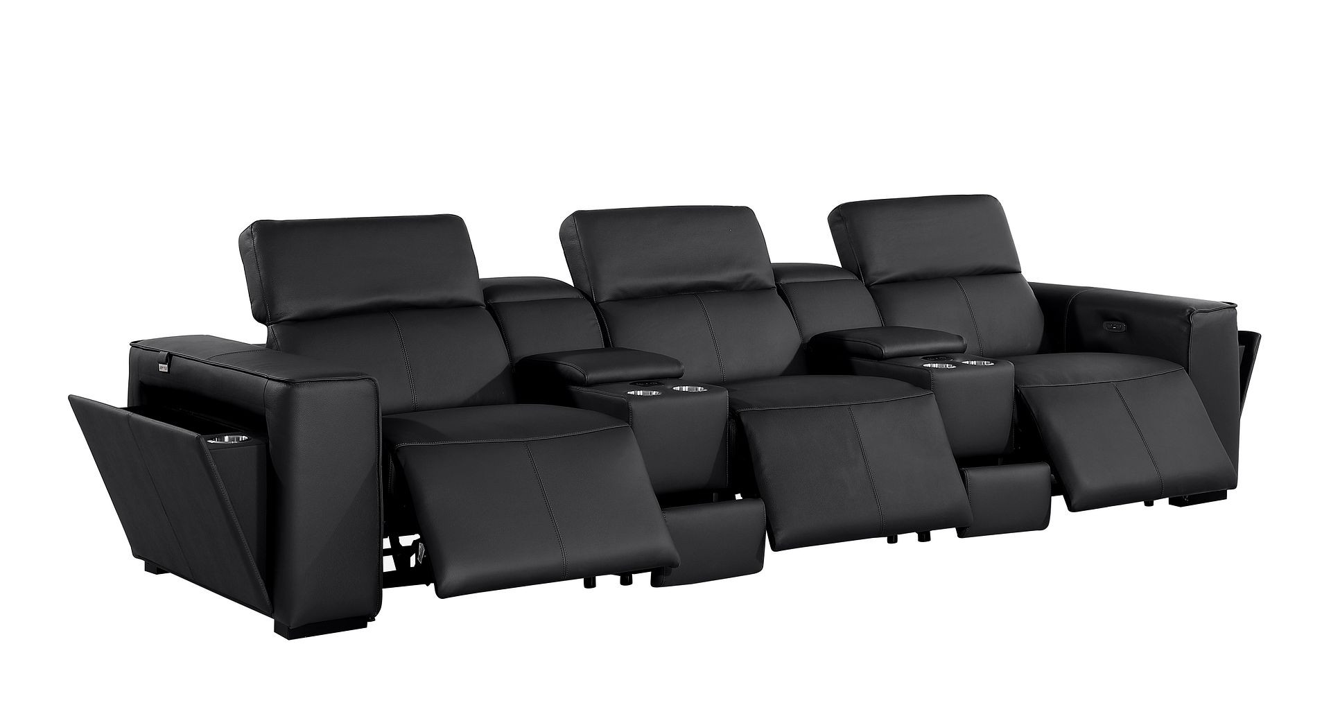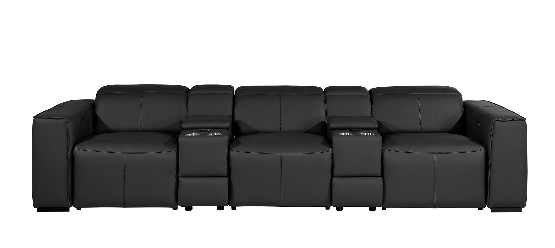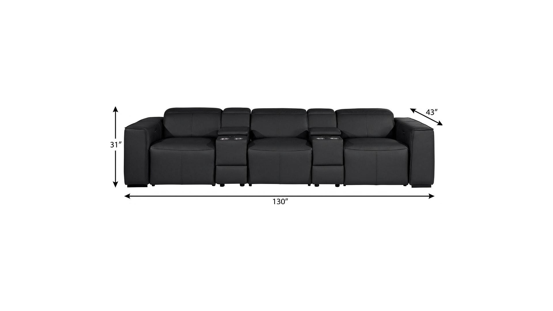 Superior construction from fabulously soft and high grade leather gives this 130-inch black top grain leather reclining metal usb sofa a leg up on the competition. The premium leather used makes your lounging luxuriously comfortable and adds an elegant appeal to your space. Solid colors give you lots of decorative options and are easy to work into your decor scheme. Pocket spring construction gives this piece strong support and makes it comfortable to sit even for long periods of time. Square arms offer a comfy place to rest. Brown stainless steel legs effortlessly elevate the room and add a touch of contemporary design. A great showpiece for your room, this sofa is a must have. 31.00-inch h x 130.00-inch w x 43.00-inch d.