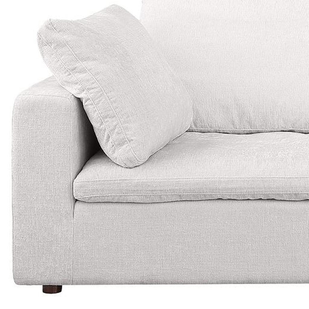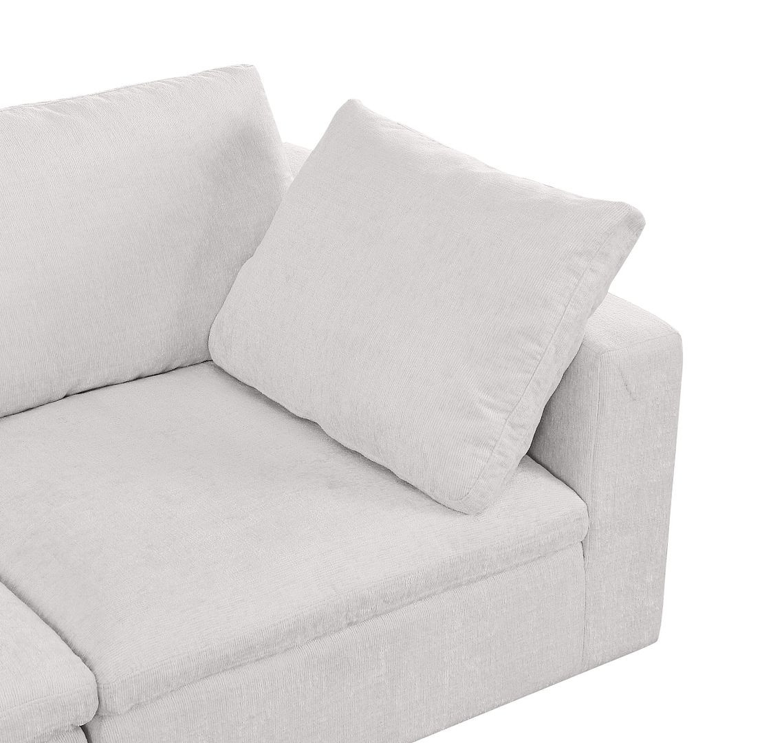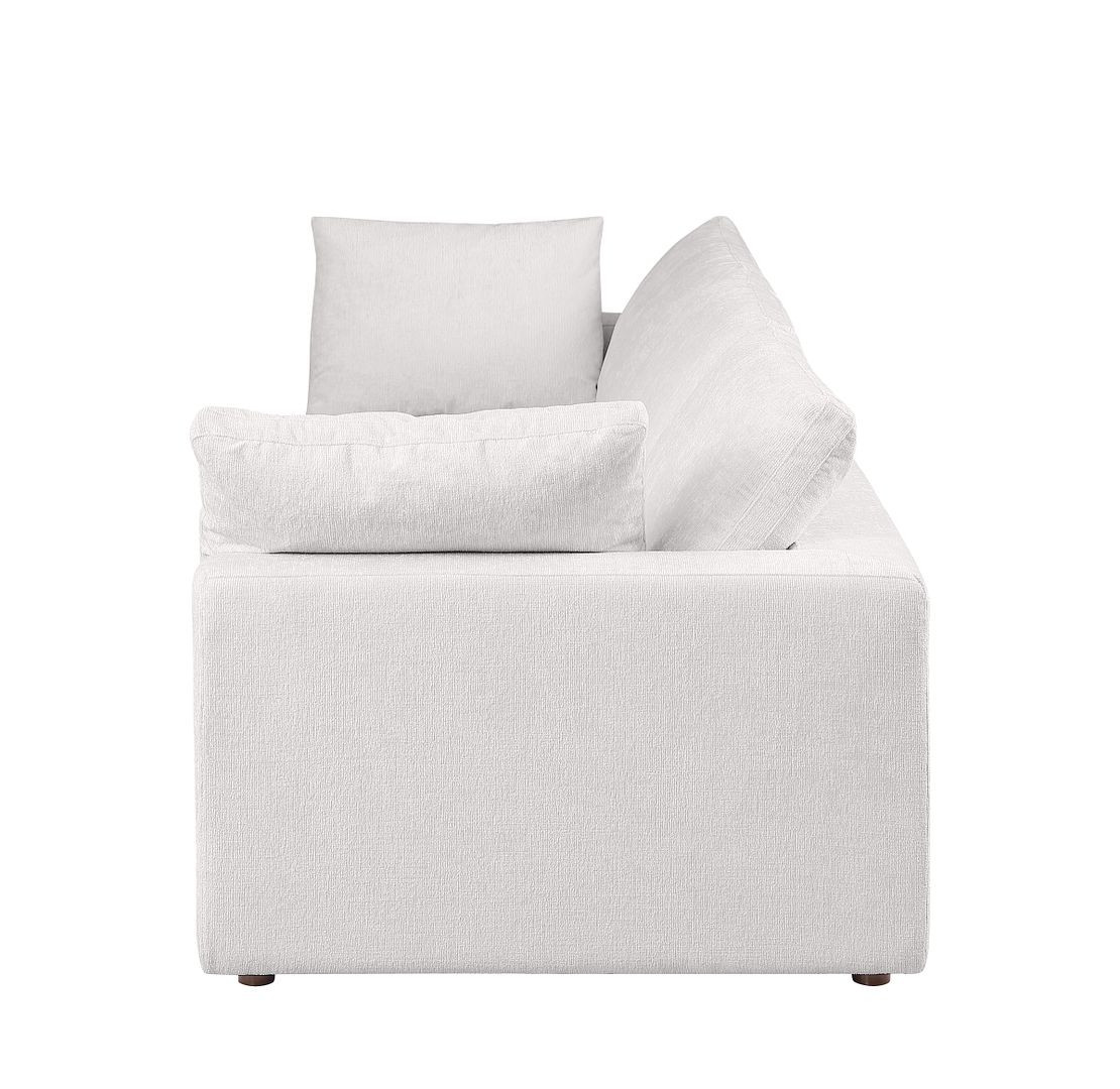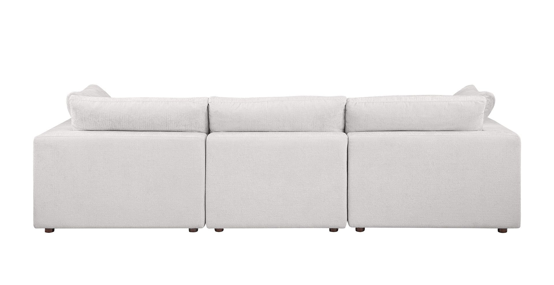 Designed for comfort and good looks, this 122-inch pearl fabric reclining sofa is a great option to anchor your space. Solid colors give you lots of decorative options and are easy to work into your decor scheme. Pocket spring construction gives this piece strong support and makes it comfortable to sit even for long periods of time. Square arms offer a comfy place to rest. Brown solid wood legs effortlessly elevate the room and add a touch of contemporary design. A great showpiece for your room, this sofa is a must have. 32.00-inch h x 121.50-inch w x 43.00-inch d.