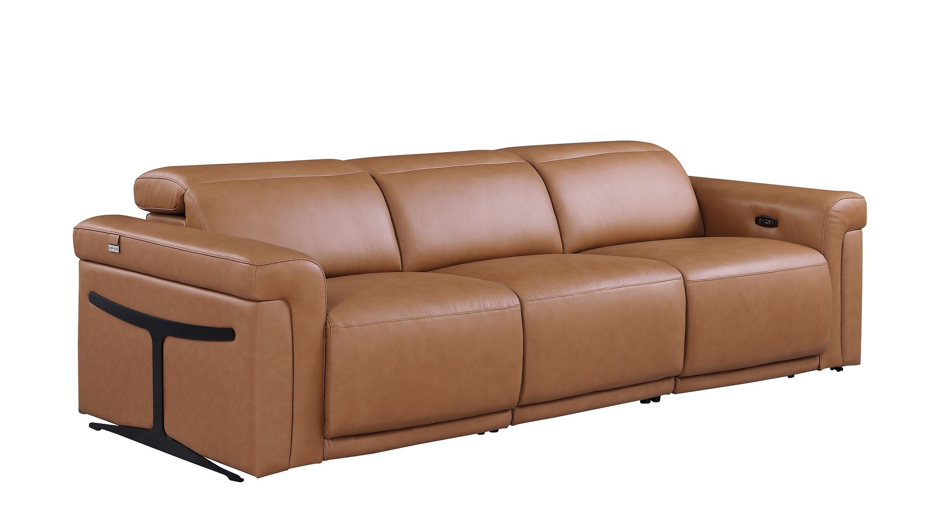 power reclining sofa, Italian leather reclining sofa, 3 seat power recliner sofa, top grain leather sofa with recliners, leather home theater sofa, sofa with power headrests, luxury leather reclining sofa, modern leather sofa, sofa with USB ports, jet black leg sofa, sofa with lumbar support, premium Italian leather sofa, contemporary reclining sofa, stainless steel frame sofa |