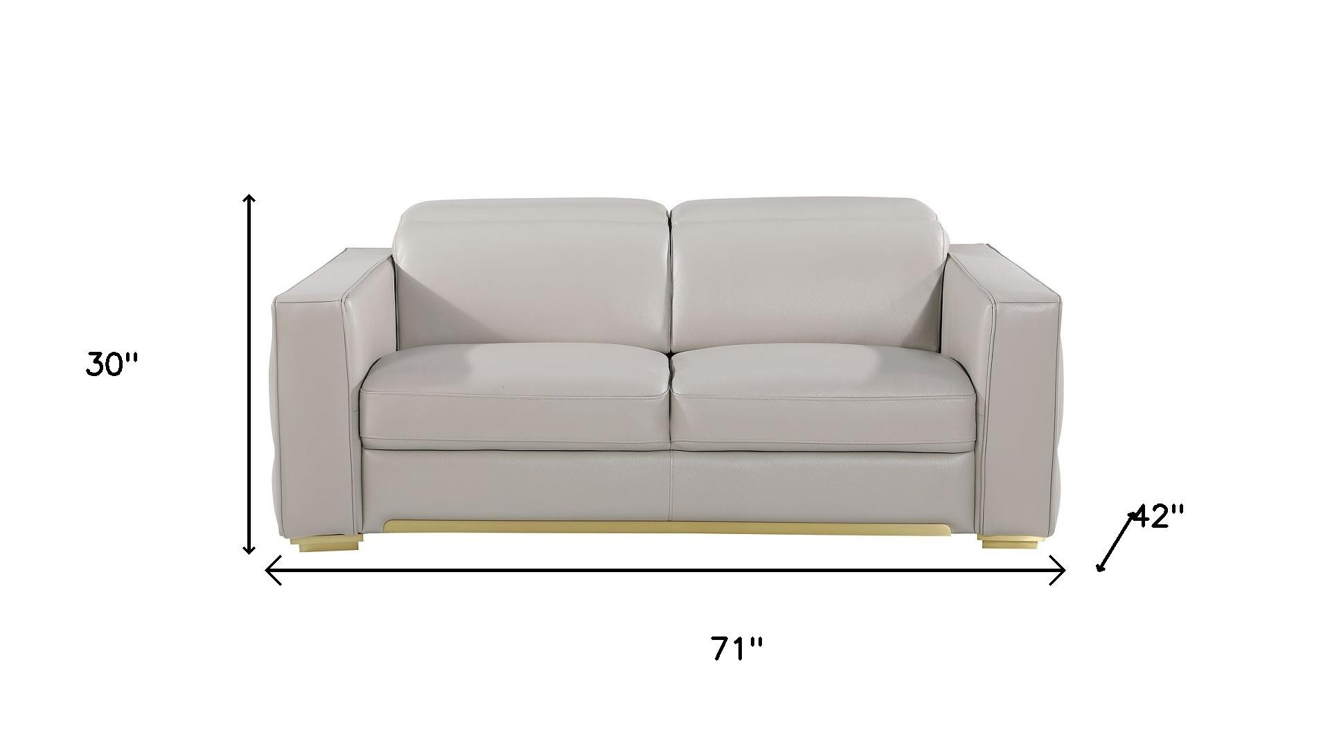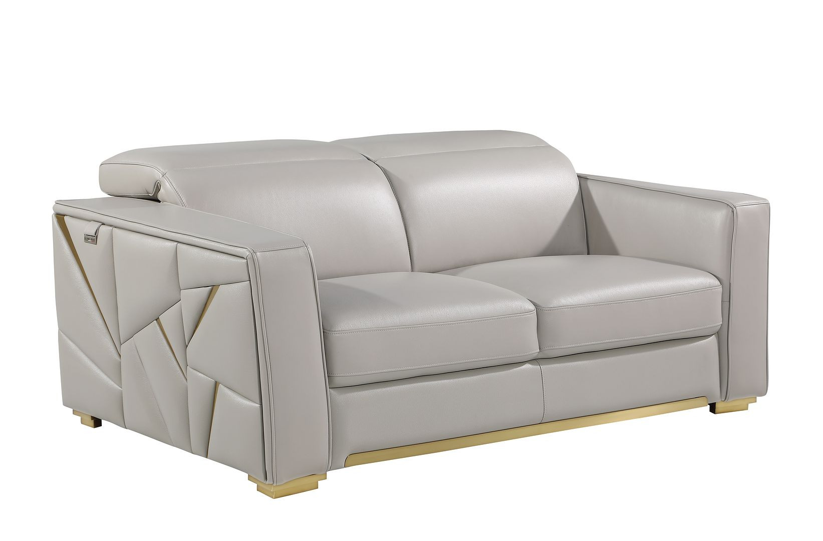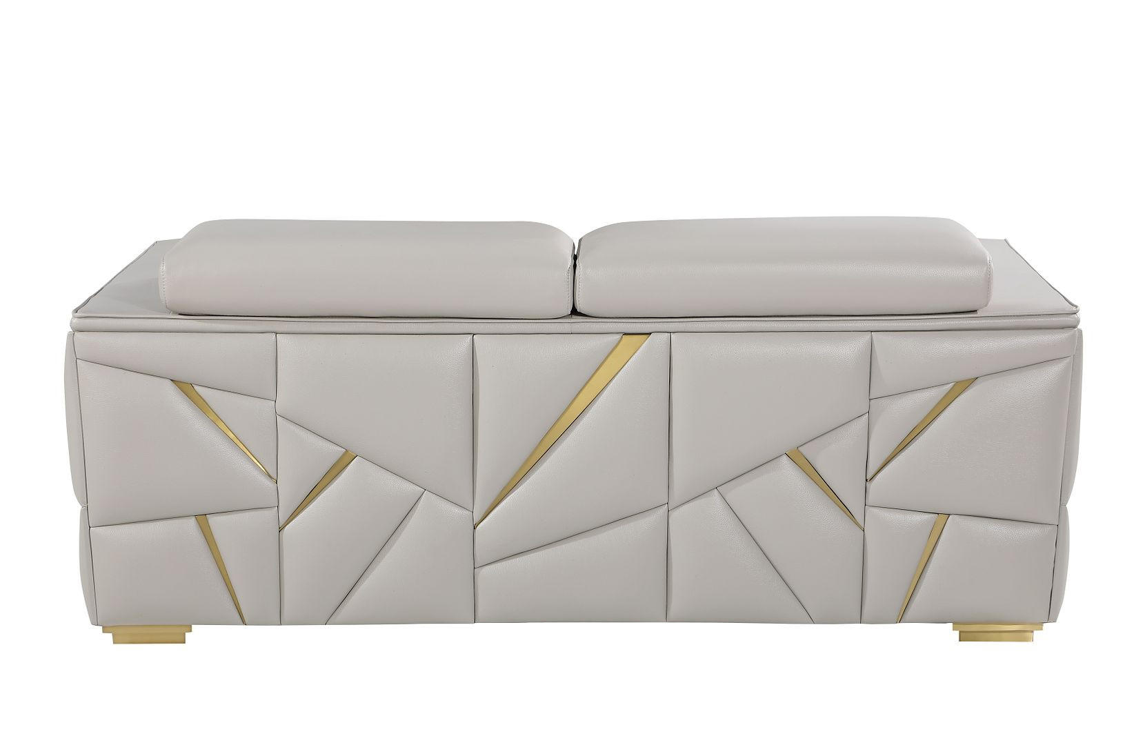 light gray italian leather loveseat, modern leather loveseat with gold accents, luxury top grain loveseat, contemporary italian leather furniture, small space italian loveseat, gold base loveseat, geometric stitched loveseat, modern neutral tone seating, light gray leather love seat, luxury home loveseat, adjustable headrest loveseat, elegant italian style loveseat, premium leather loveseat, durable hardwood frame loveseat, sleek gold leg loveseat, upscale modern furniture, italian design loveseat, comfortable modern loveseat, designer light gray loveseat |