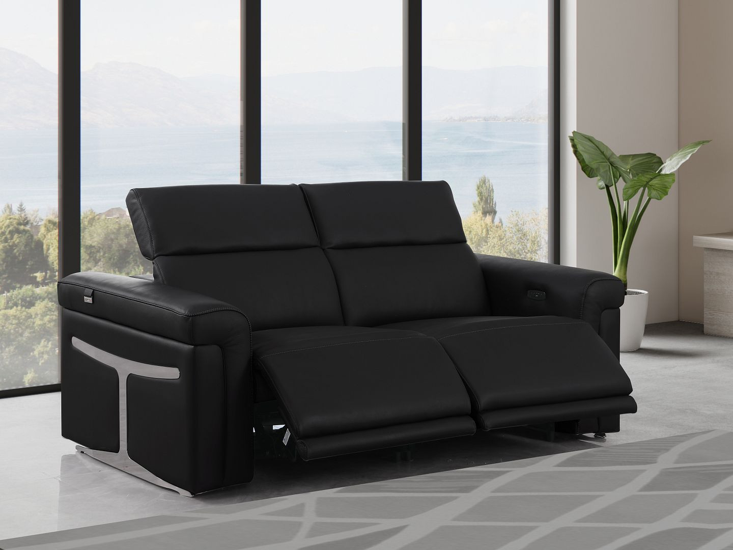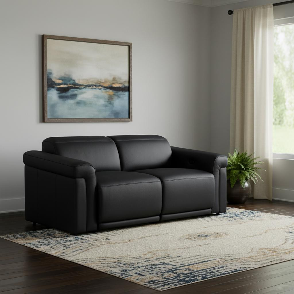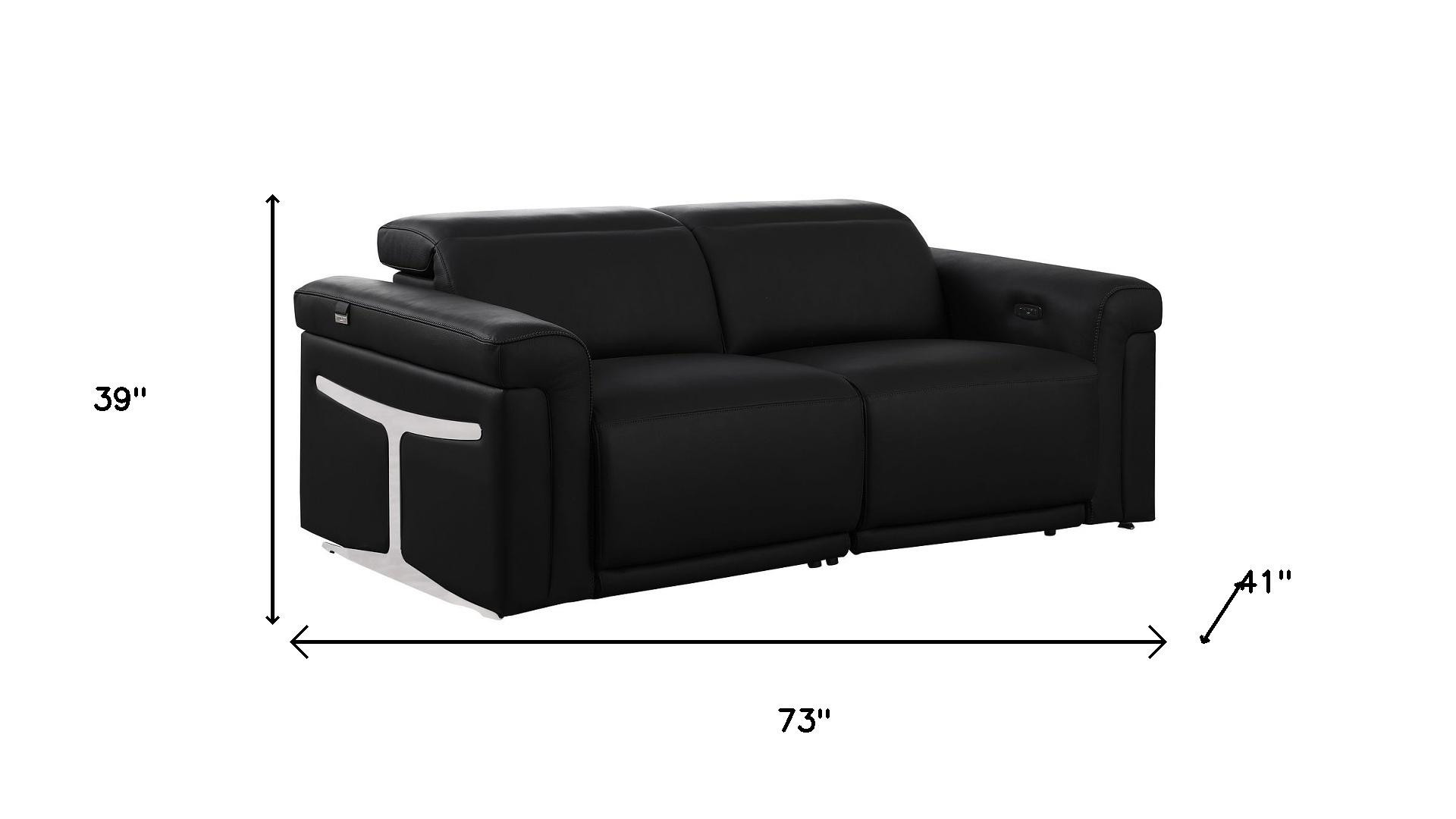 An interior designer's dream, this buttery soft high grade leather 73-inch black italian leather power reclining loveseat will bring just the right touch to your space. The high grade premium leather used makes your lounging luxuriously comfortable and adds an elegant appeal to your space. Rolled arms offer a comfy place to rest and give this piece some interest and shape. Black metal legs effortlessly elevate the room and add a touch of contemporary design. A great showpiece for your room, this sofa is a must have. 39.00-inch h x 73.00-inch w x 41.00-inch d.