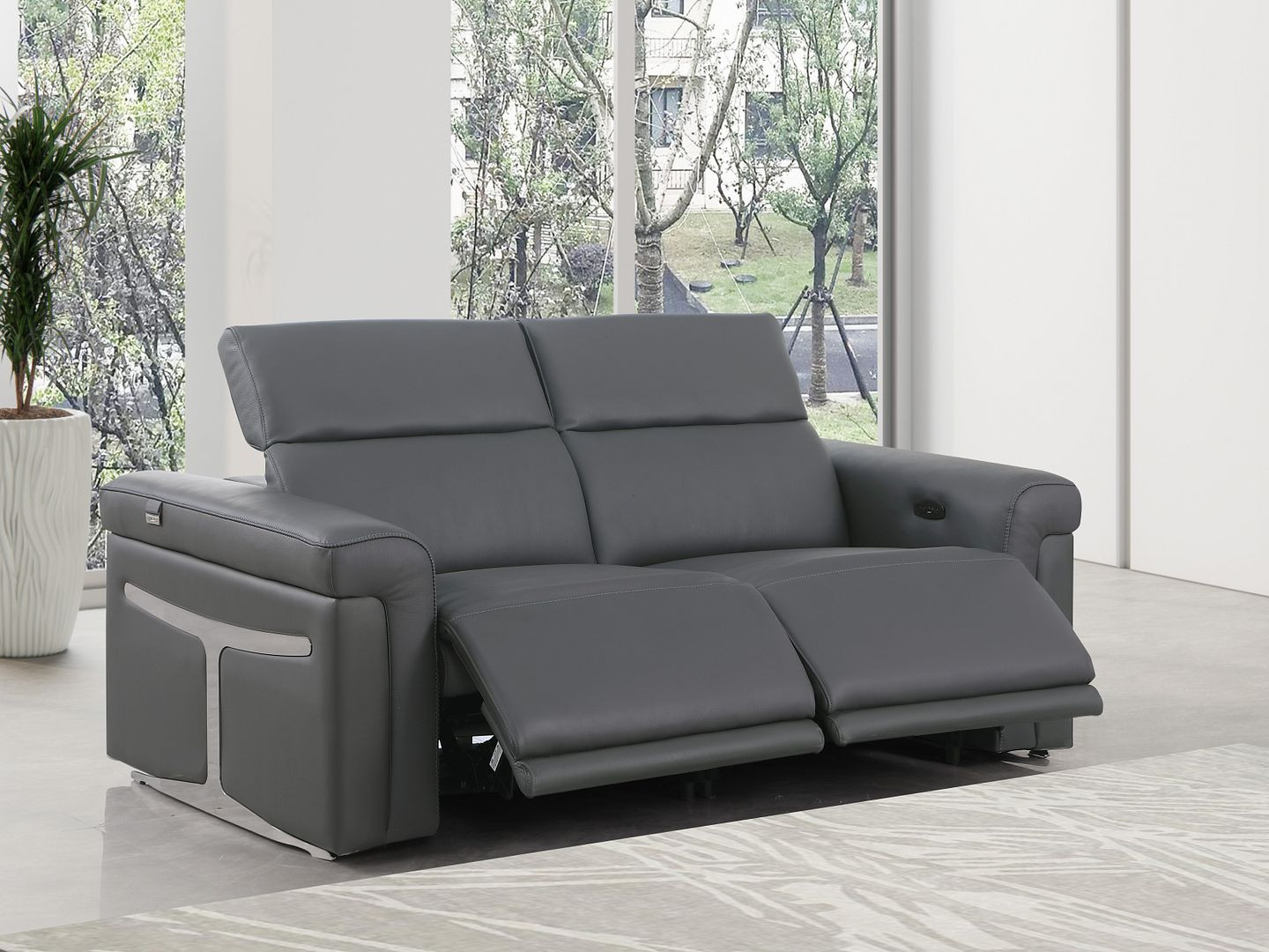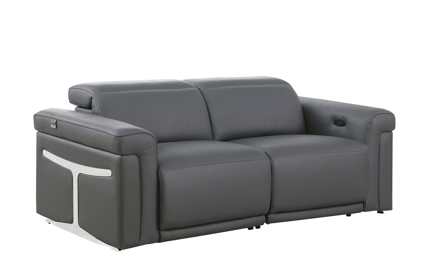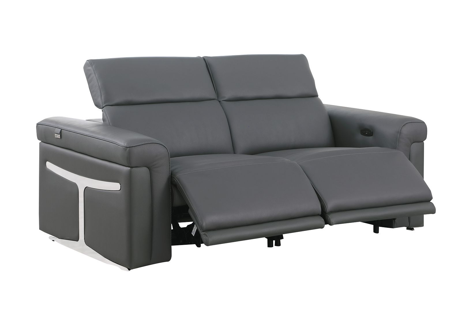 An interior designer's dream, this buttery soft high grade leather 73-inch dark gray and black italian leather power reclining loveseat will bring just the right touch to your space. The high grade premium leather used makes your lounging luxuriously comfortable and adds an elegant appeal to your space. Rolled arms offer a comfy place to rest and give this piece some interest and shape. Black metal legs effortlessly elevate the room and add a touch of contemporary design. A great showpiece for your room, this sofa is a must have. 39.00-inch h x 73.00-inch w x 41.00-inch d.