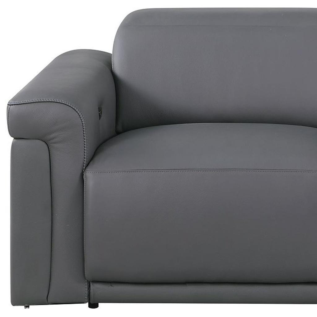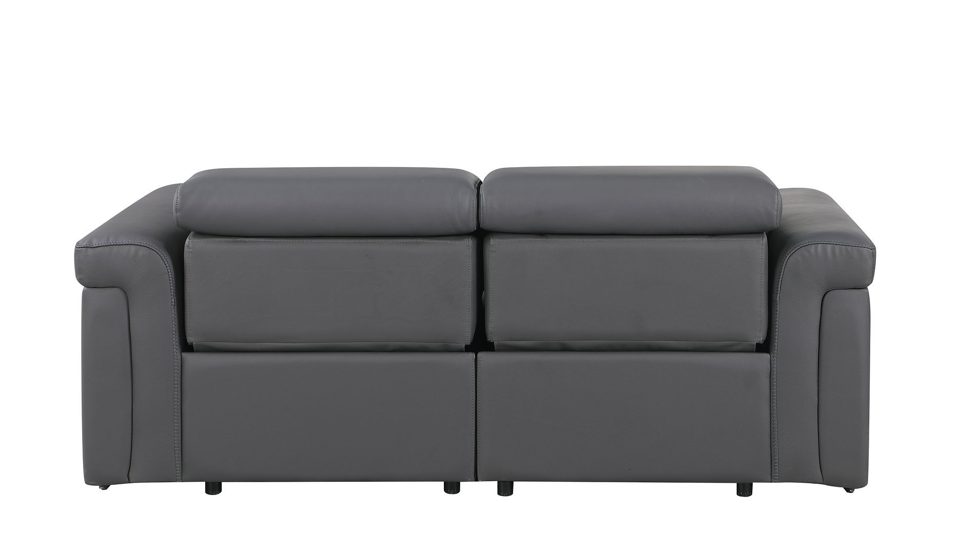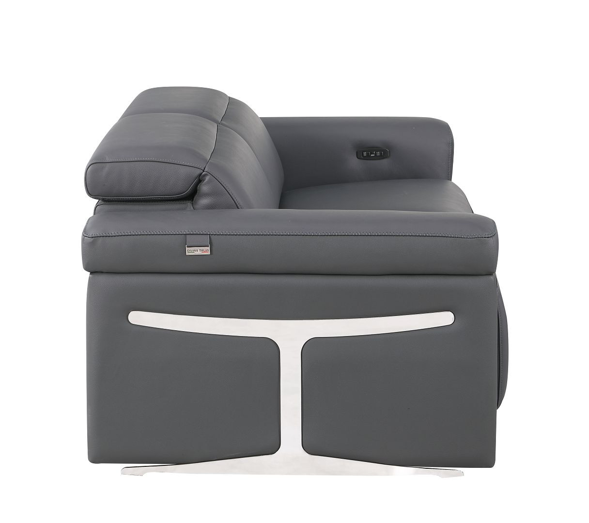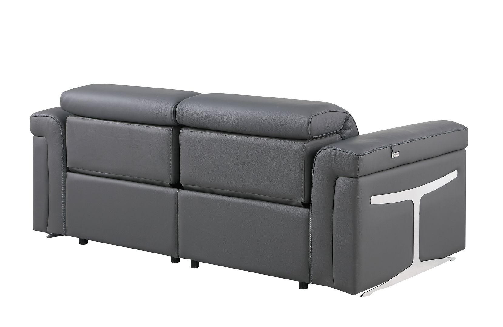An interior designer's dream, this buttery soft high grade leather 73-inch dark gray and black italian leather power reclining loveseat will bring just the right touch to your space. The high grade premium leather used makes your lounging luxuriously comfortable and adds an elegant appeal to your space. Rolled arms offer a comfy place to rest and give this piece some interest and shape. Black metal legs effortlessly elevate the room and add a touch of contemporary design. A great showpiece for your room, this sofa is a must have. 39.00-inch h x 73.00-inch w x 41.00-inch d.