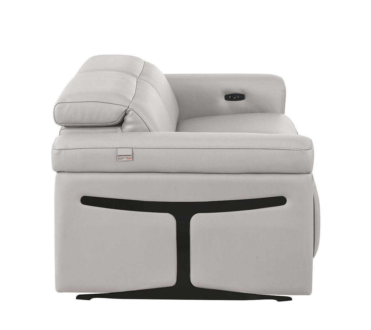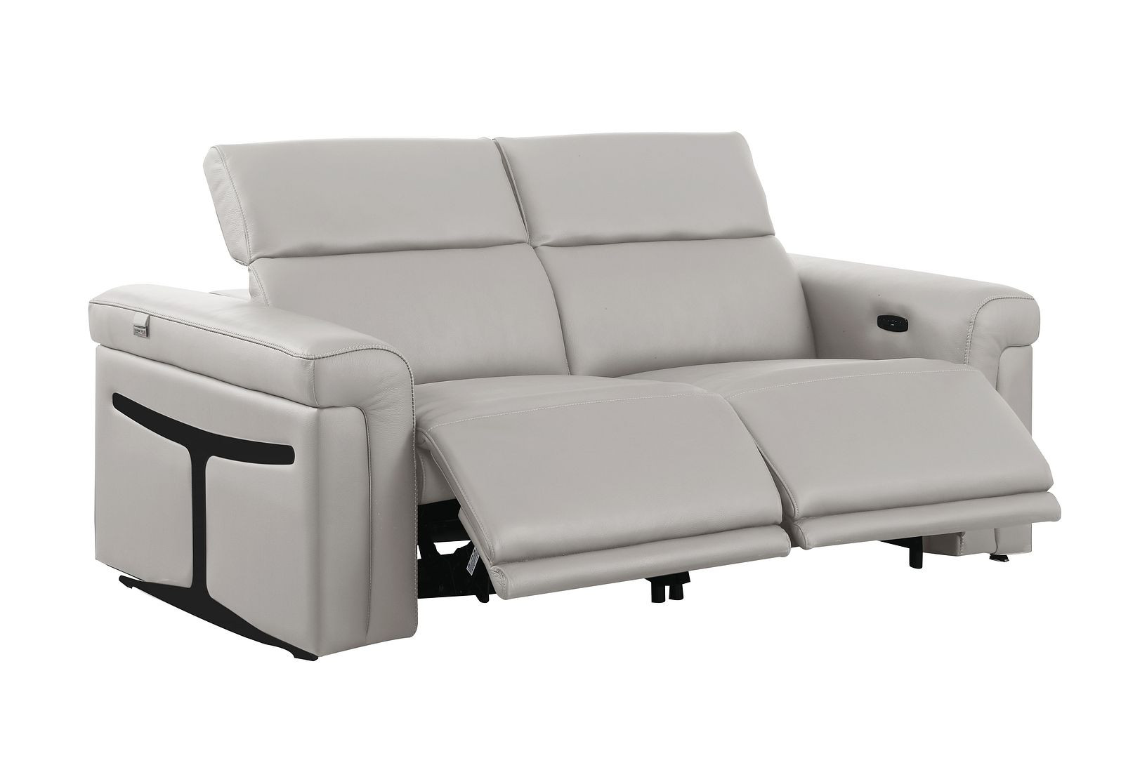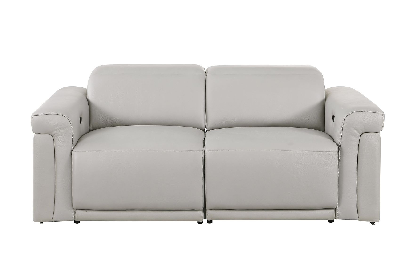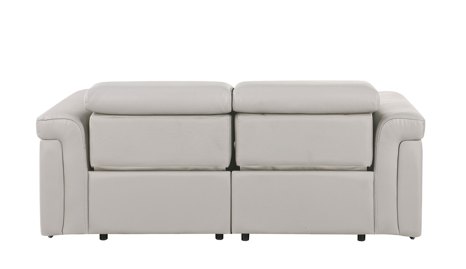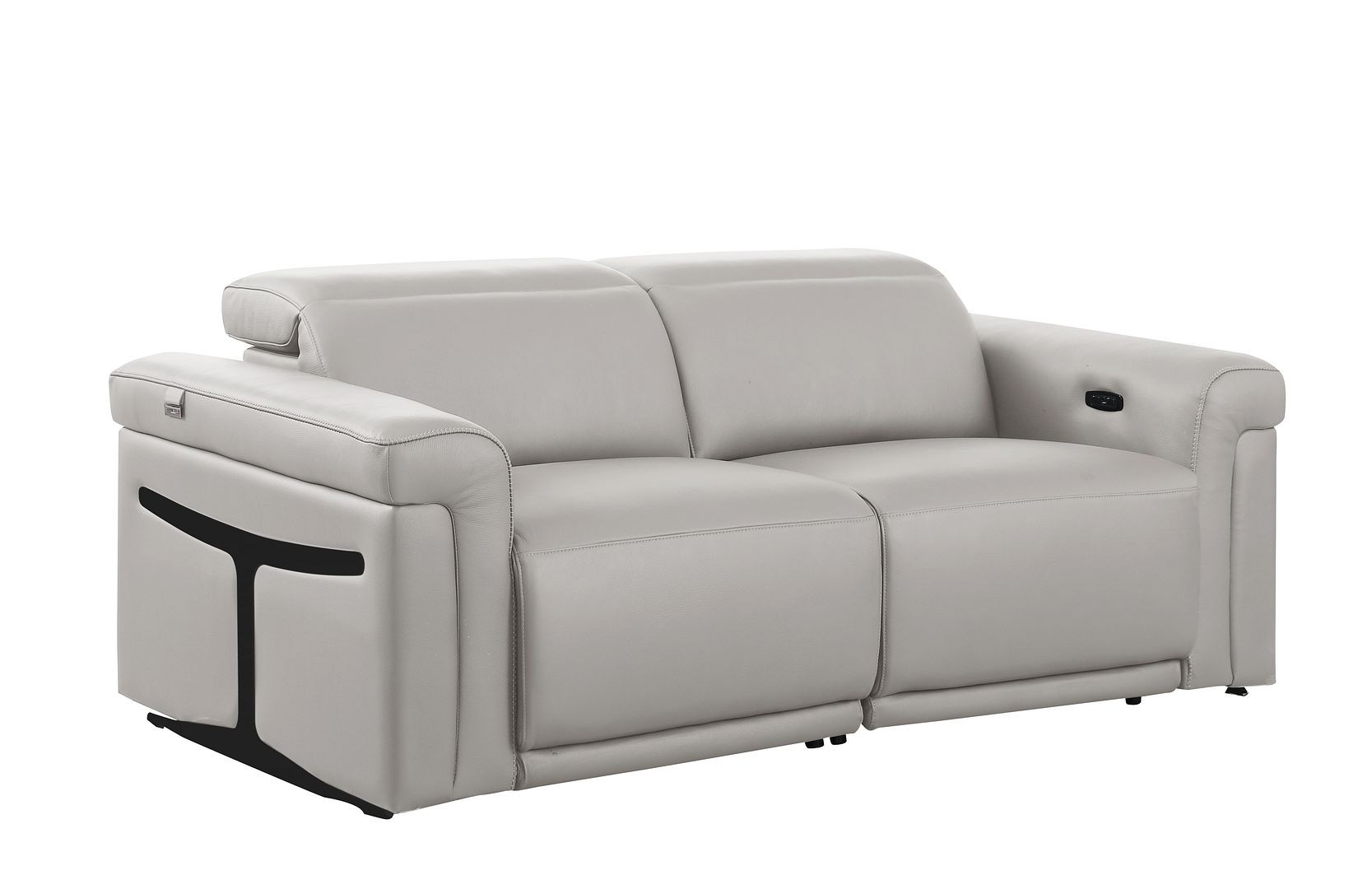 Made of top quality, supple leather, this 73-inch light gray and black italian leather power reclining loveseat will be the star of your space. The high grade premium leather used makes your lounging luxuriously comfortable and adds an elegant appeal to your space. Rolled arms offer a comfy place to rest and give this piece some interest and shape. Black metal legs effortlessly elevate the room and add a touch of contemporary design. A great showpiece for your room, this sofa is a must have. 39.00-inch h x 73.00-inch w x 41.00-inch d.