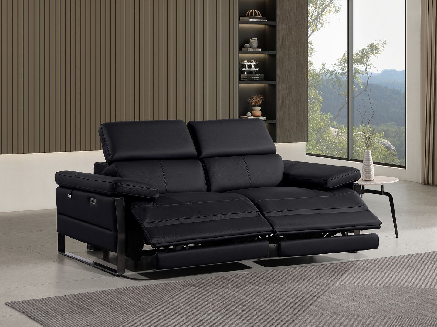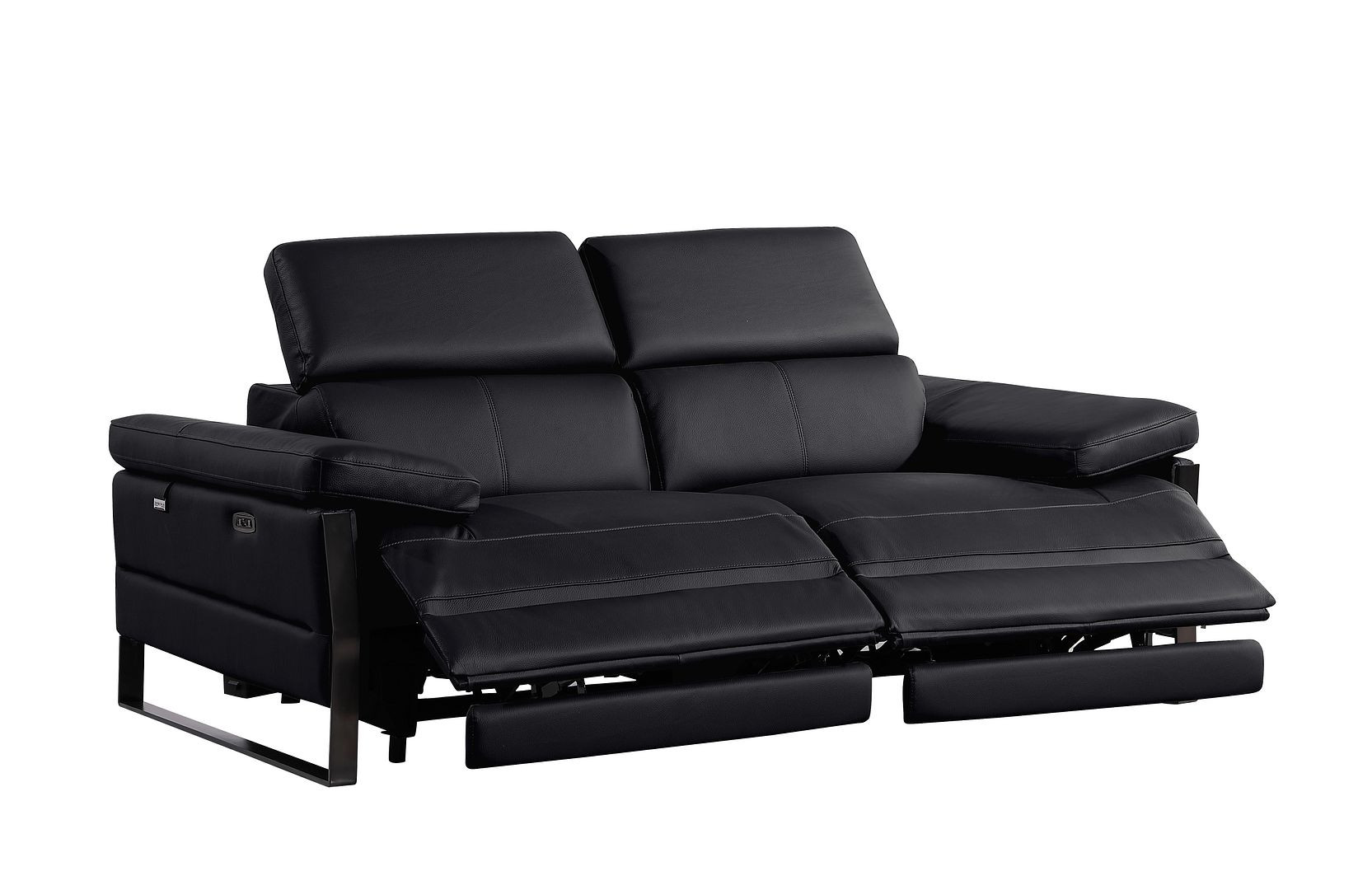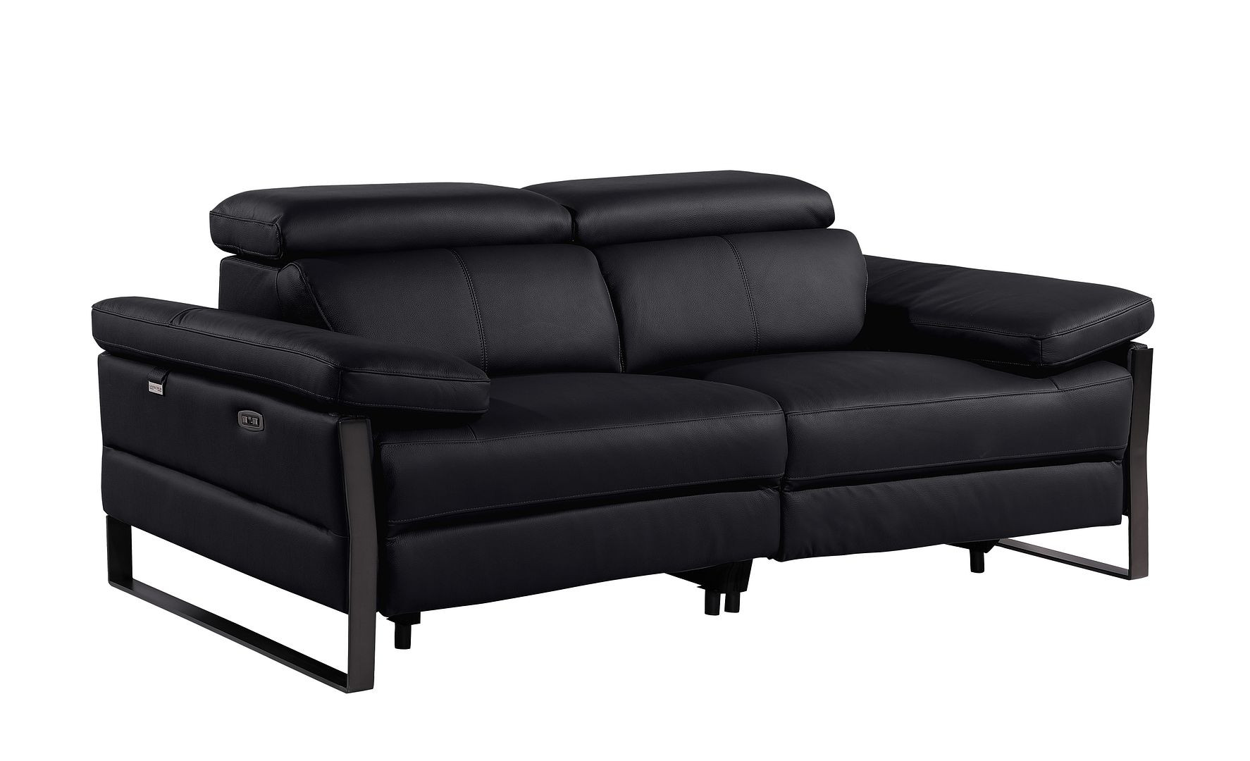 Made of top quality, supple leather, this 77-inch black italian leather power reclining loveseat will be the star of your space. The high grade premium leather used makes your lounging luxuriously comfortable and adds an elegant appeal to your space. Rolled arms offer a comfy place to rest and give this piece some interest and shape. Black metal legs effortlessly elevate the room and add a touch of contemporary design. A great showpiece for your room, this sofa is a must have. 31.00-inch h x 77.00-inch w x 43.00-inch d.