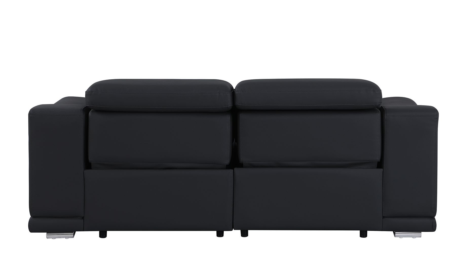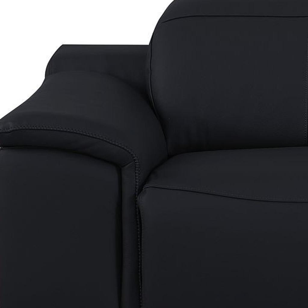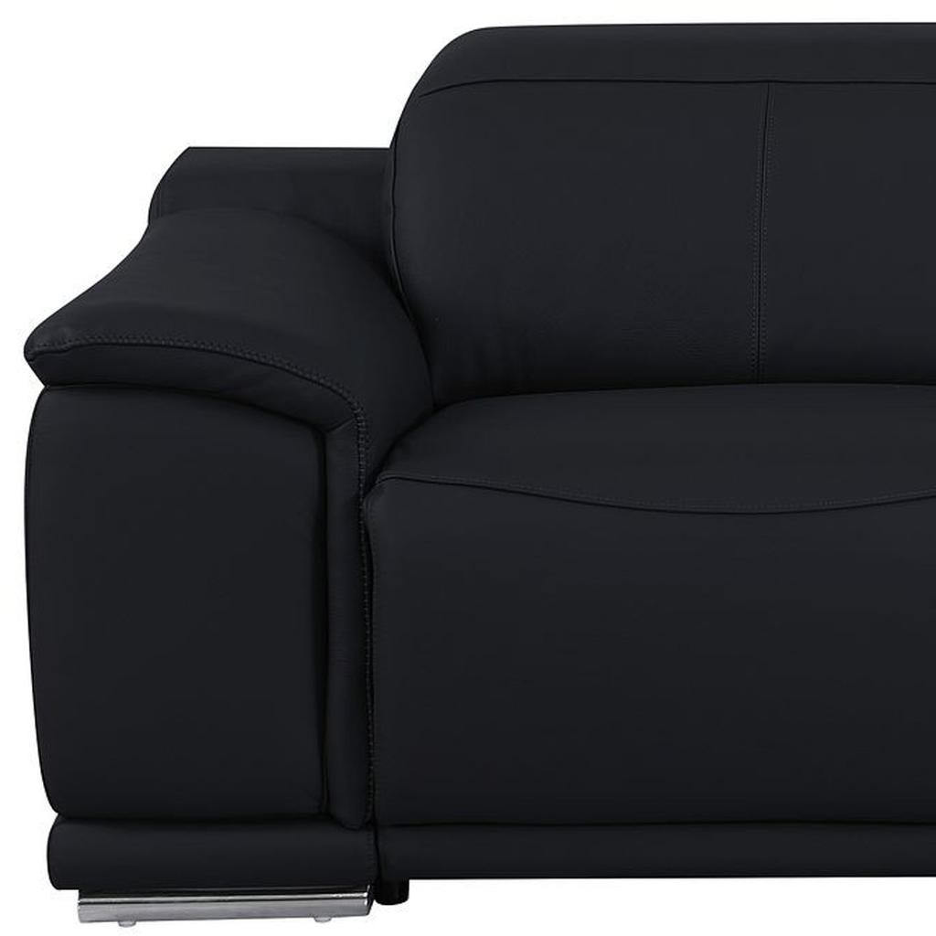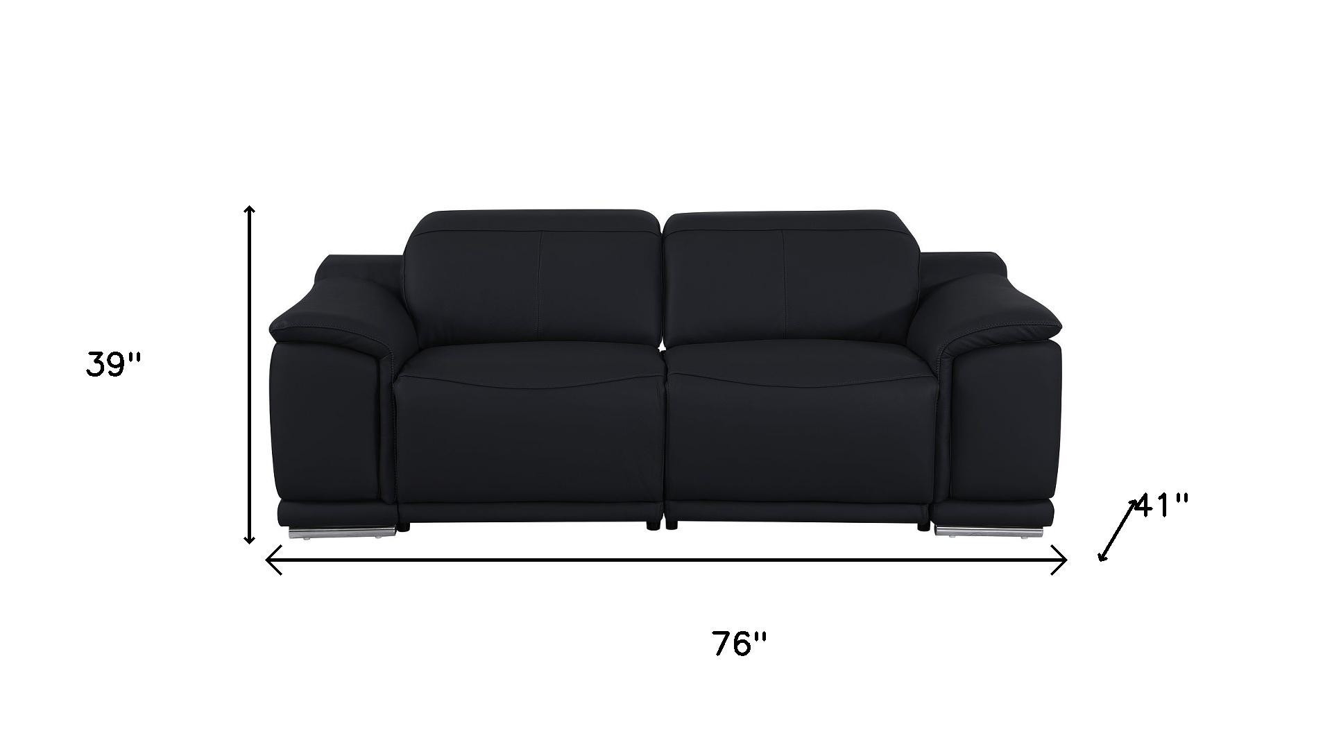 An interior designer's dream, this buttery soft high grade leather 76-inch black and silver italian leather power reclining loveseat will bring just the right touch to your space. The high grade premium leather used makes your lounging luxuriously comfortable and adds an elegant appeal to your space. Rolled arms offer a comfy place to rest and give this piece some interest and shape. Silver metal legs effortlessly elevate the room and add a touch of contemporary design. A great showpiece for your room, this sofa is a must have. 39.00-inch h x 76.00-inch w x 41.00-inch d.