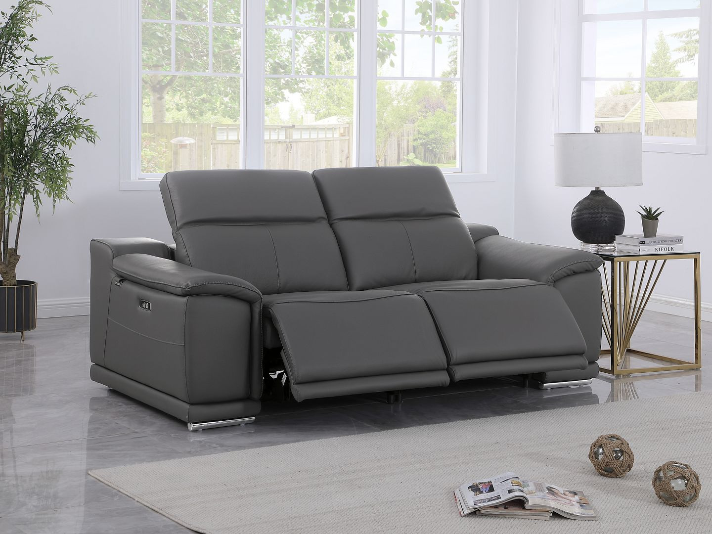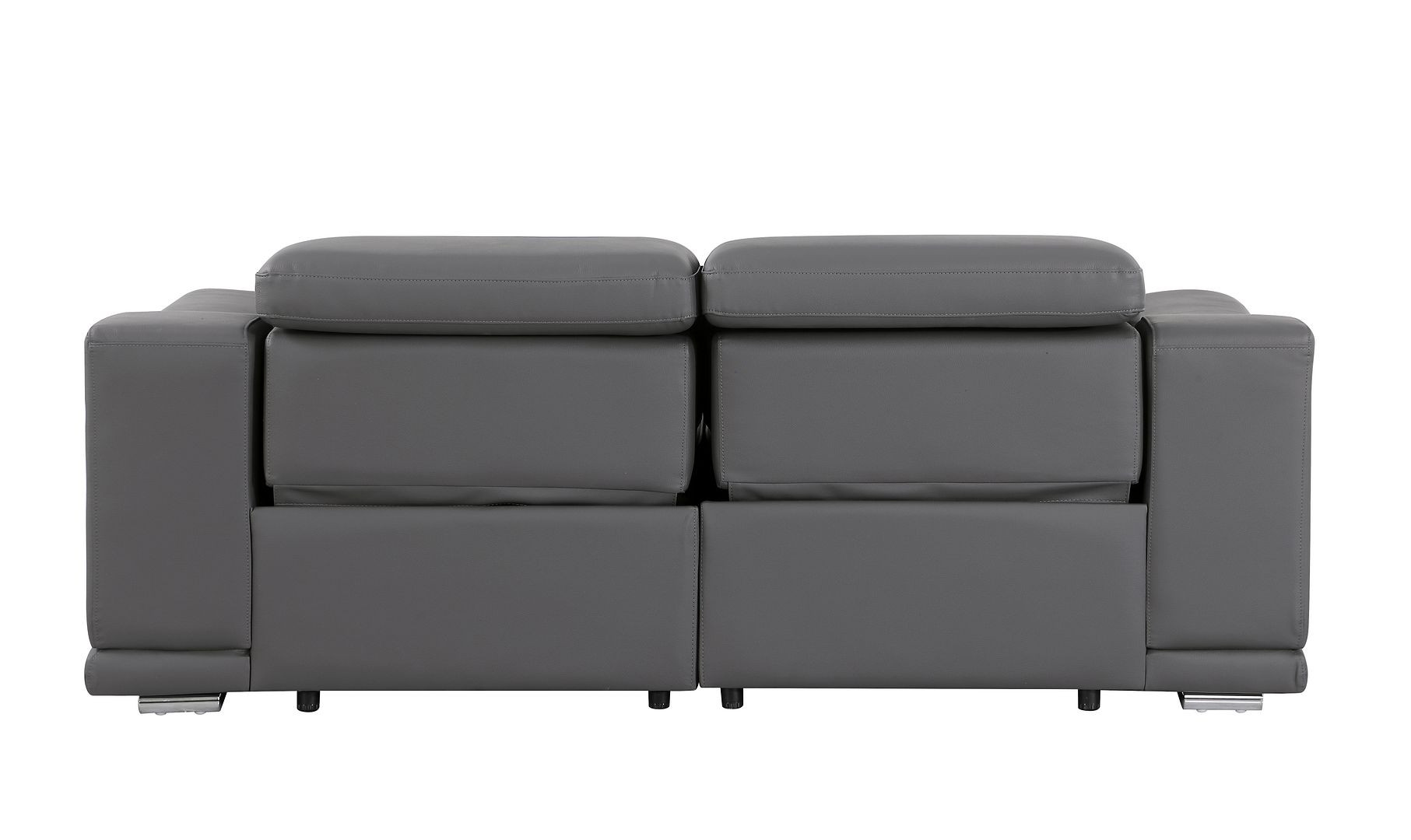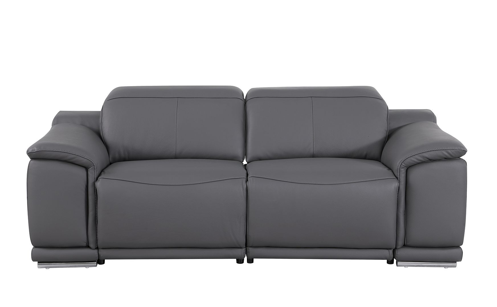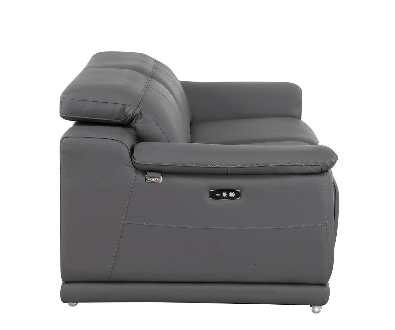 Superior construction from fabulously soft and high grade leather gives this 76-inch dark gray and silver italian leather power reclining loveseat a leg up on the competition. The high grade premium leather used makes your lounging luxuriously comfortable and adds an elegant appeal to your space. Rolled arms offer a comfy place to rest and give this piece some interest and shape. Silver metal legs effortlessly elevate the room and add a touch of contemporary design. A great showpiece for your room, this sofa is a must have. 39.00-inch h x 76.00-inch w x 41.00-inch d.