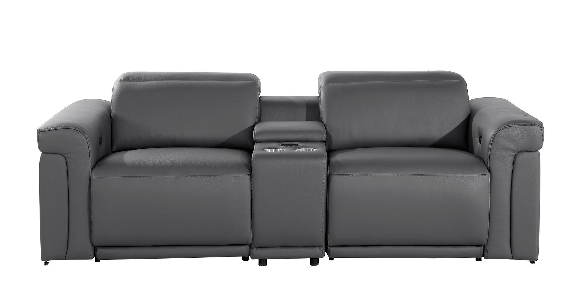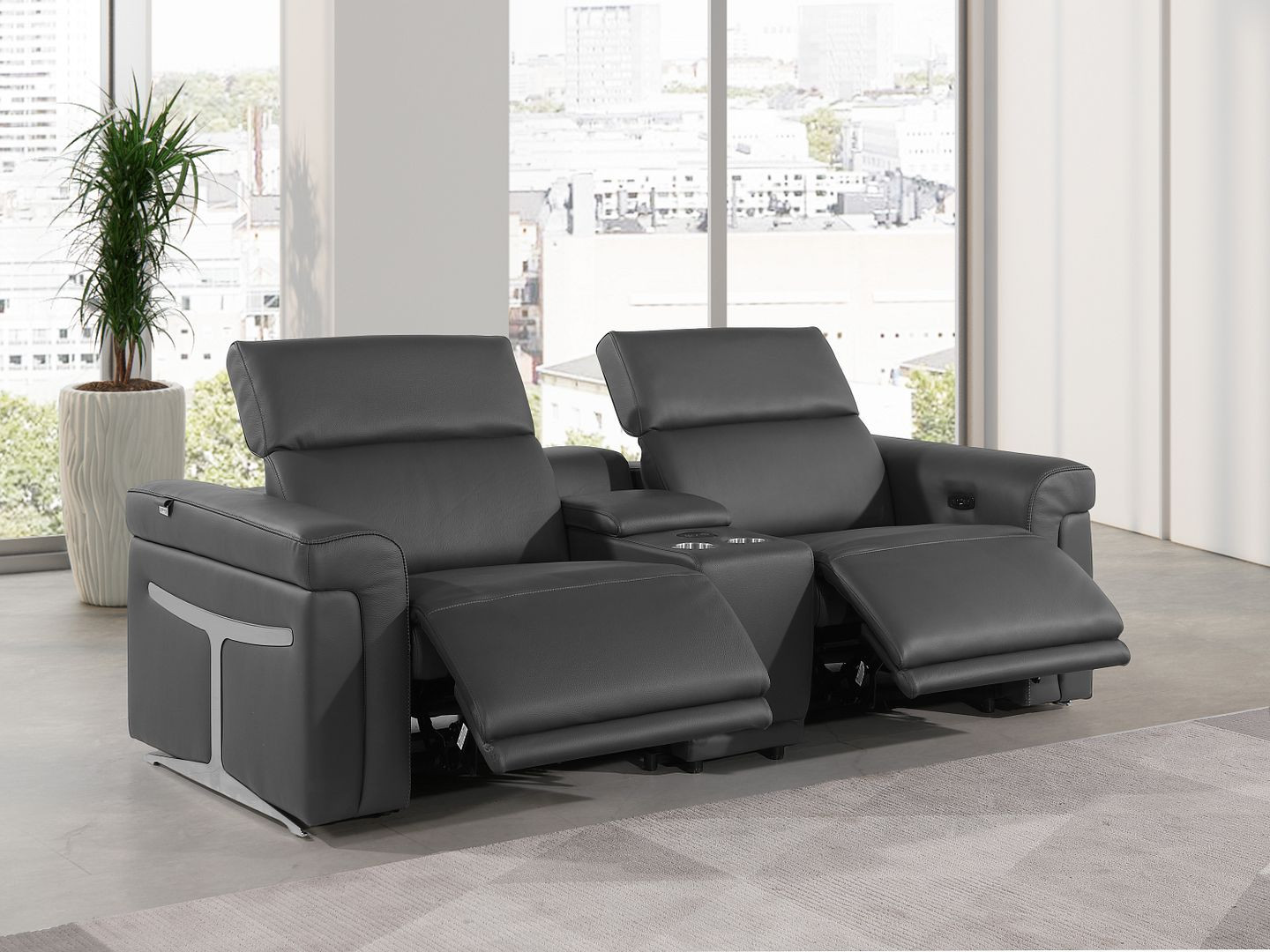 leather loveseat, Italian leather power loveseat, console loveseat with recliners, top grain leather loveseat, reclining loveseat with USB ports, loveseat with wireless charger, loveseat with console storage, luxury Italian leather loveseat, loveseat with power headrests, modern reclining loveseat, Chrome leg loveseat, leather loveseat with cupholders, home theater console loveseat, premium leather loveseat |