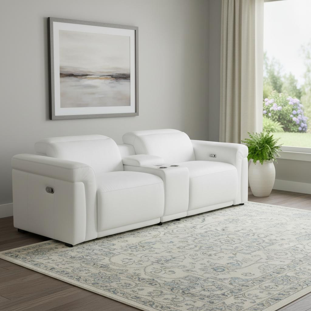 leather loveseat, Italian leather power loveseat, console loveseat with recliners, top grain leather loveseat, reclining loveseat with USB ports, loveseat with wireless charger, loveseat with console storage, luxury Italian leather loveseat, loveseat with power headrests, modern reclining loveseat, Chrome leg loveseat, leather loveseat with cupholders, home theater console loveseat, premium leather loveseat |