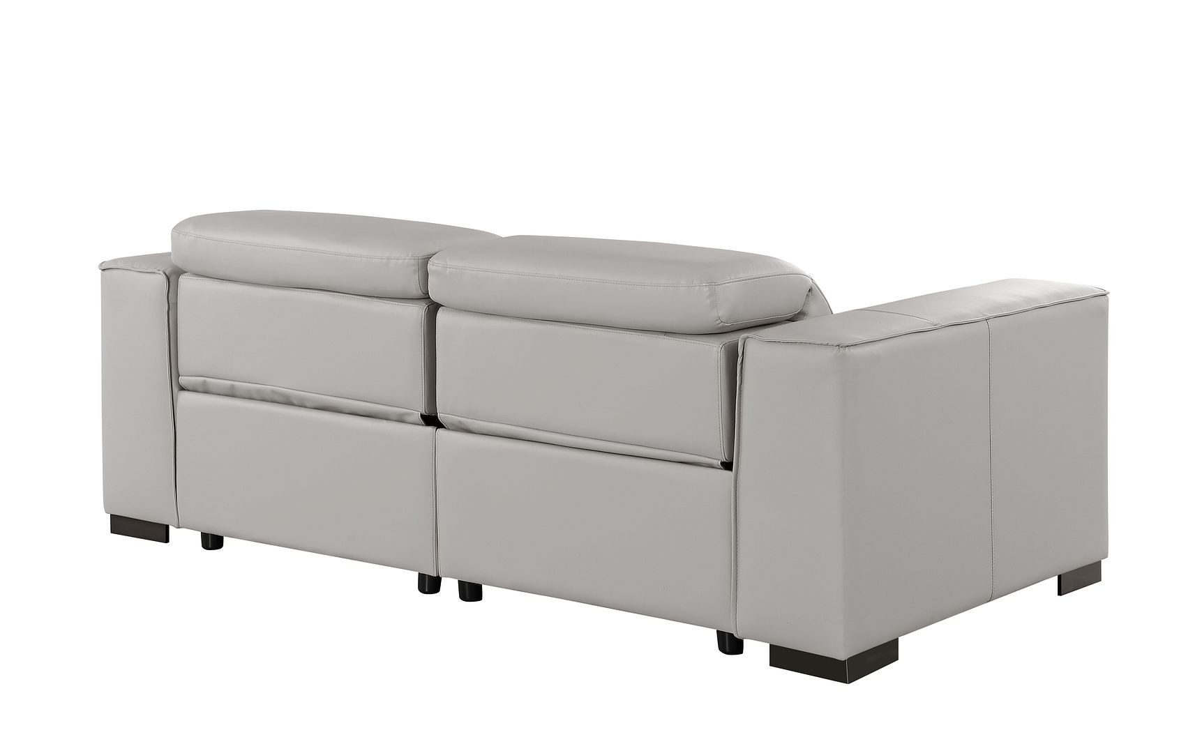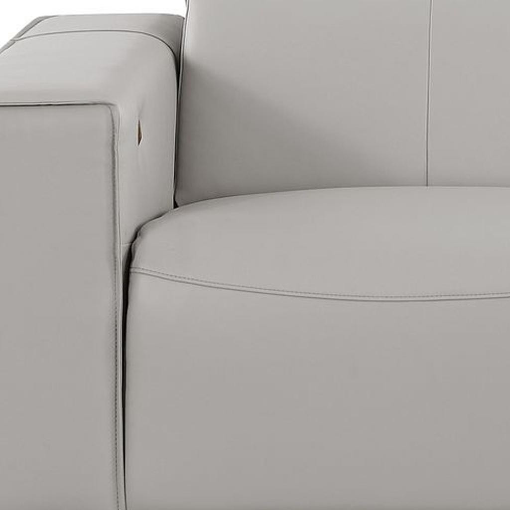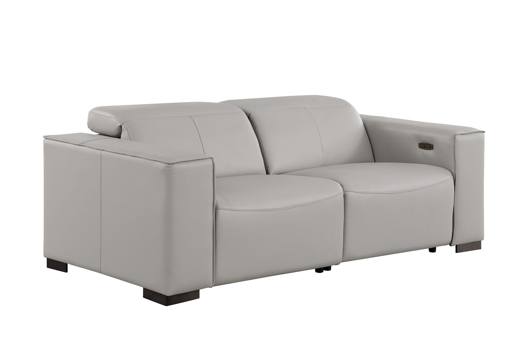 An interior designer's dream, this buttery soft high grade leather 80-inch light gray and brown leather power reclining loveseat will bring just the right touch to your space. The high grade premium leather used makes your lounging luxuriously comfortable and adds an elegant appeal to your space. More than just a loveseat, this piece reclines to bring you the ultimate in rest and relaxation. Square arms offer a comfy place to rest and give this piece some interest and shape. Brown solid wood legs effortlessly elevate the room and add a touch of contemporary design. A great showpiece for your room, this sofa is a must have. 41.00-inch h x 80.00-inch w x 42.50-inch d.