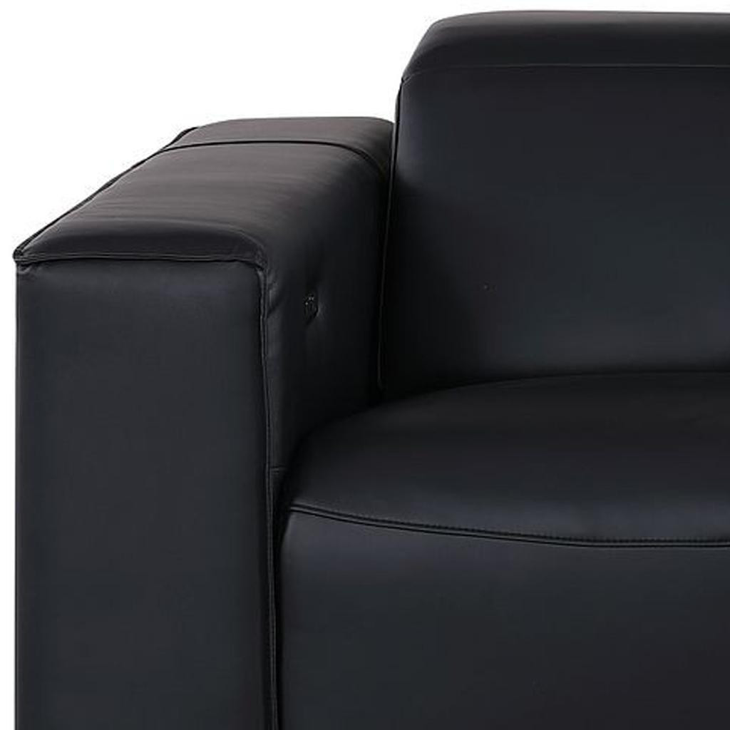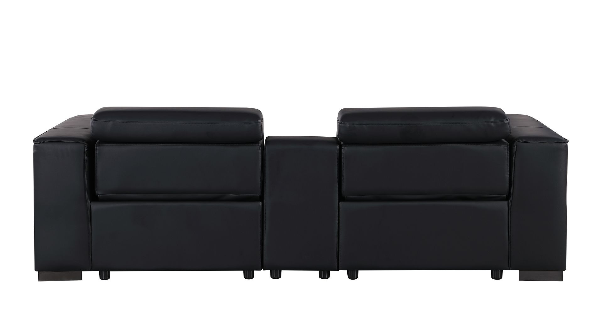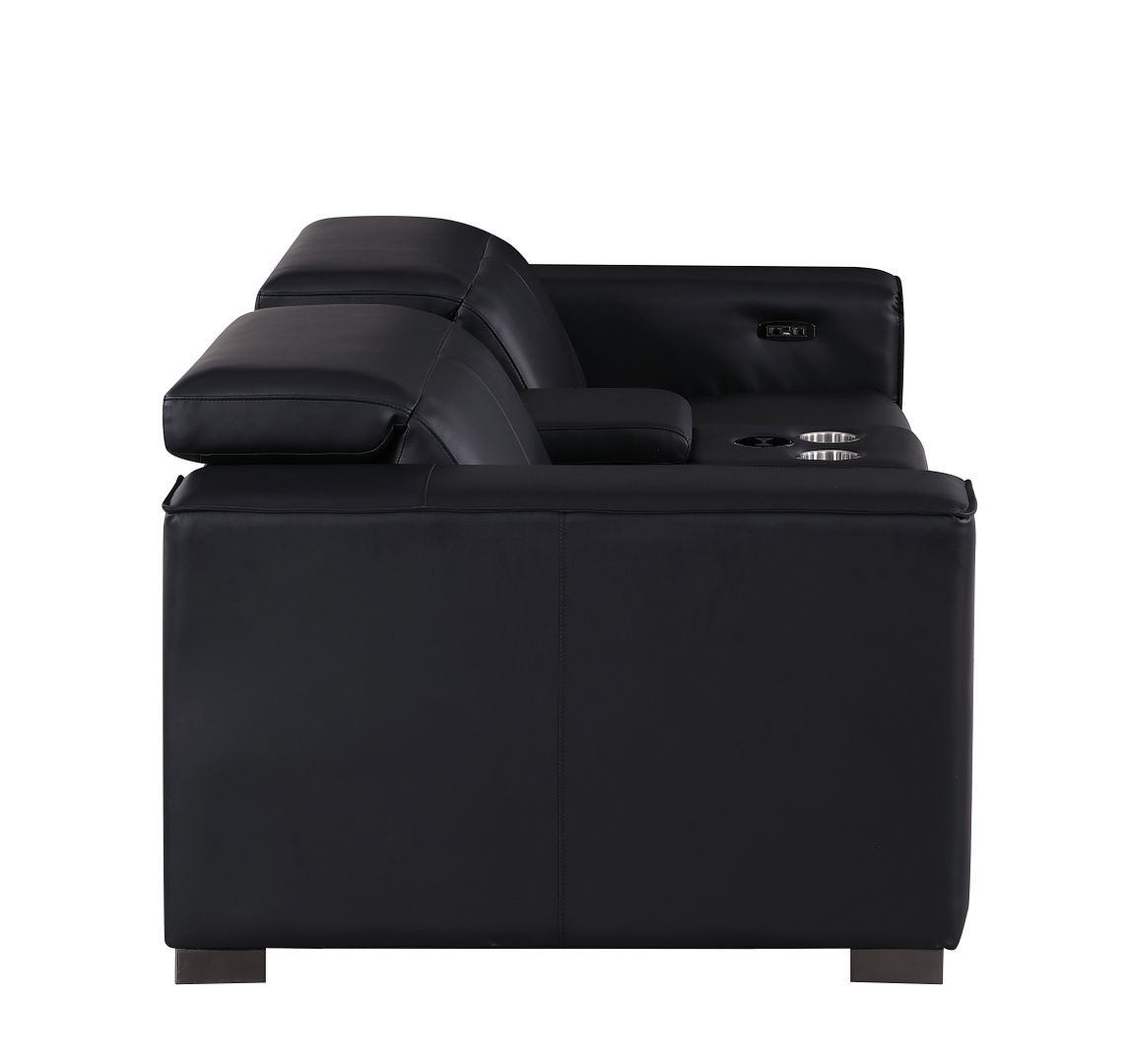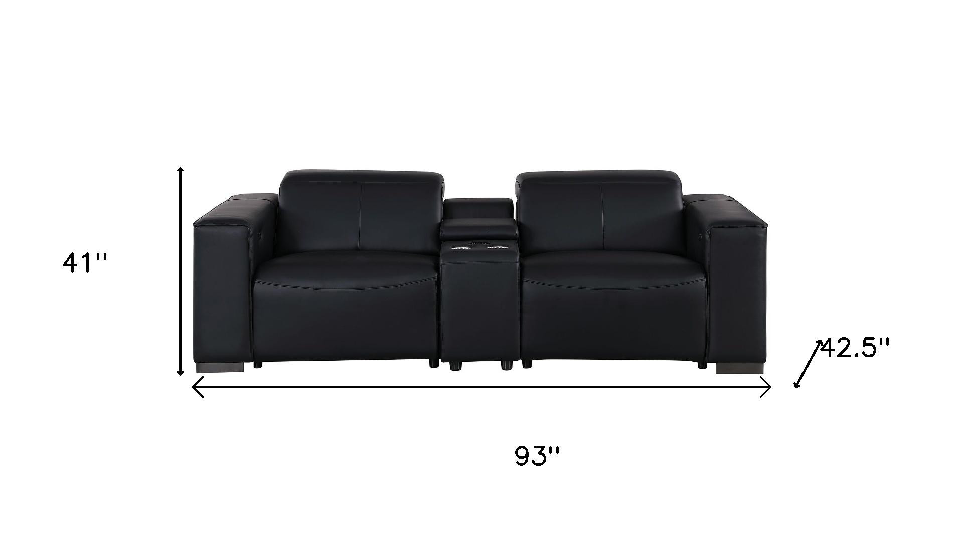 An interior designer's dream, this buttery soft high grade leather 93-inch black and brown leather power reclining loveseat with storage will bring just the right touch to your space. The high grade premium leather used makes your lounging luxuriously comfortable and adds an elegant appeal to your space. Square arms offer a comfy place to rest and give this piece some interest and shape. Brown solid wood legs effortlessly elevate the room and add a touch of contemporary design. A great showpiece for your room, this sofa is a must have. 41.00-inch h x 93.00-inch w x 42.50-inch d.