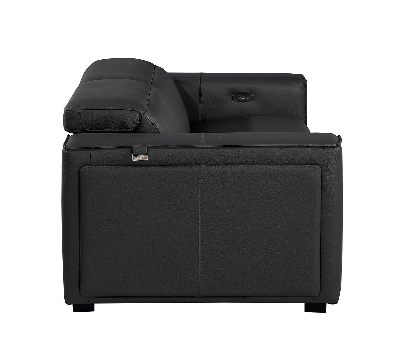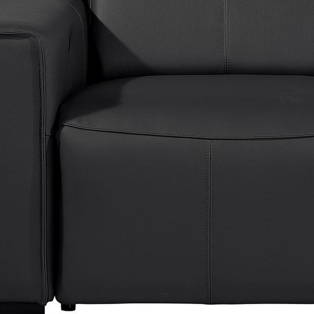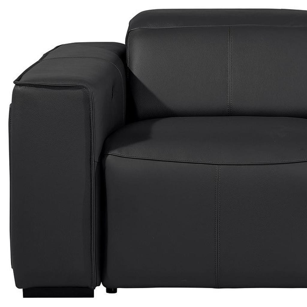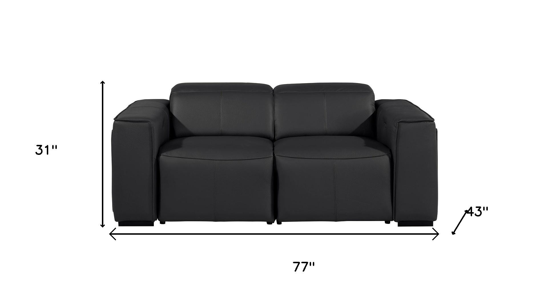 An interior designer's dream, this buttery soft high grade leather 77-inch black and brown italian leather power reclining loveseat with storage will bring just the right touch to your space. The high grade premium leather used makes your lounging luxuriously comfortable and adds an elegant appeal to your space. Square arms offer a comfy place to rest and give this piece some interest and shape. Brown solid wood legs effortlessly elevate the room and add a touch of contemporary design. A great showpiece for your room, this sofa is a must have. 31.00-inch h x 77.00-inch w x 43.00-inch d.